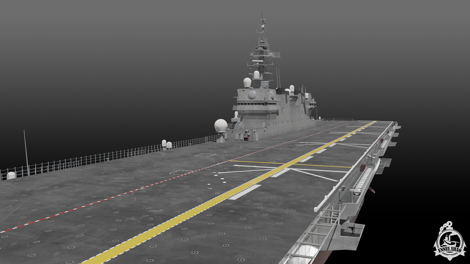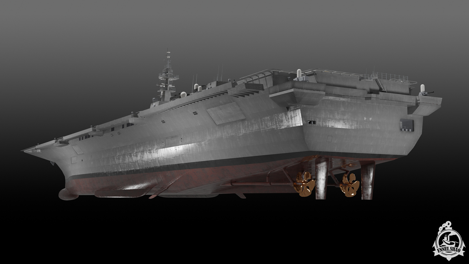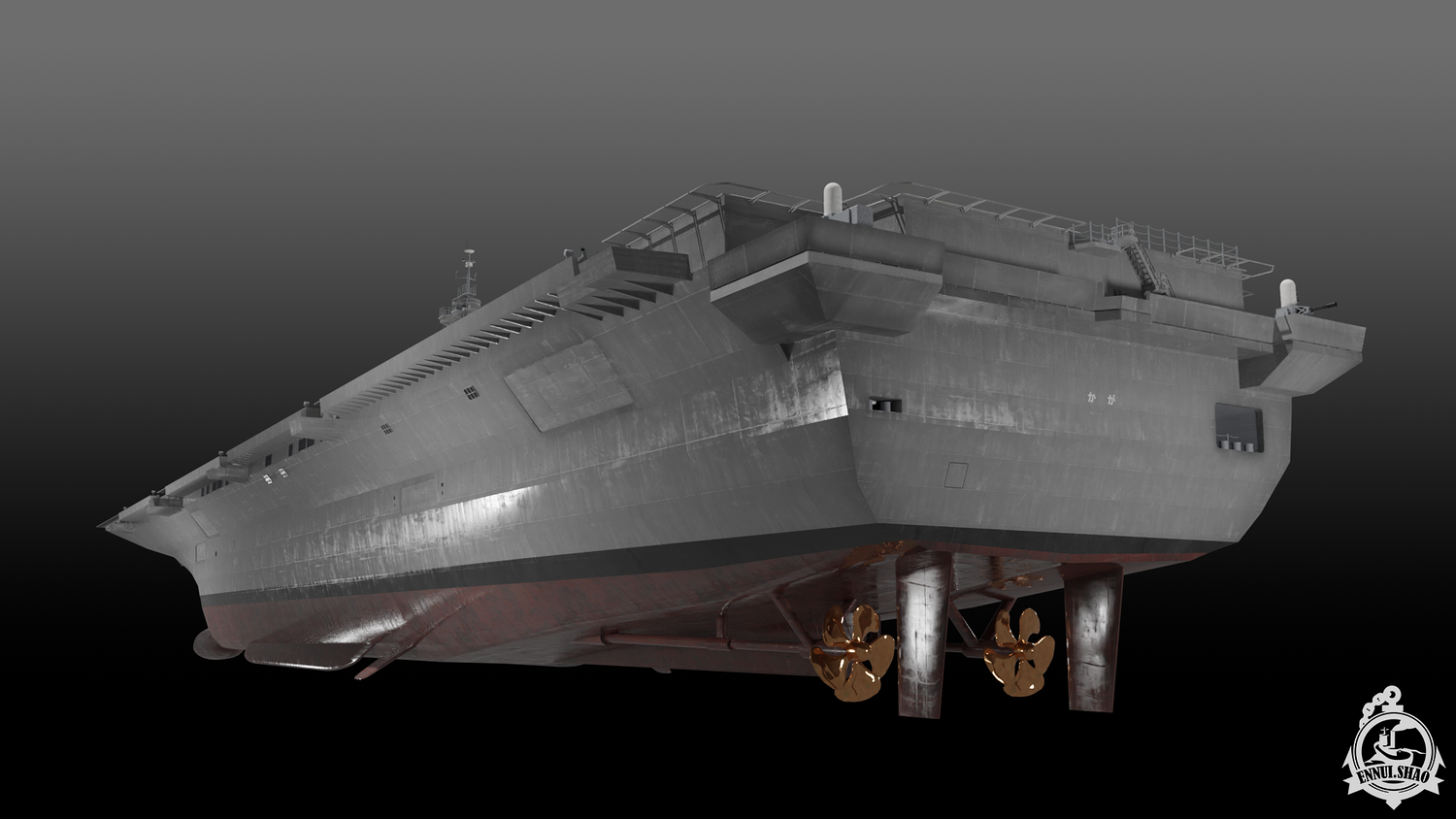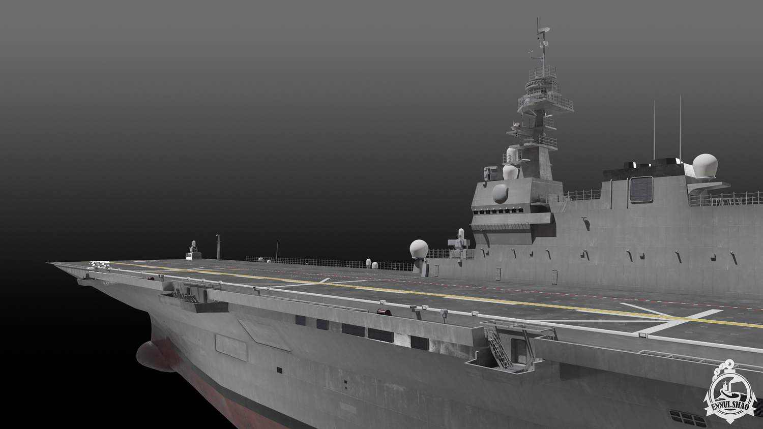 Japan maritime self-defence-force navy modern warship helicopter carrier DDH-184 Kaga (After modified version which have capablilty to operate F-35B). Modeled with Blender 3.3, 28 textures used, PBR materials. UV mapped for main body (material "hull" and "deck"), FBX and OBJ format supported.