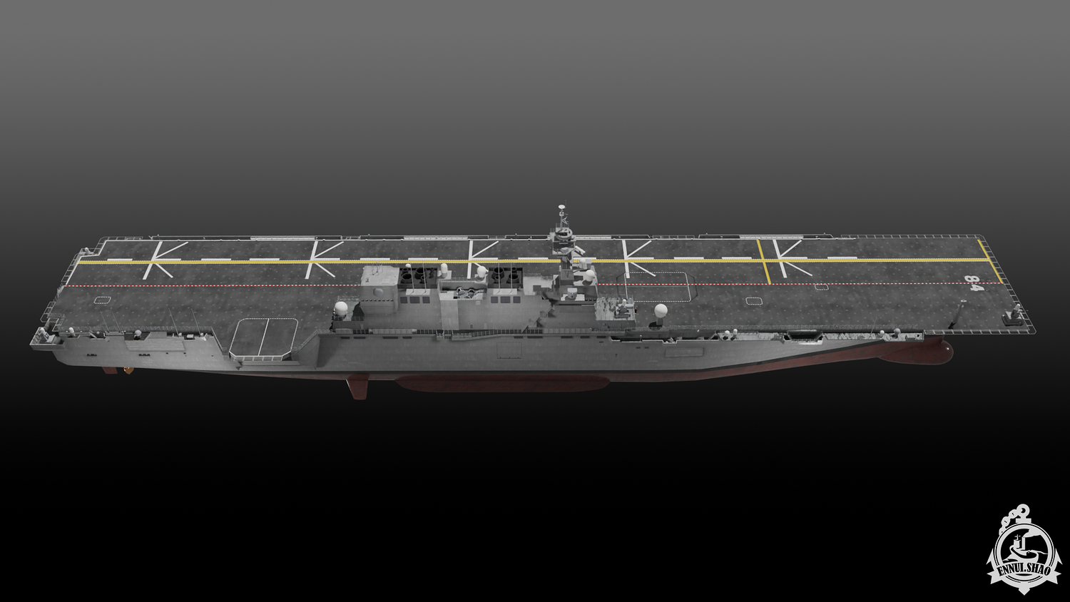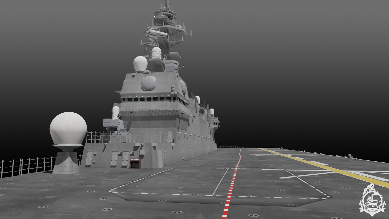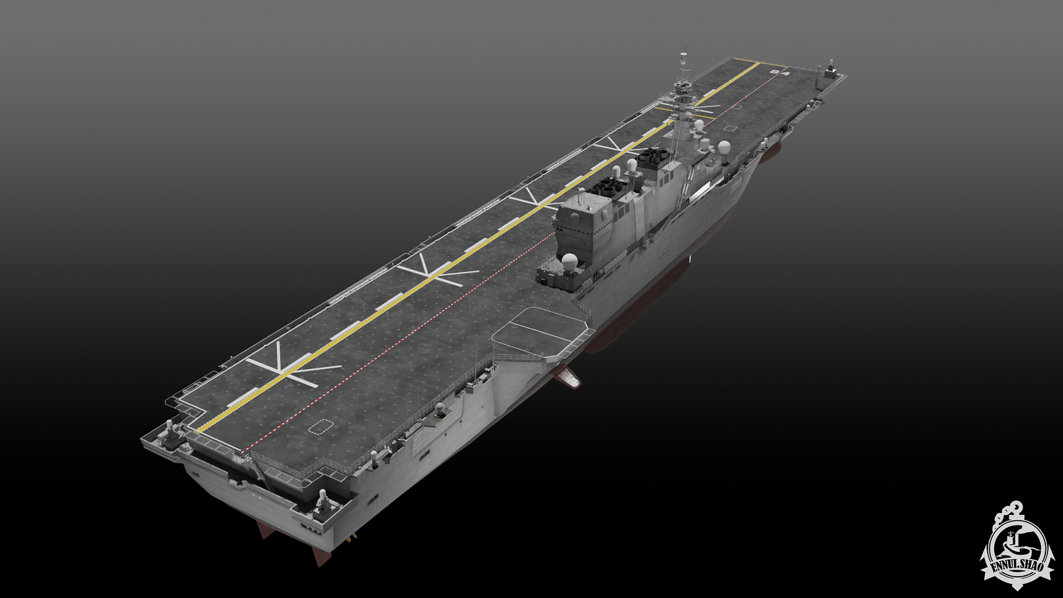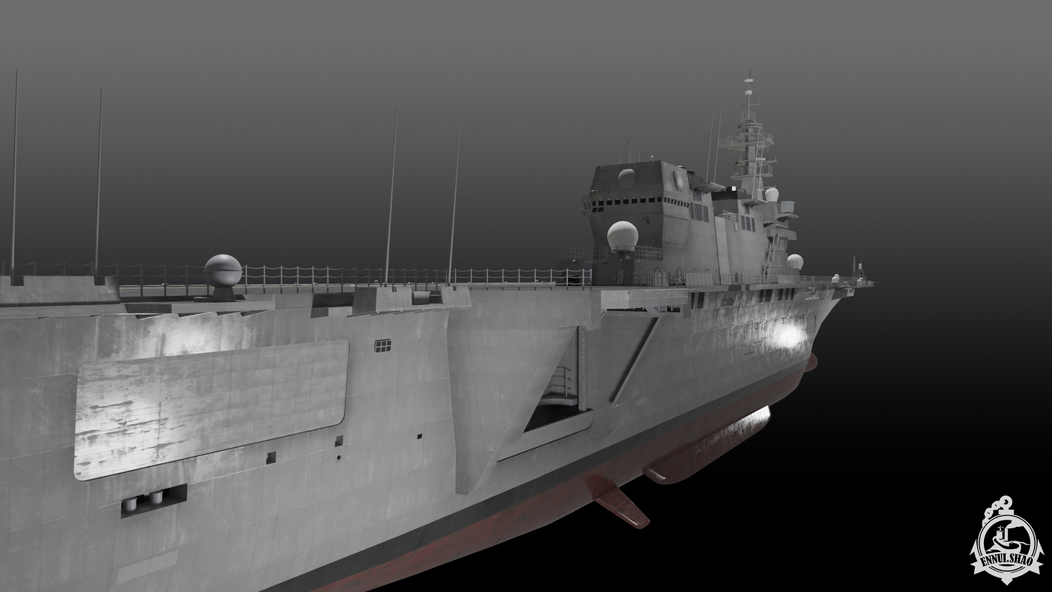 Japan maritime self-defence-force navy modern warship helicopter carrier DDH-184 Kaga (After modified version which have capablilty to operate F-35B). Modeled with Blender 3.3, 28 textures used, PBR materials. UV mapped for main body (material "hull" and "deck"), FBX and OBJ format supported.