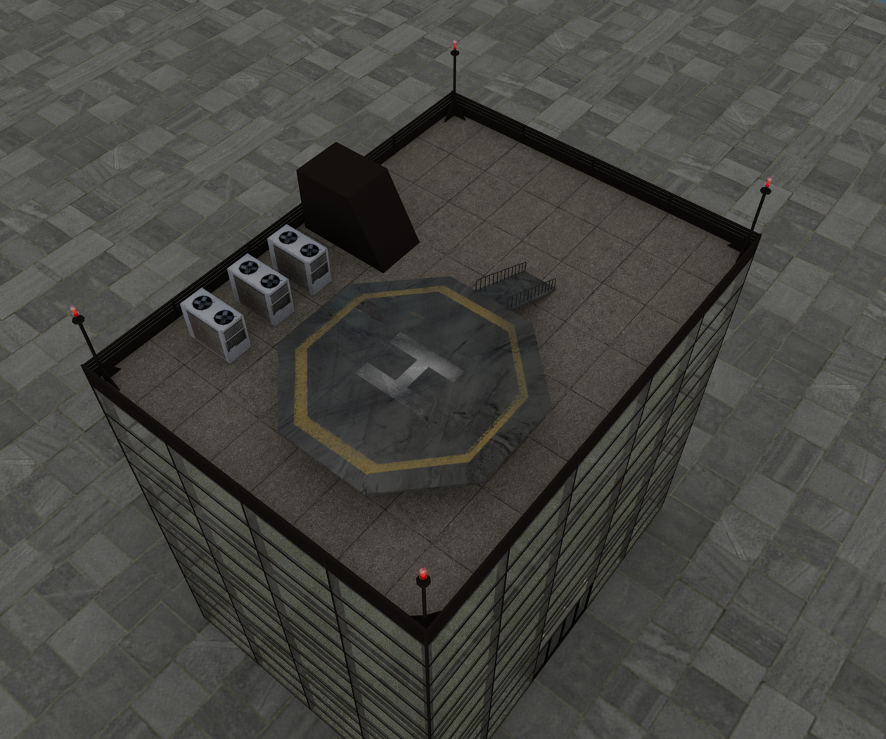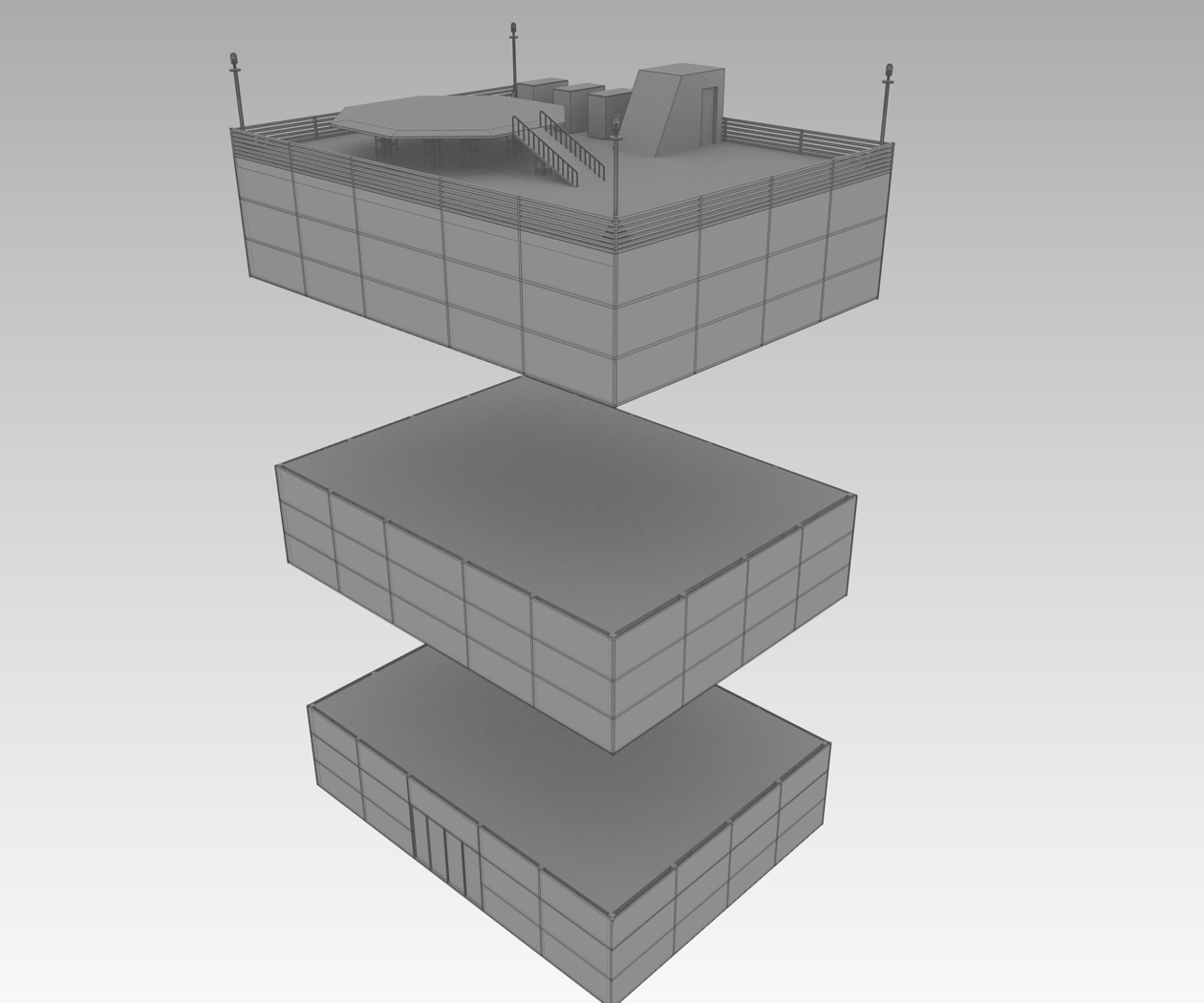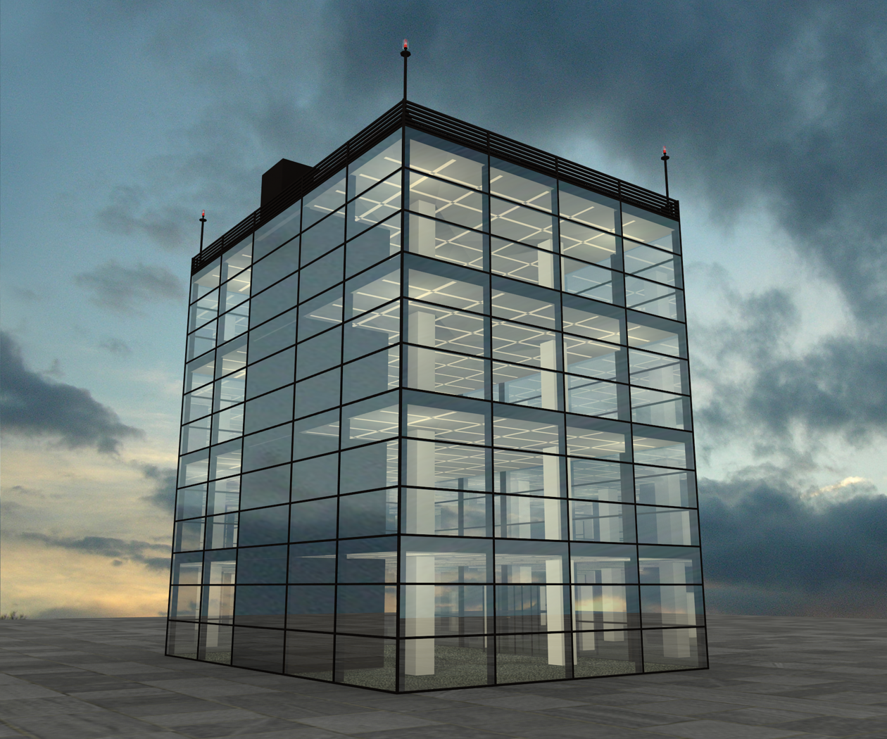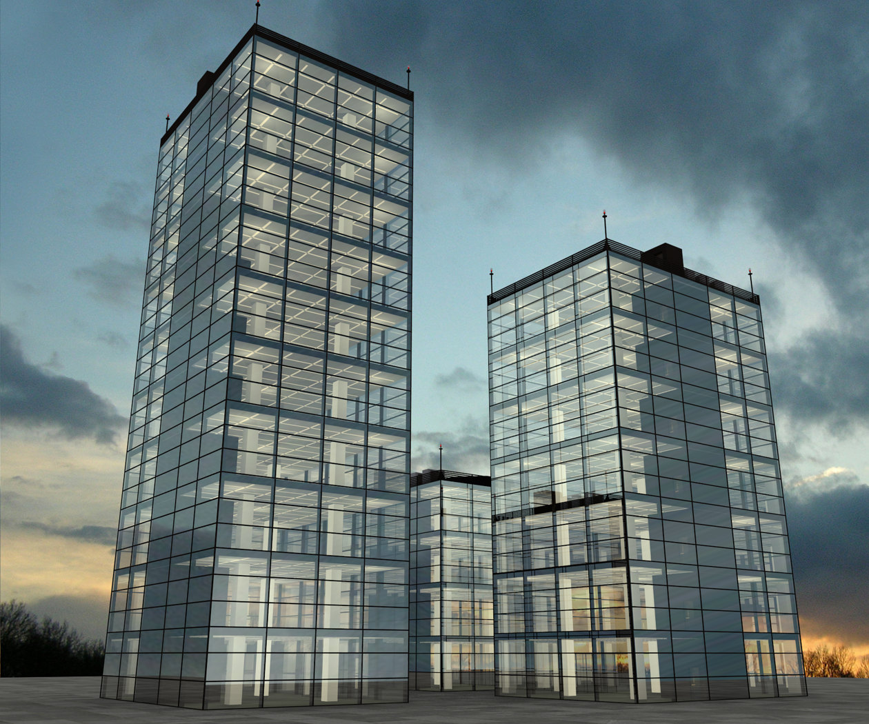 Glass multistorey office building. The number of storey is editable. 14 materials and 5 textures included. All textures are packed into blend file. FBX and OBJ format supported.