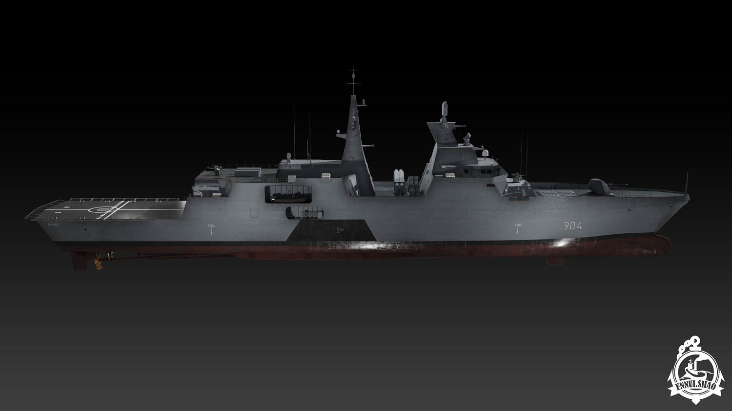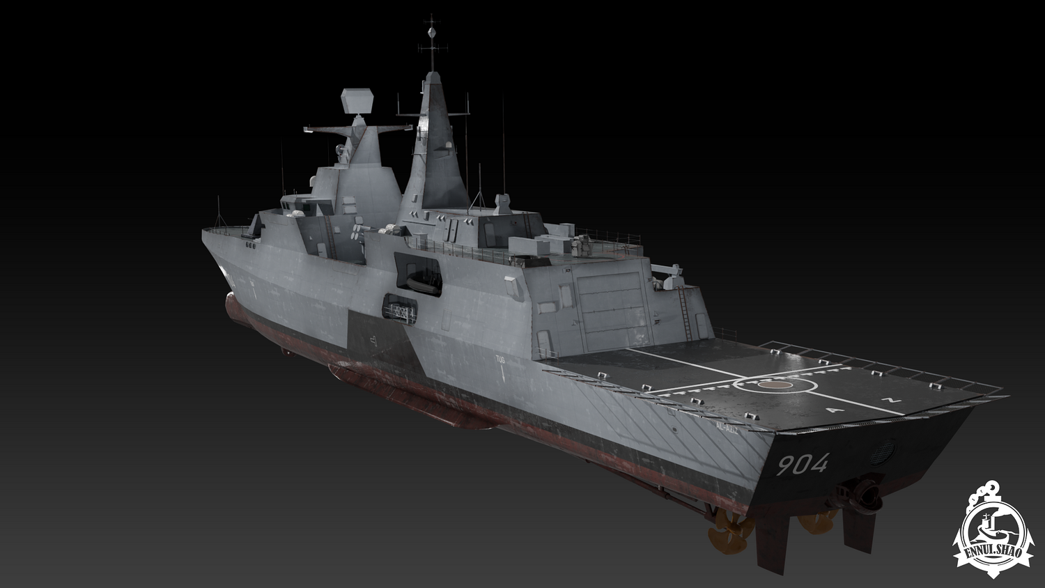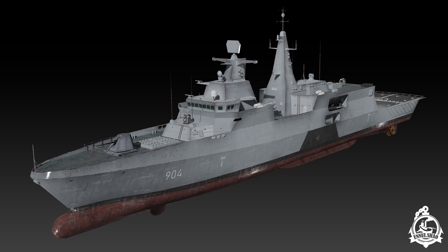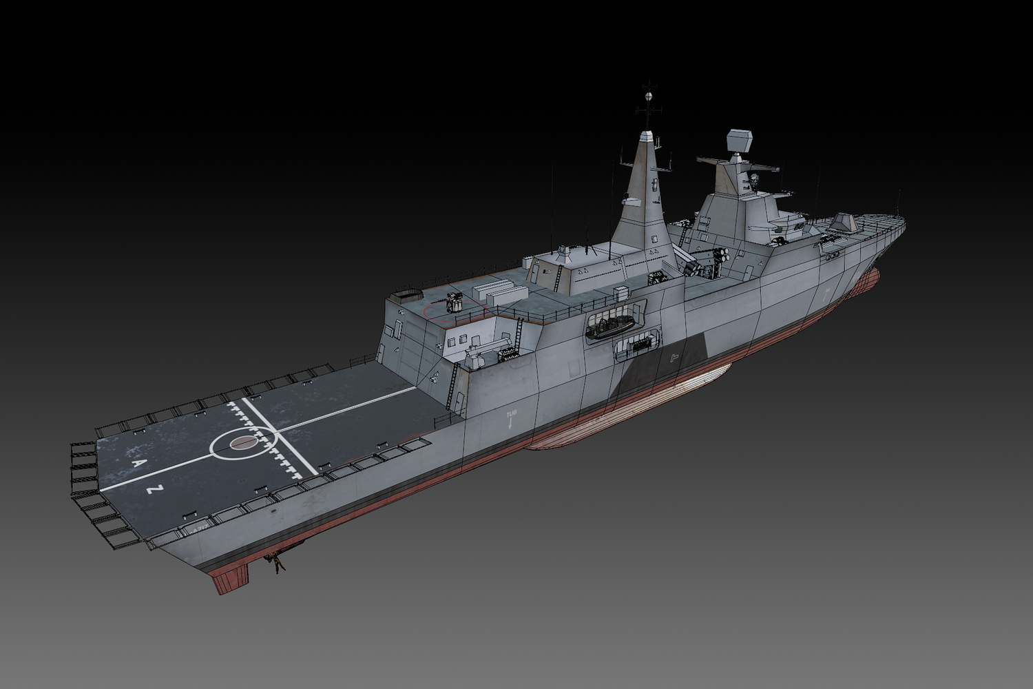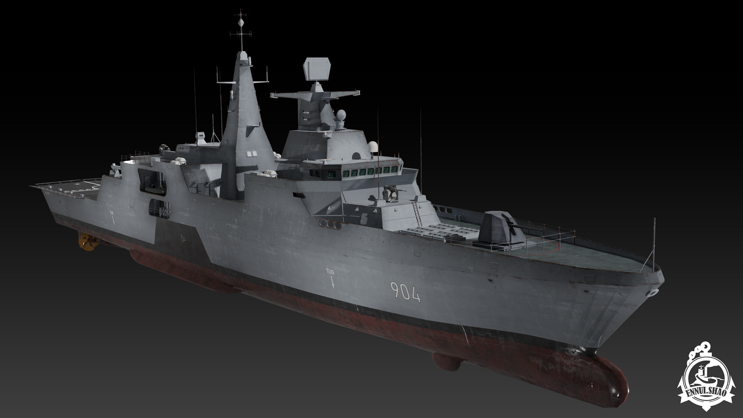 Egypt navy modern warship Al Aziz class frigate. One of MEKO A200 variation builded by Blohm Voss. Modeled with blender 3.3. 36 textures and 13 materials included. The model is game-ready, 195359 tris and 107374 vertices. Use PBR materials and UV mapped. OBJ and FBX format supported. All objects are named.