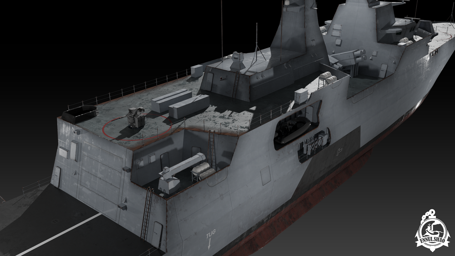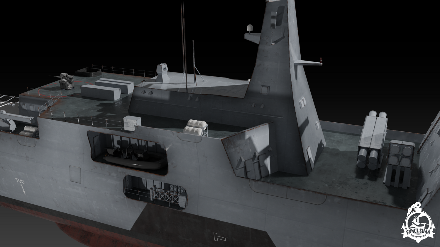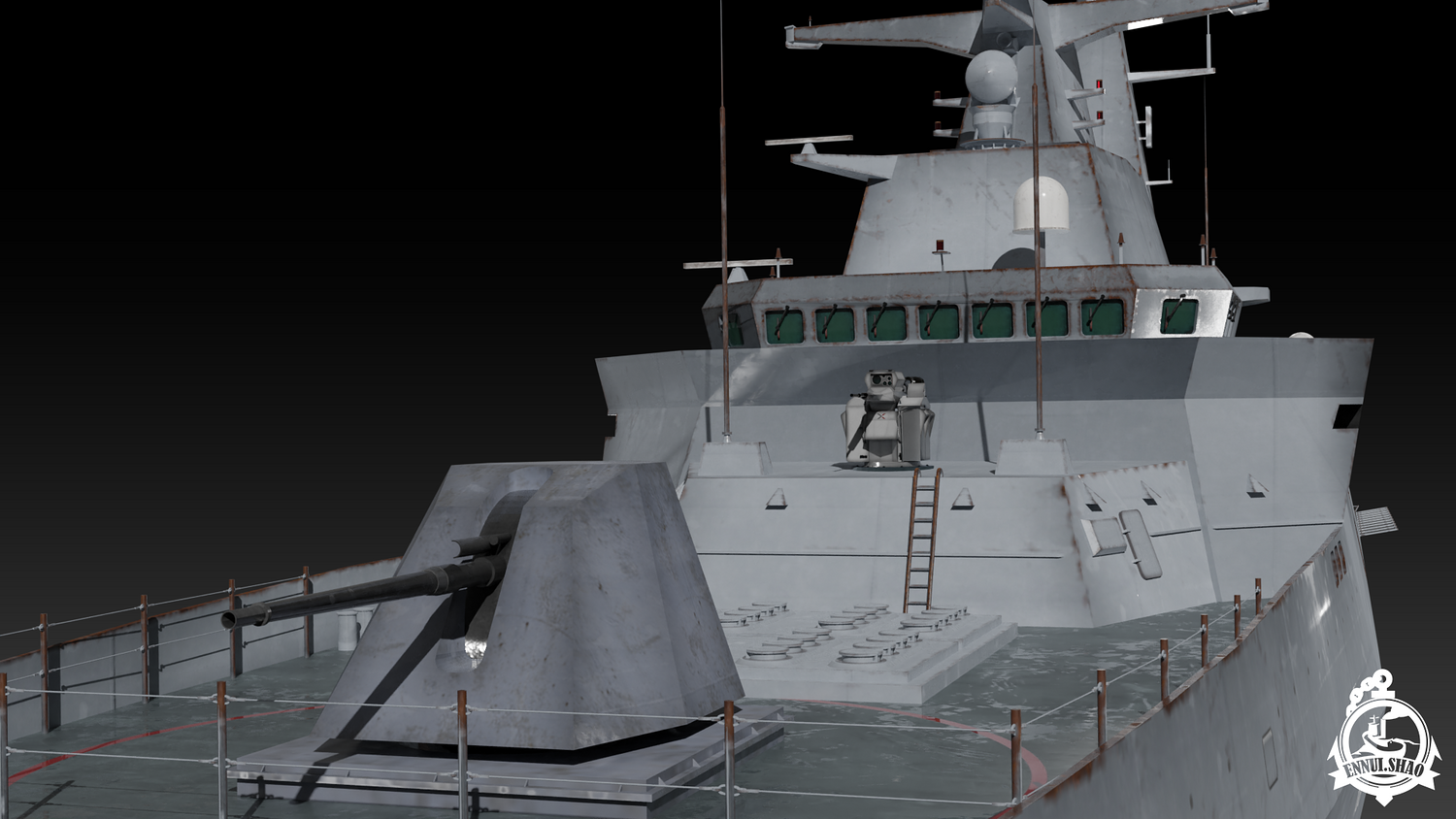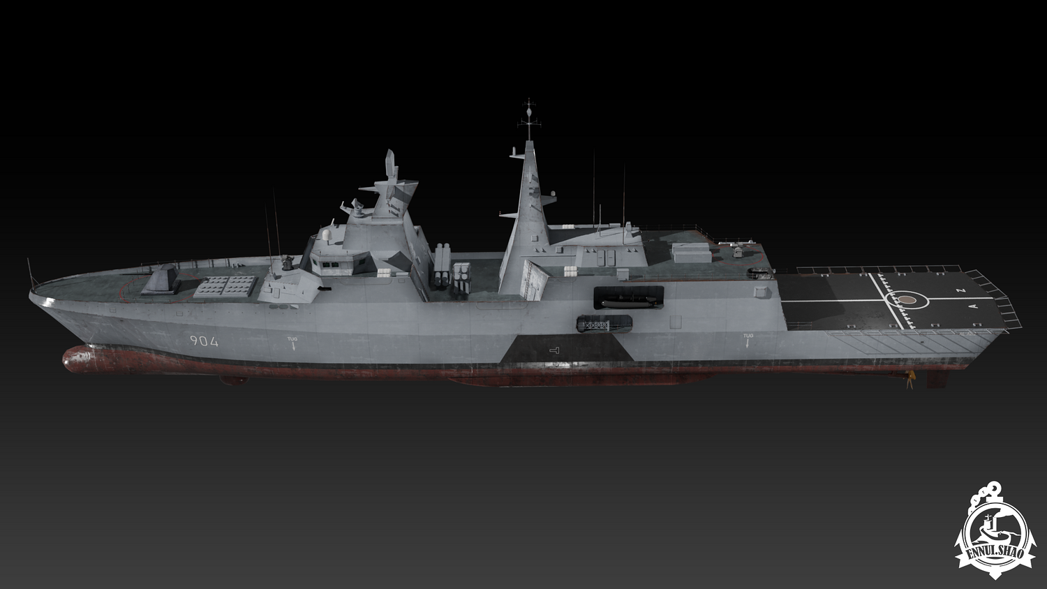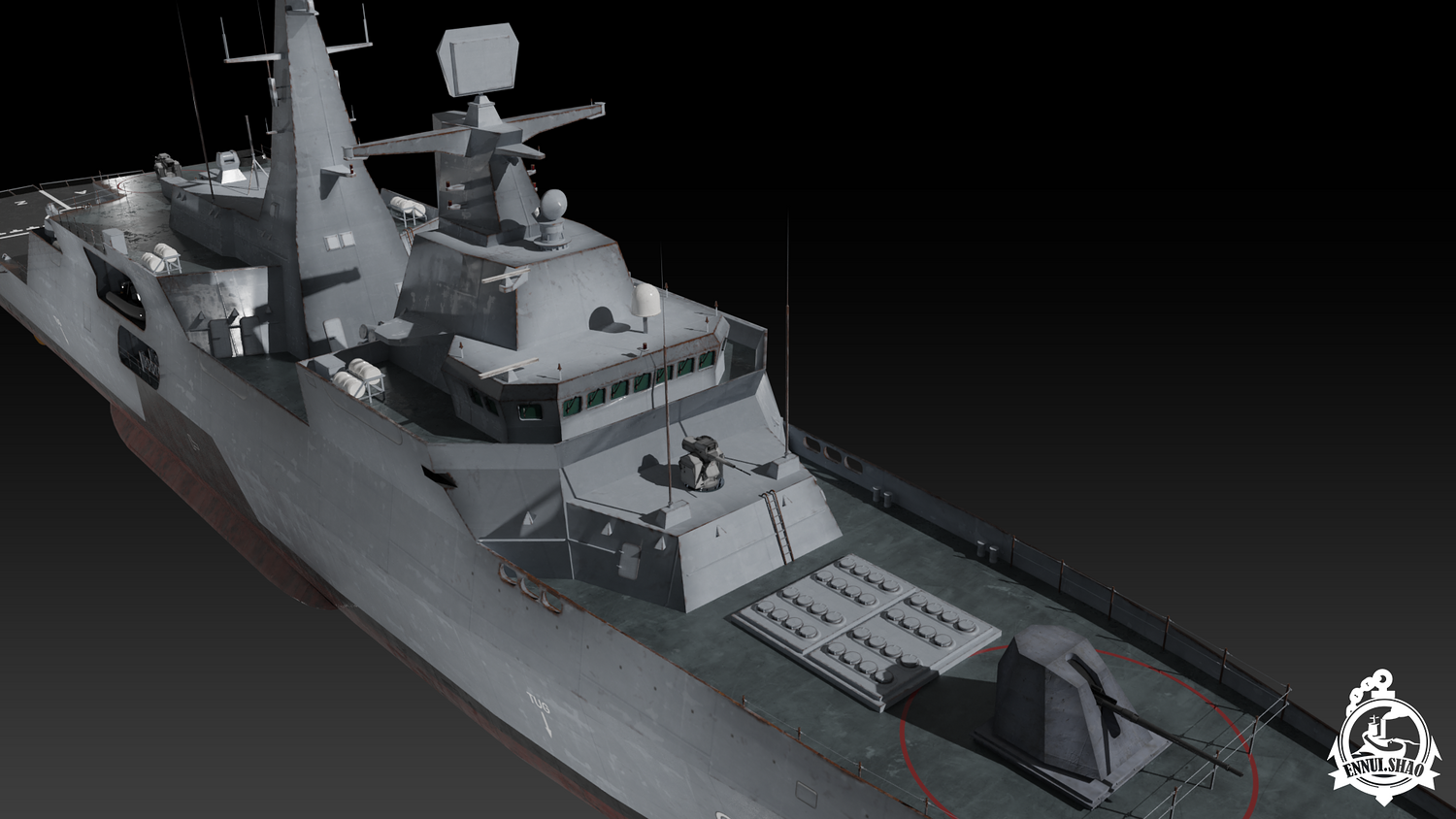 Egypt navy modern warship Al Aziz class frigate. One of MEKO A200 variation builded by Blohm Voss. Modeled with blender 3.3. 36 textures and 13 materials included. The model is game-ready, 195359 tris and 107374 vertices. Use PBR materials and UV mapped. OBJ and FBX format supported. All objects are named.