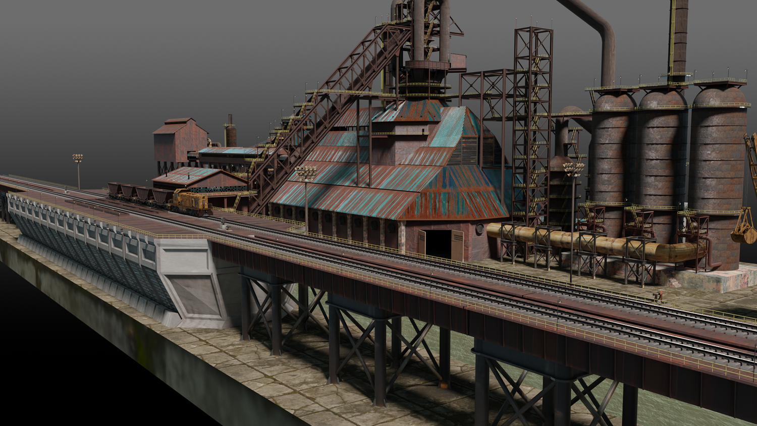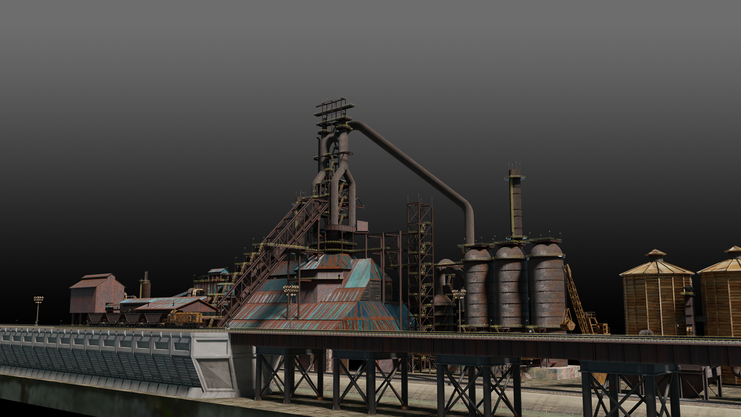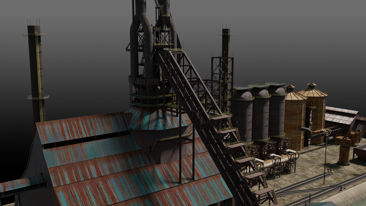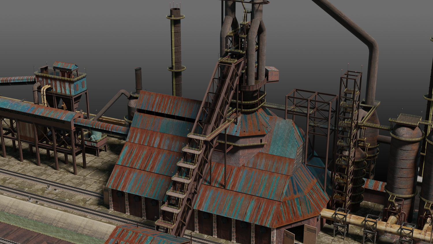 This is an upgrade version of blast furnace model, and it expanded to reveal a large part of the steelworks. New scene included more factory installations and more details. The whole model included 38 materials and 65 textures, UV mixed. 3 formats supported, blender fbx and obj. In FBX and OBJ file all objects are combined into several named objects while in Blender file they are separated for easy editing.
