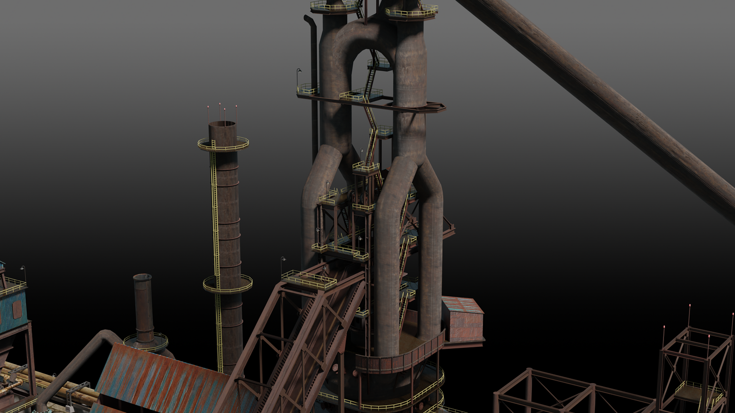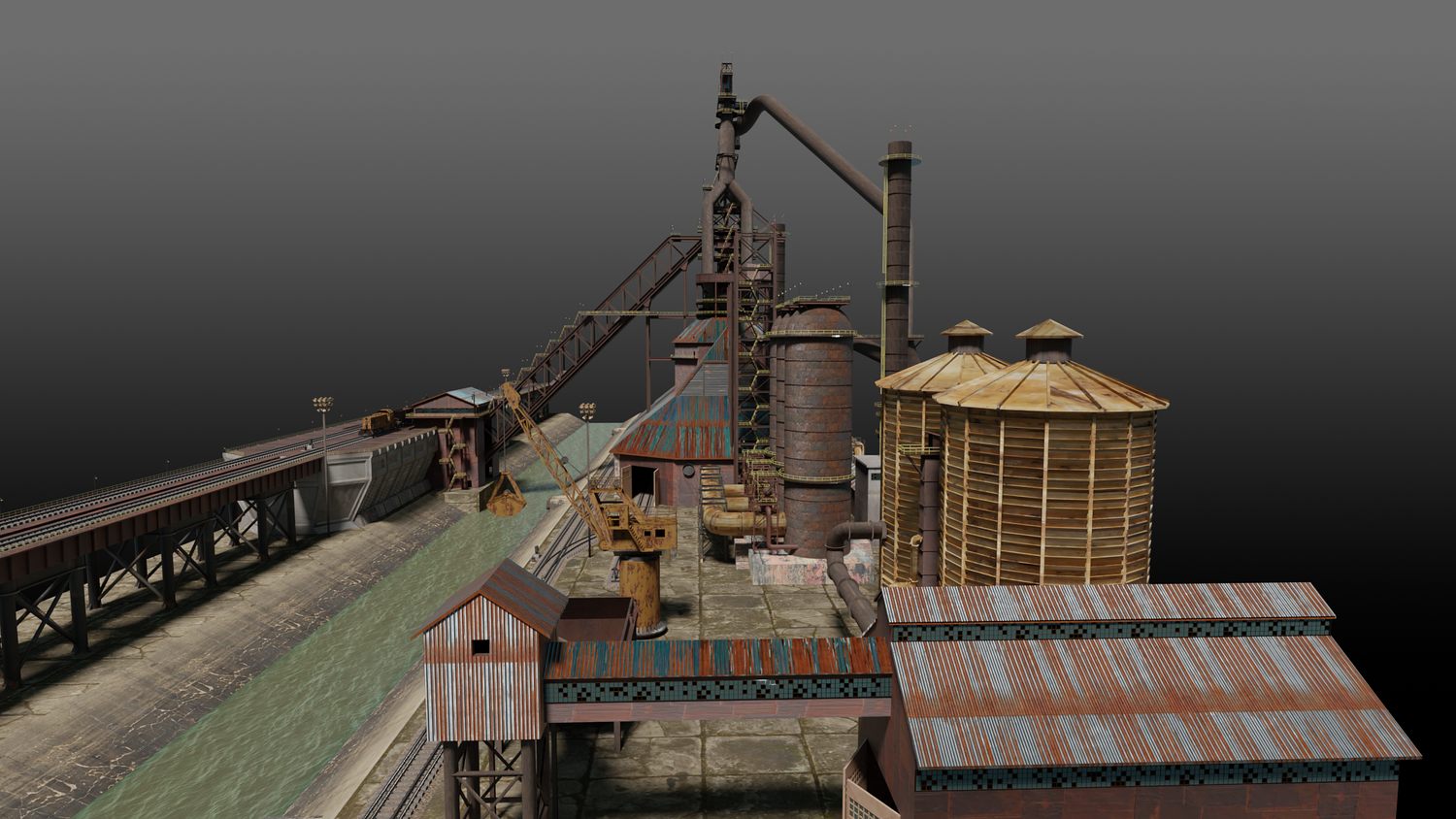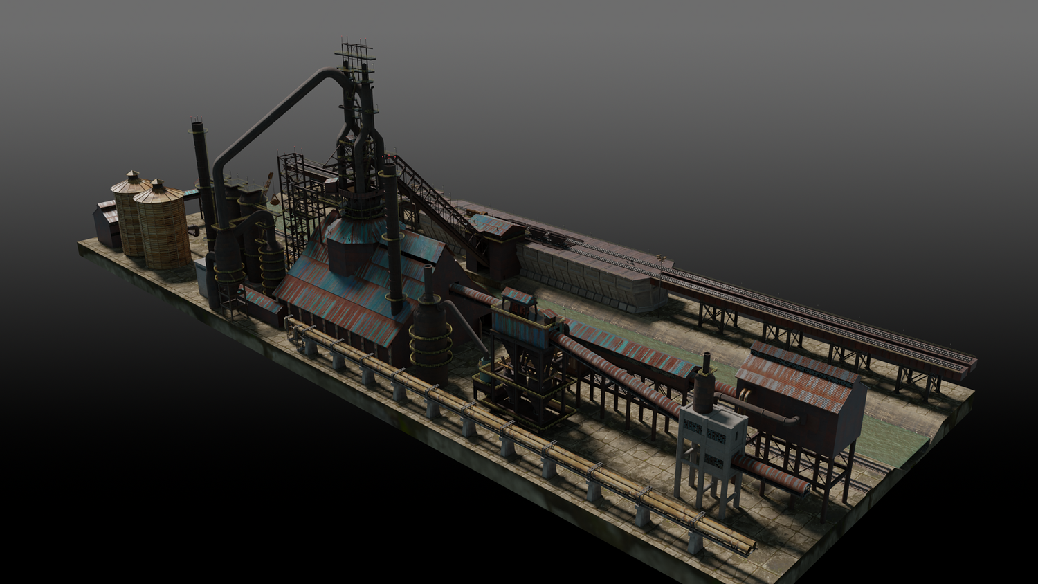 This is an upgrade version of blast furnace model, and it expanded to reveal a large part of the steelworks. New scene included more factory installations and more details. The whole model included 38 materials and 65 textures, UV mixed. 3 formats supported, blender fbx and obj. In FBX and OBJ file all objects are combined into several named objects while in Blender file they are separated for easy editing.