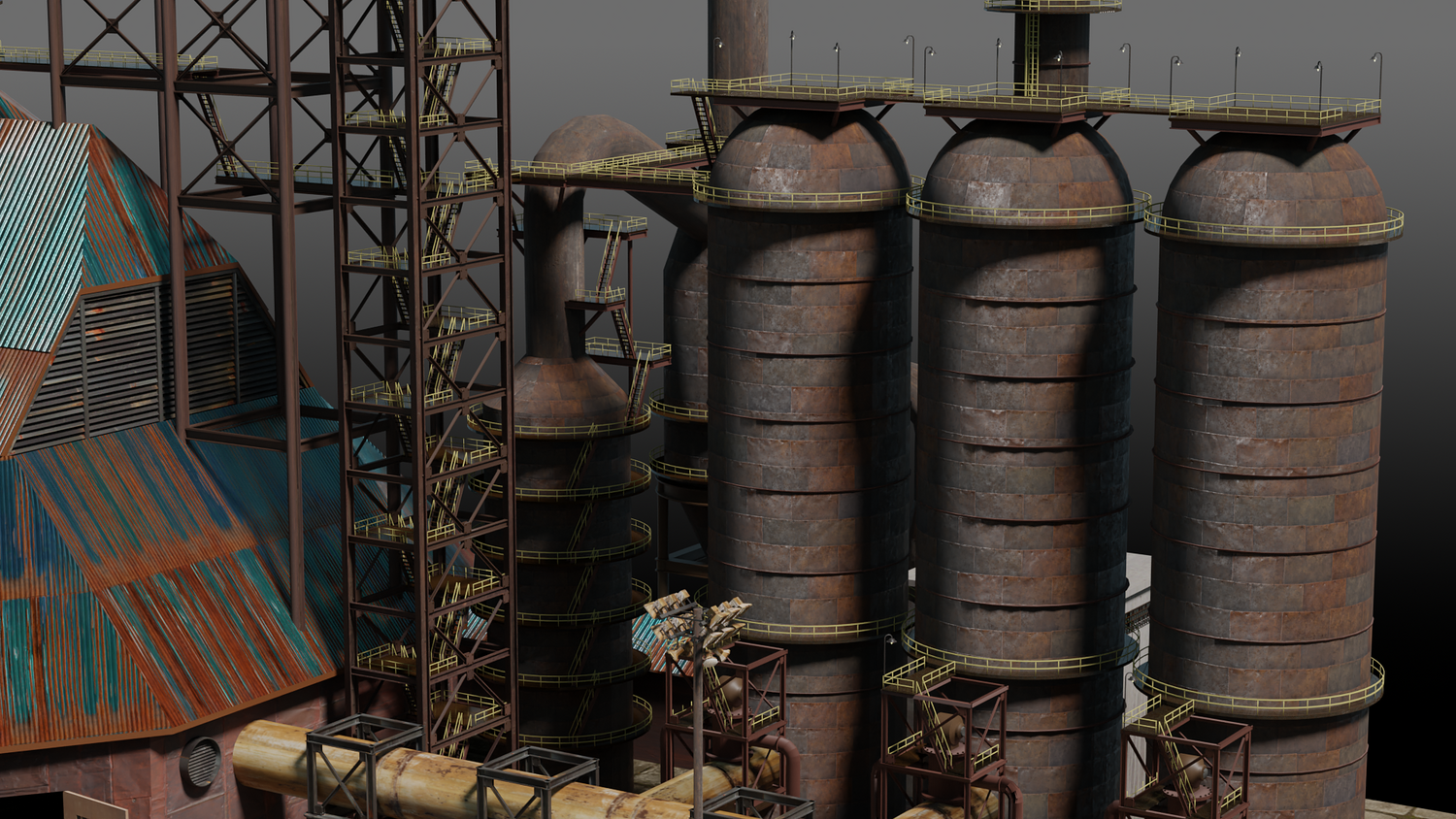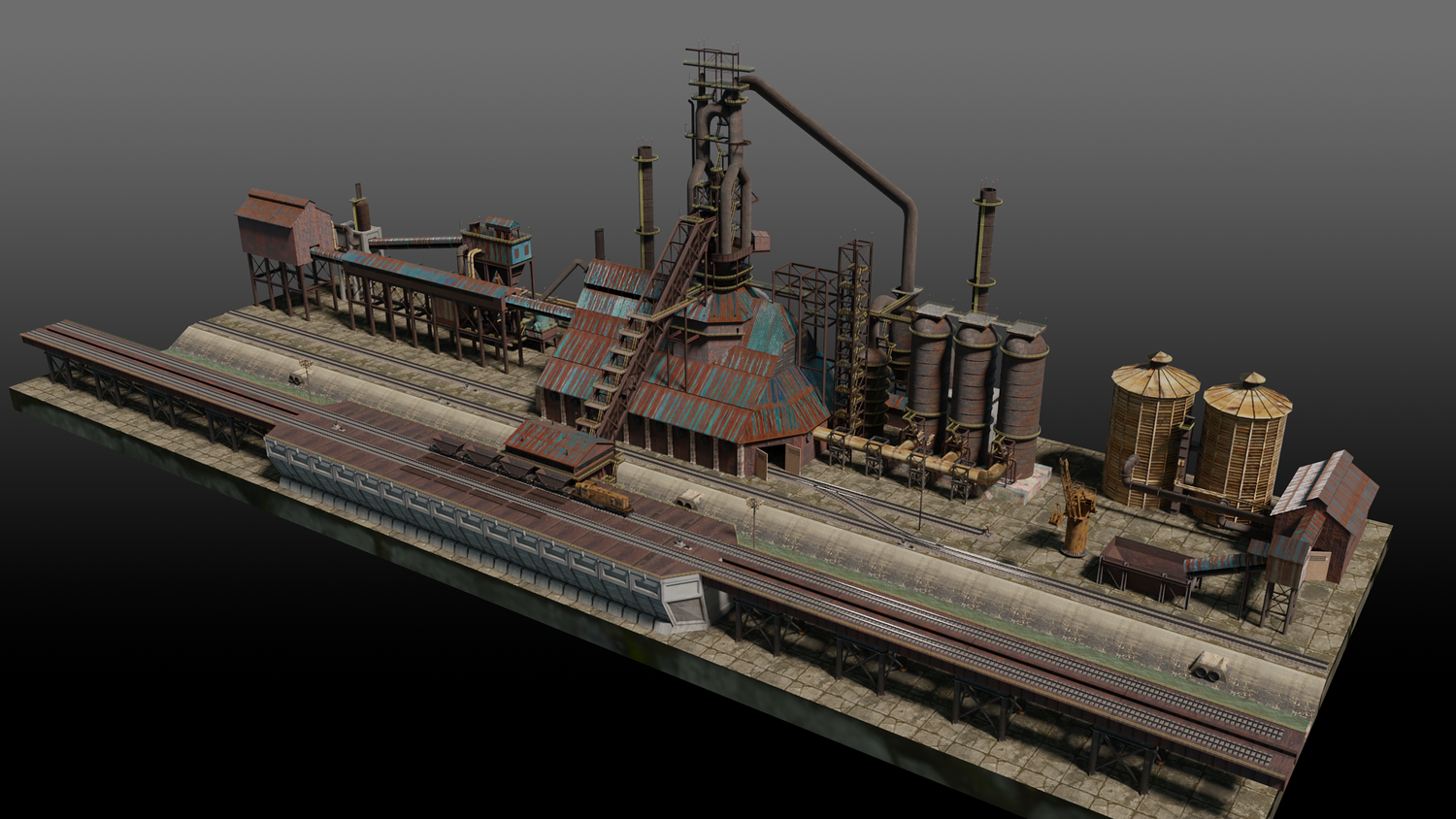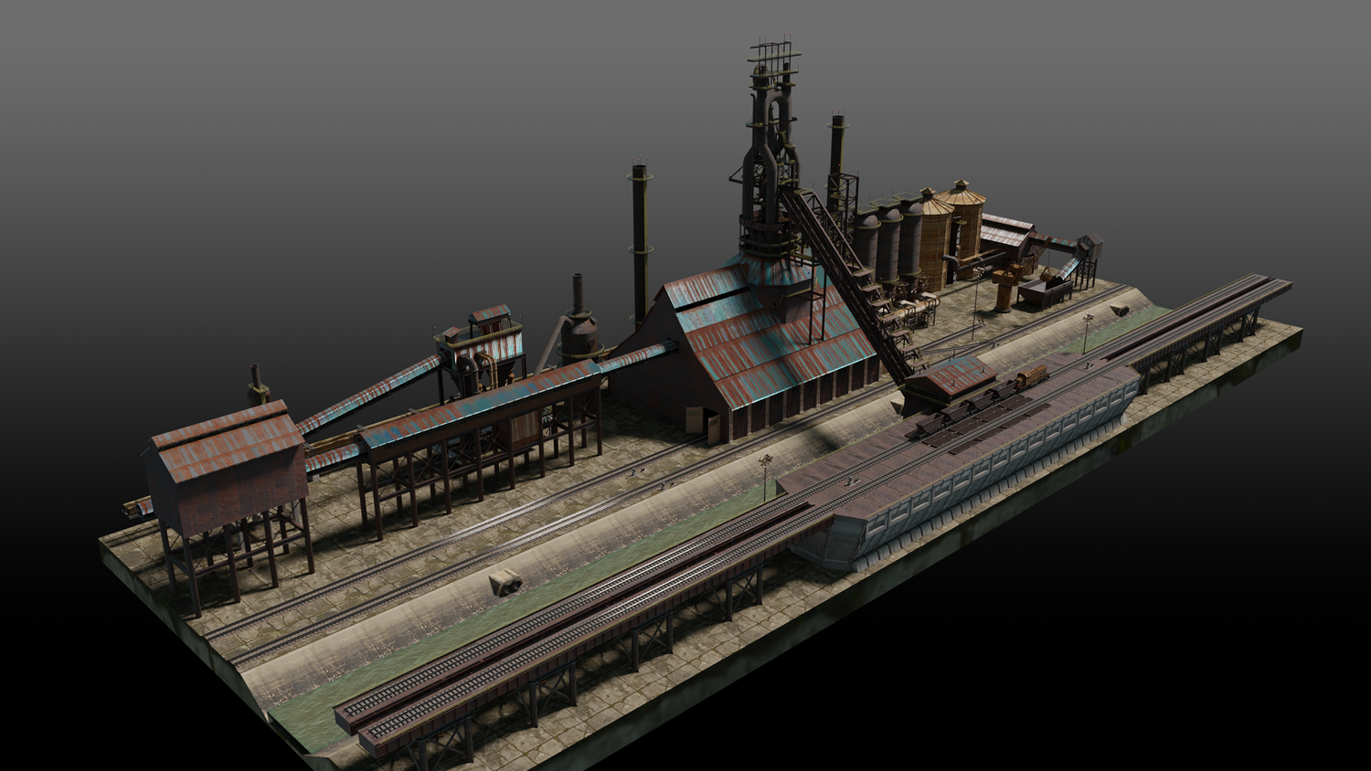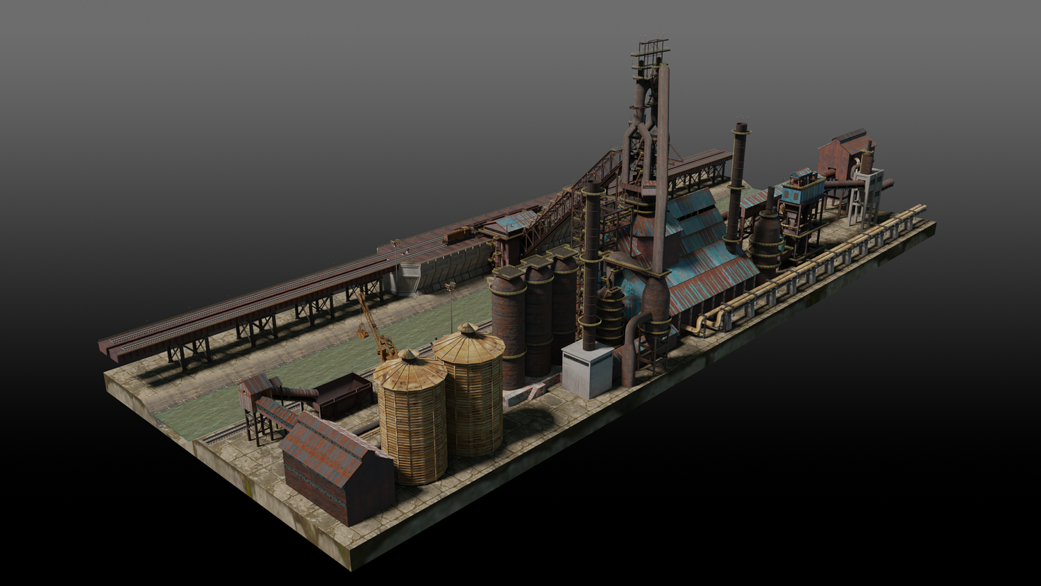 This is an upgrade version of blast furnace model, and it expanded to reveal a large part of the steelworks. New scene included more factory installations and more details. The whole model included 38 materials and 65 textures, UV mixed. 3 formats supported, blender fbx and obj. In FBX and OBJ file all objects are combined into several named objects while in Blender file they are separated for easy editing.