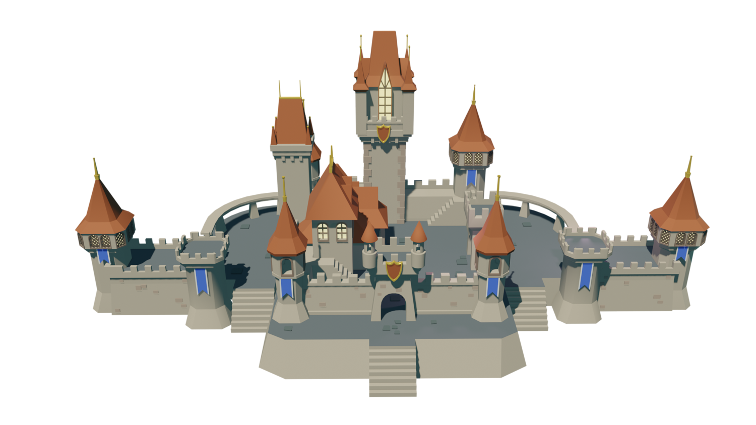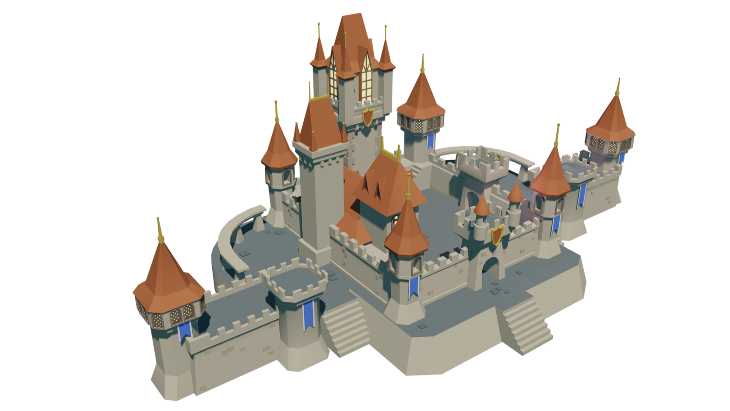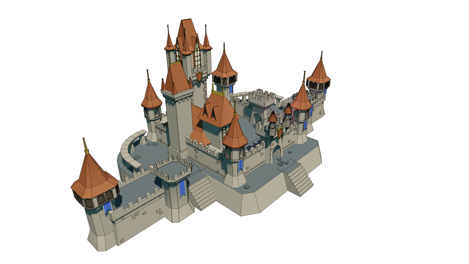 Cartoon castle modeled with blender 3.3. FBX and OBJ format supported. No textures.