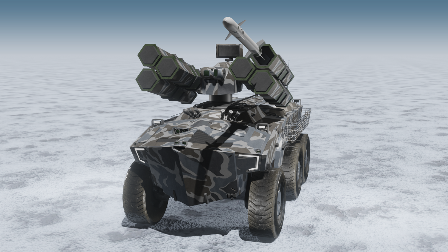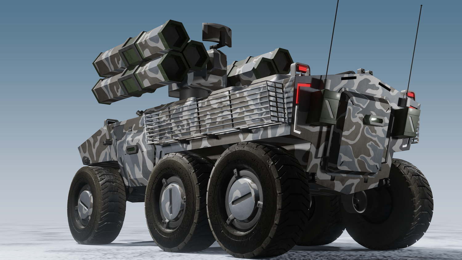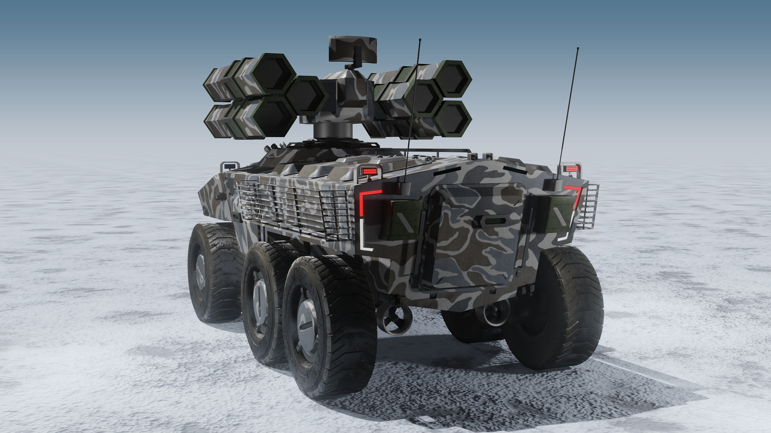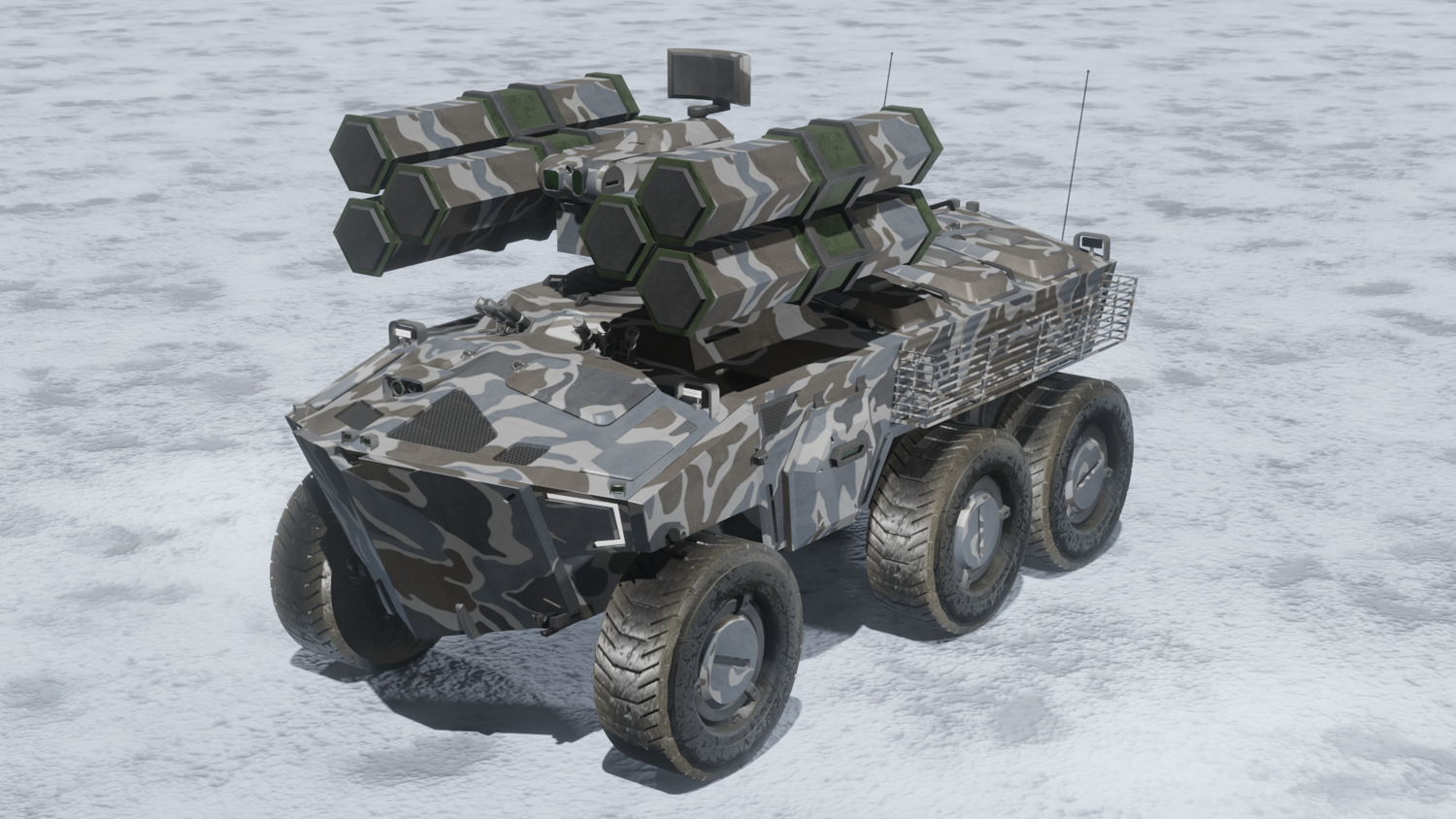 This is a collection of a series variation of fictional apcs with winter camouflage. 4 models included, weapon station turret, sam missile launcher, atgm launcher, manned turret. All textures are packed separatly and also attached into the blend file. Faces and vertices number refers to the max value of a single vehicle.