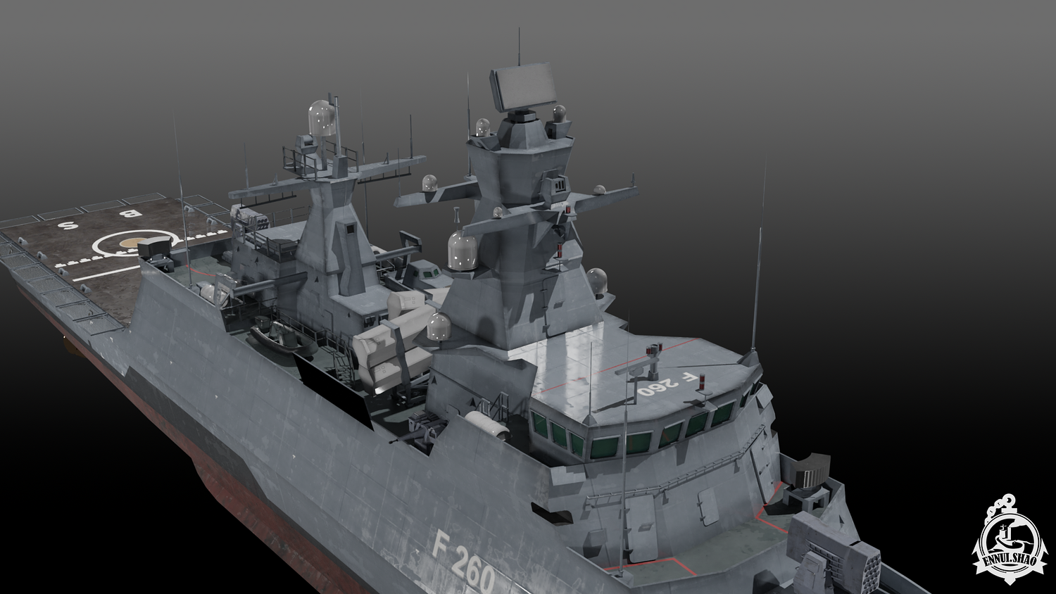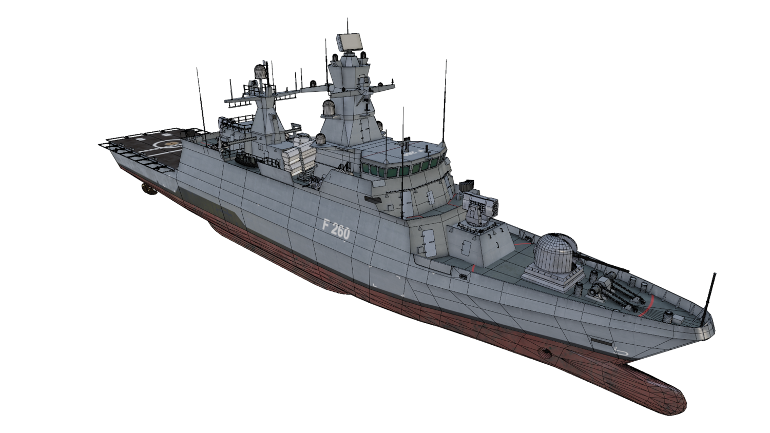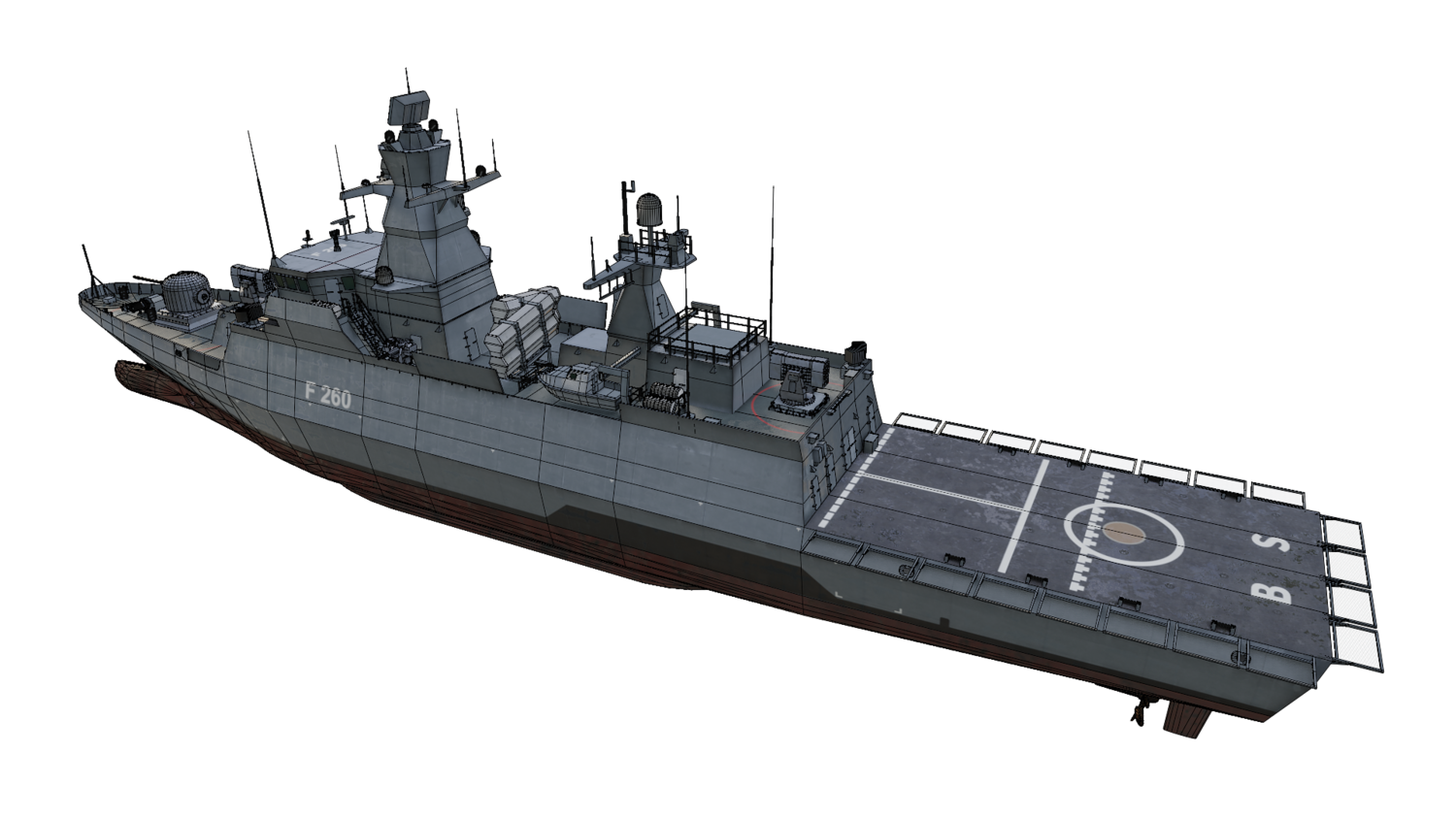 German navy K130 Braunschweig class corvette modeled with blender 3.3. 33 textures and 11 materials used. The model is game-ready. OBJ and FBX supported. UV mapped. All objects named.