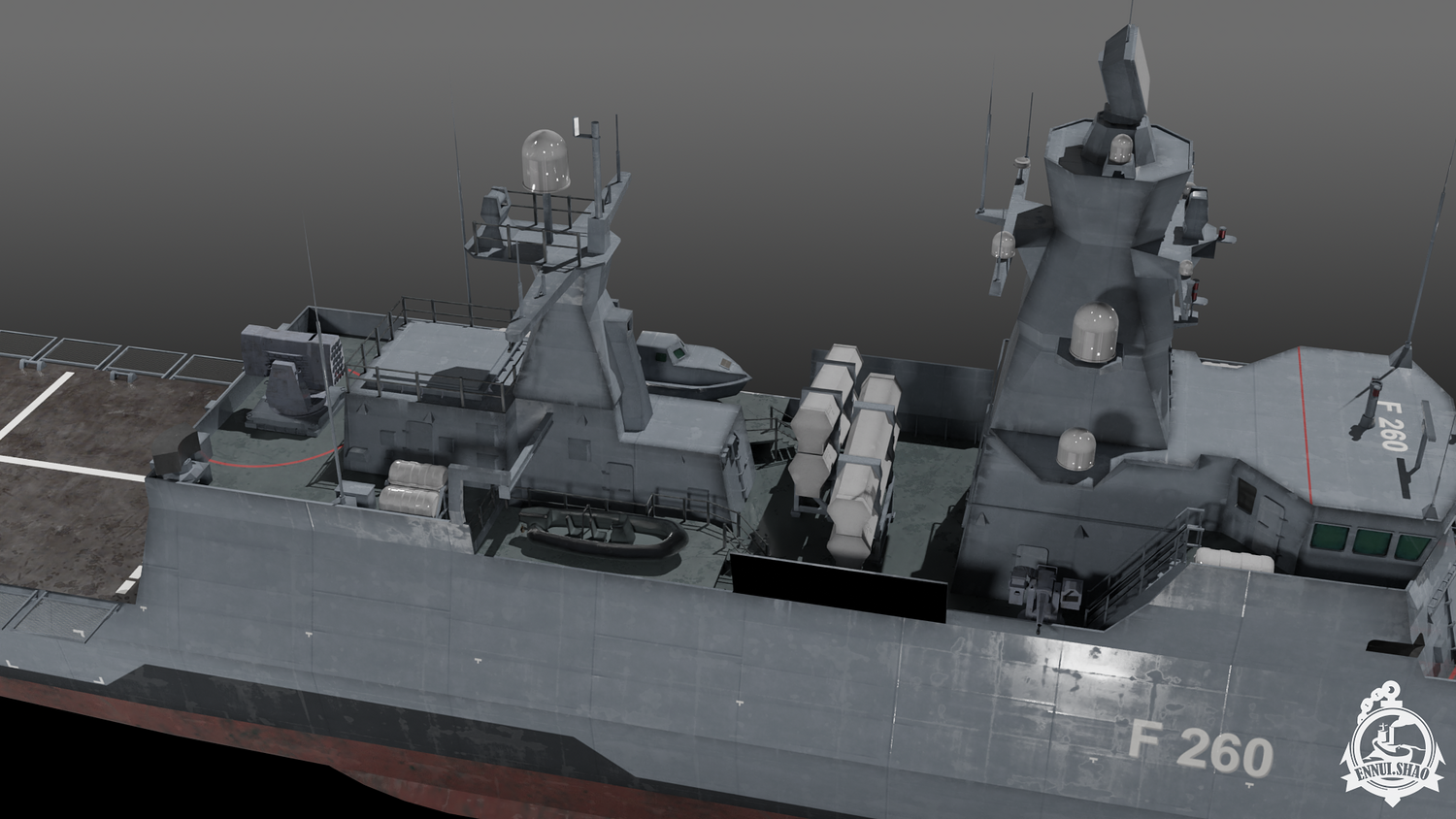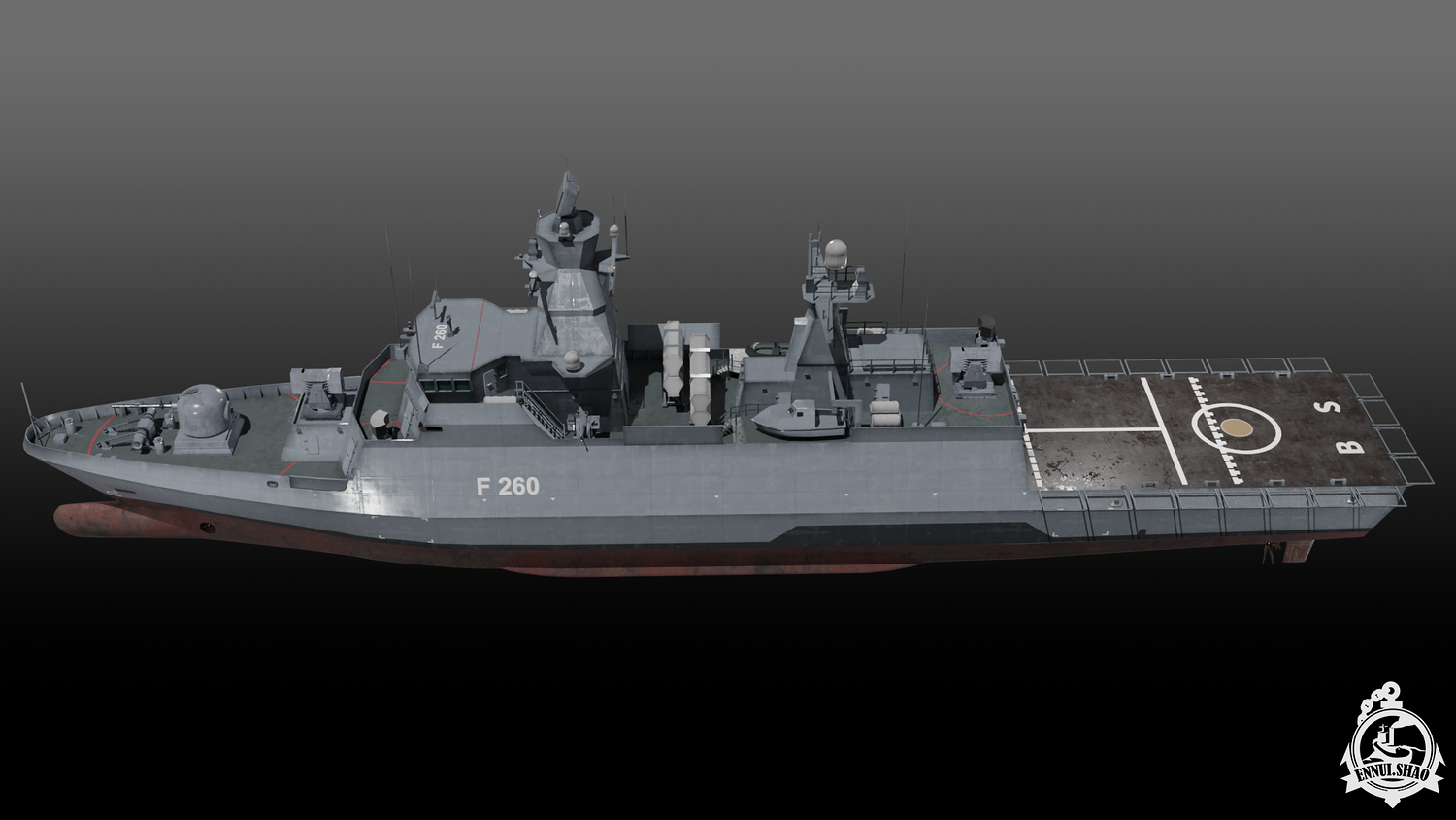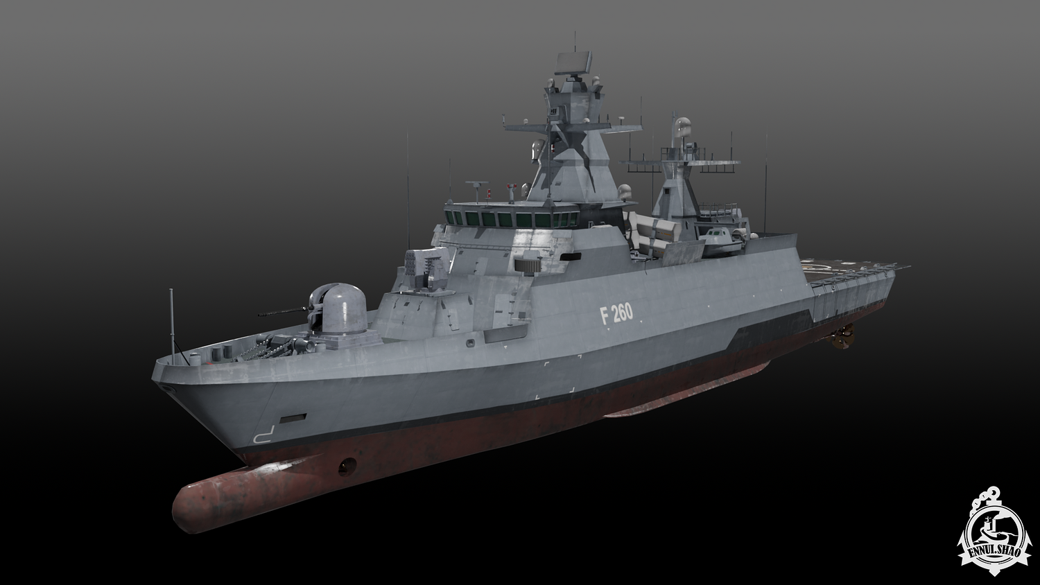 German navy K130 Braunschweig class corvette modeled with blender 3.3. 33 textures and 11 materials used. The model is game-ready. OBJ and FBX supported. UV mapped. All objects named.