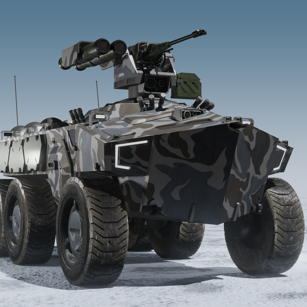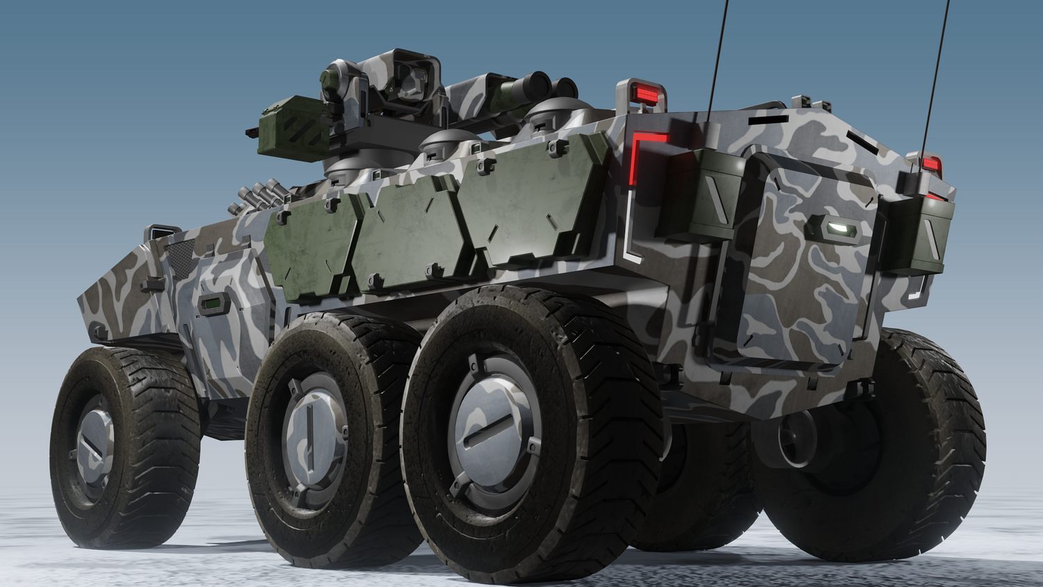 Scifi armored personal carrier with winter camouflage modeled with blender 3.5. 21 textures used, UV mixed. 3 formats supported, blender fbx and obj. In FBX and OBJ file all objects are combined into several named objects while in Blender file they are separated for easy editing.