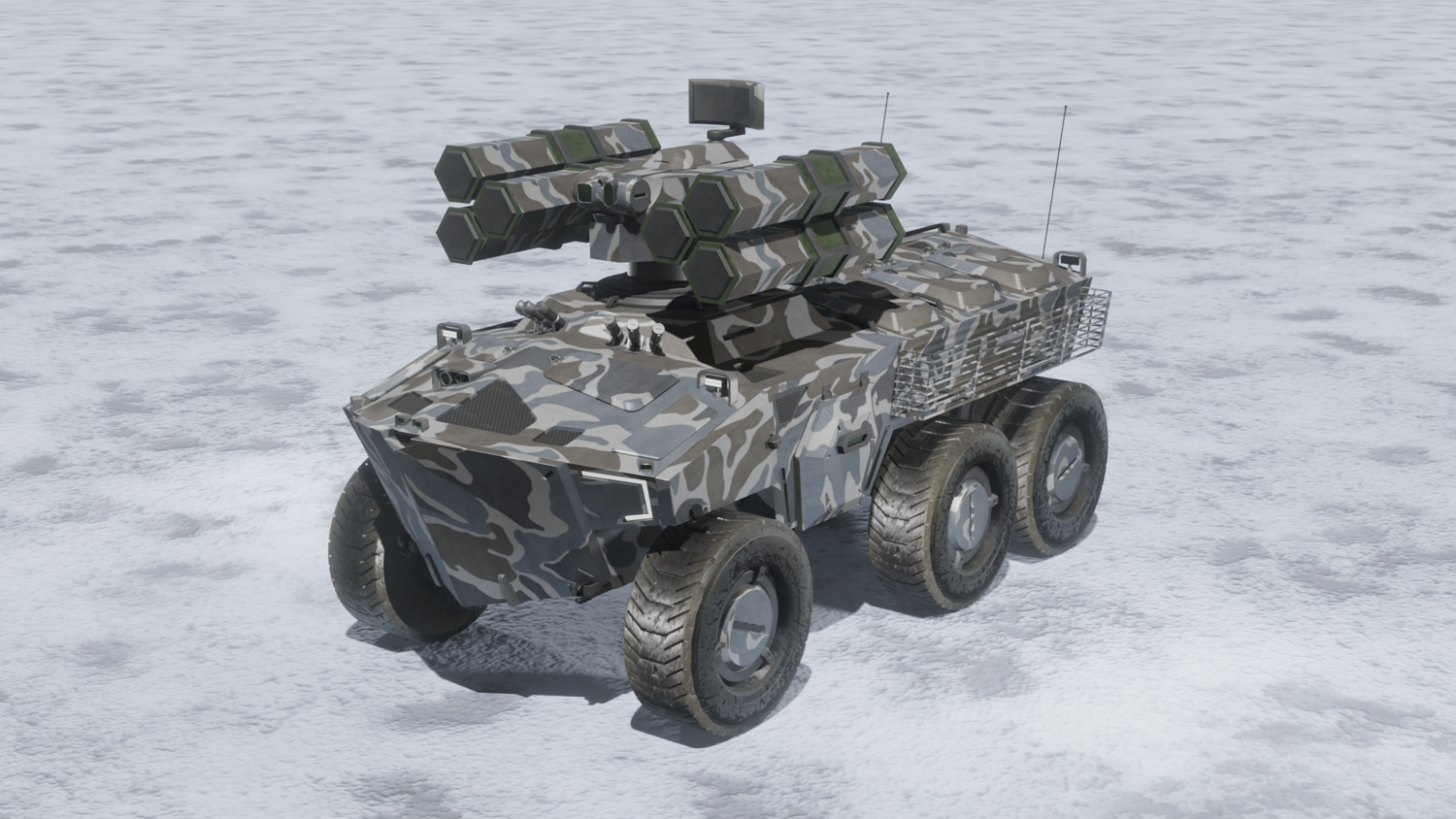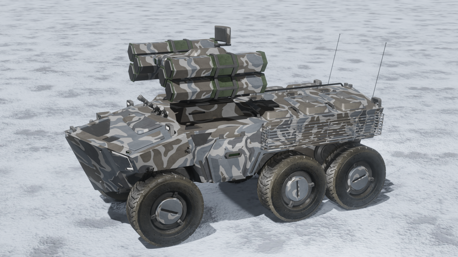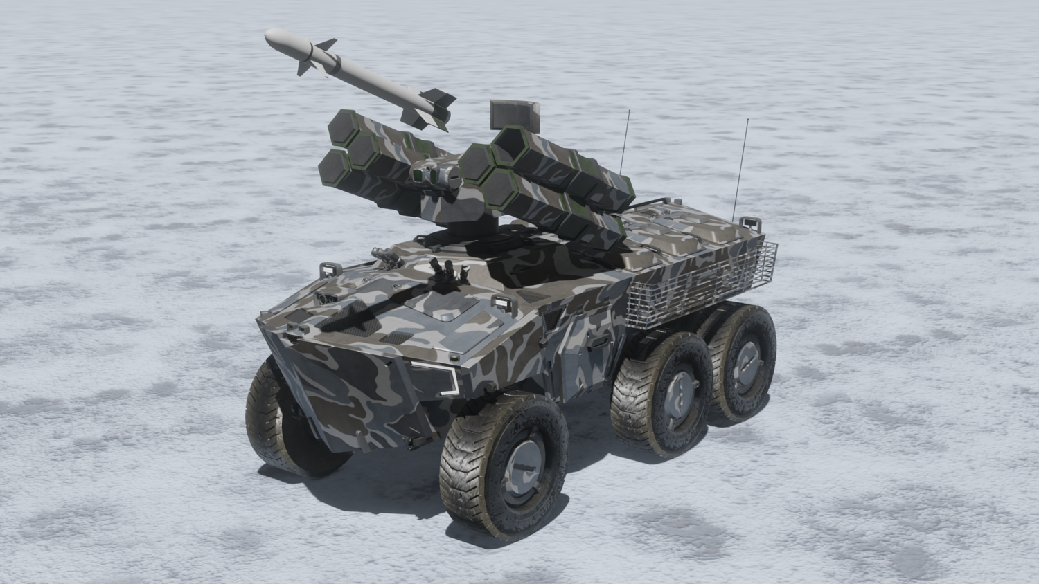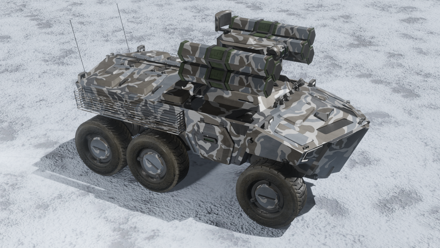 Scifi SAM launcher vehicle winter camouflage