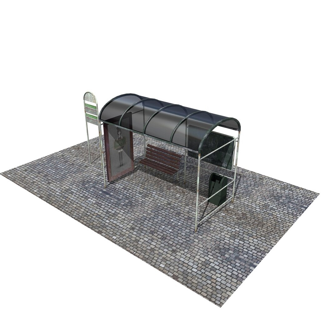 Old Bus stop. 8 textures included for 2.97 file and 7 for 2.92. All textures are attached into the model so just download the .blend file then you got everything, be careful of your blender version.