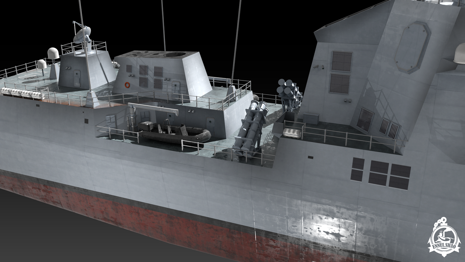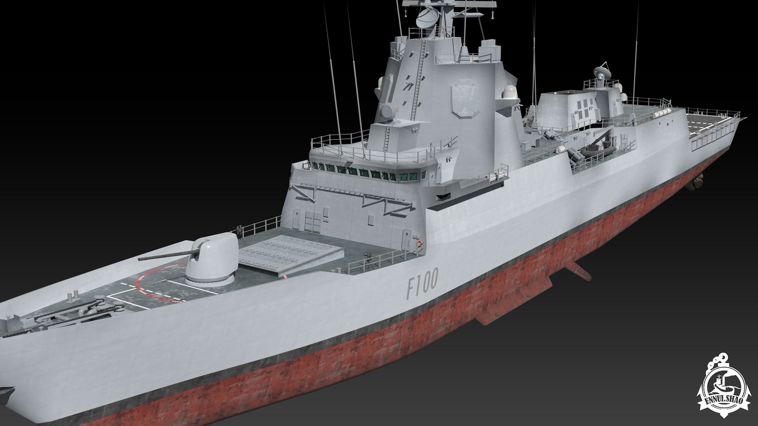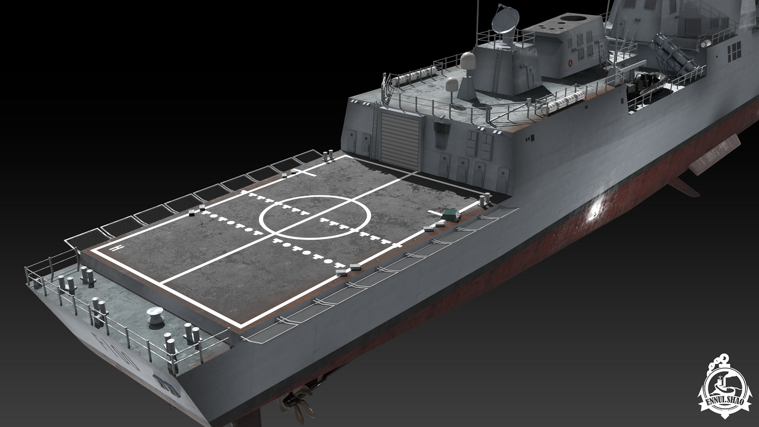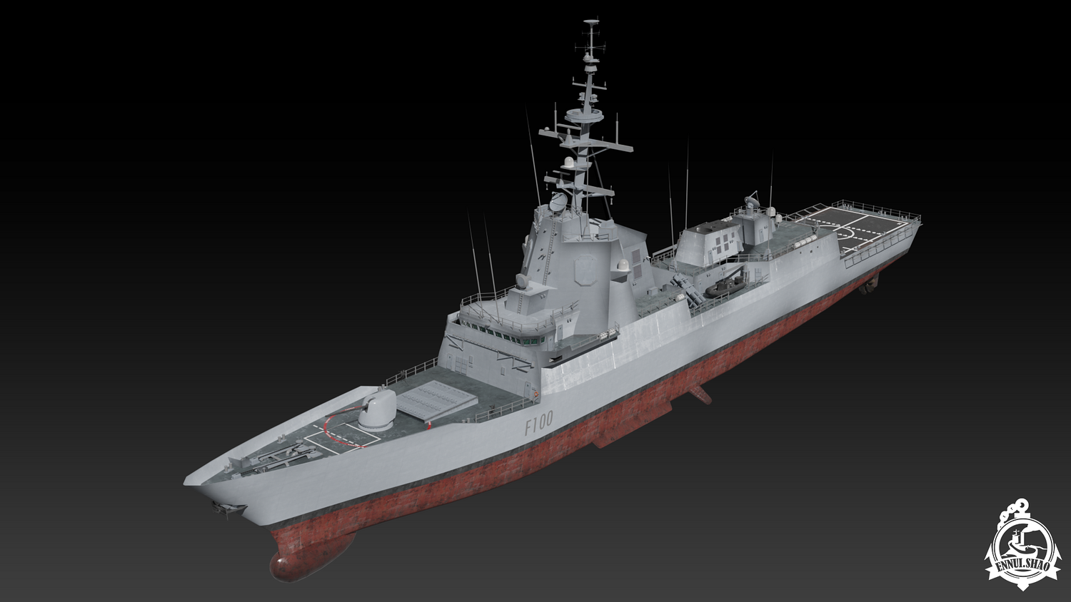 Spanish navy modern frigate SPS Alvaro de Bazan modeled with blender 3.5. 32 textures used, PBR material, UV mapped. The model is game-ready. FBX and OBJ format supported. All objects are named.