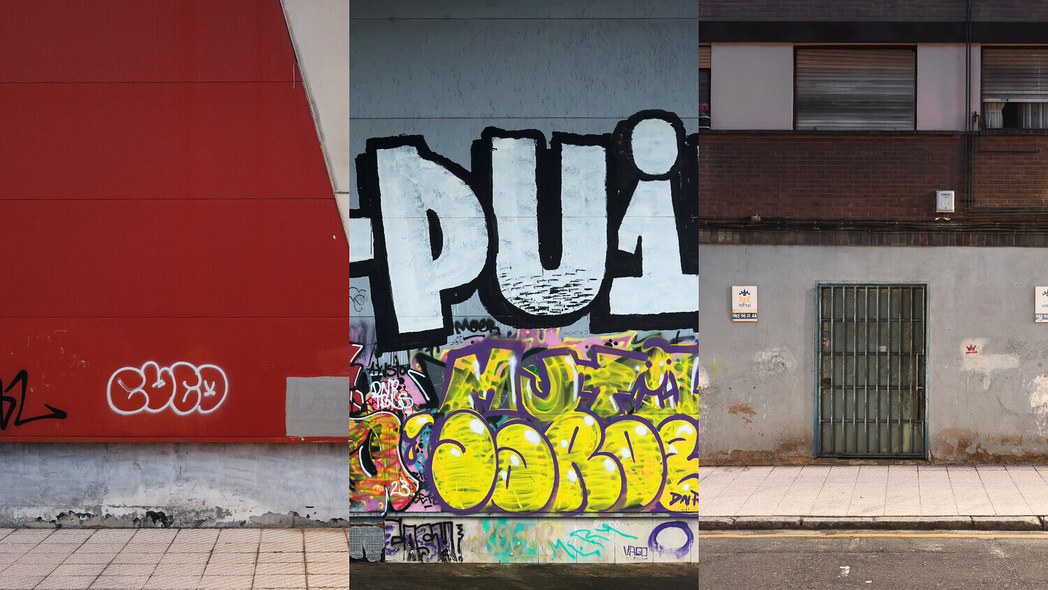 Tags: urban, decay, graffiti, environment, city, town, abandoned buildings, graffiti-covered walls, street art, vandalized surfaces, concrete, textures, rust, grime, peeling paint, broken facades, industrial, back alleys, city outskirts, road signs, urban signage, rail infrastructure, overpass, utility, weathered textures, architectural neglect, construction zone, grunge, European, suburb, decal, graffiti tag, props, objects