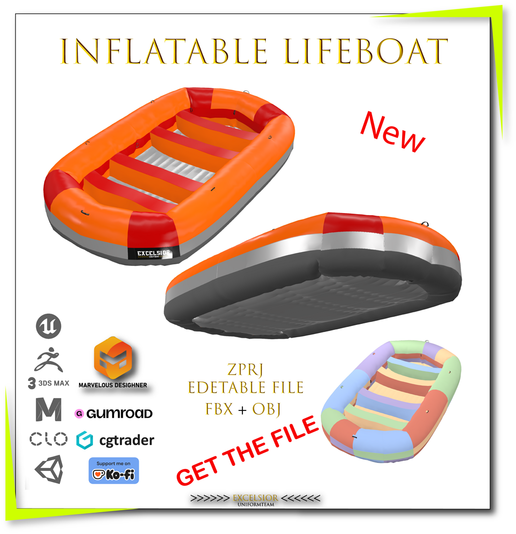 High-quality 3D inflatable lifeboat model with detailed seats. Delivered in ZPRJ, FBX, and OBJ formats, fully optimized for games, VR/AR, animation, simulation, and product visualization. The model is clean, lightweight, UV-unwrapped, and easy to customize inside Marvelous Designer or CLO3D. Perfect for survival games, marine simulations, and realistic rendering projects. #3DModel #InflatableBoat Lifeboat, 3DAssets, SurvivalGame, Marine3D, BoatModel, FBX3D, OBJ3D, ZPRJ, GameAssets, VRReady, 3DDesign, Simulation3D, RescueBoat, EXCELSIOR UNIFORMS TEAM,
