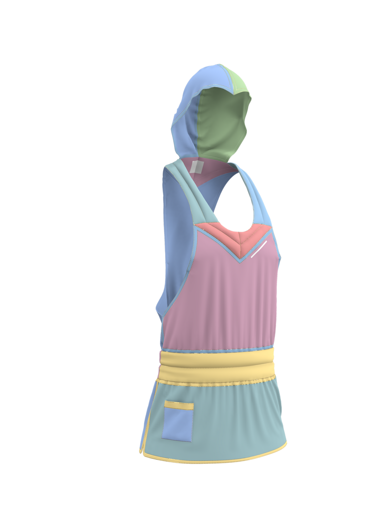 Original concept blending sleeveless hoodie and compression shirt.