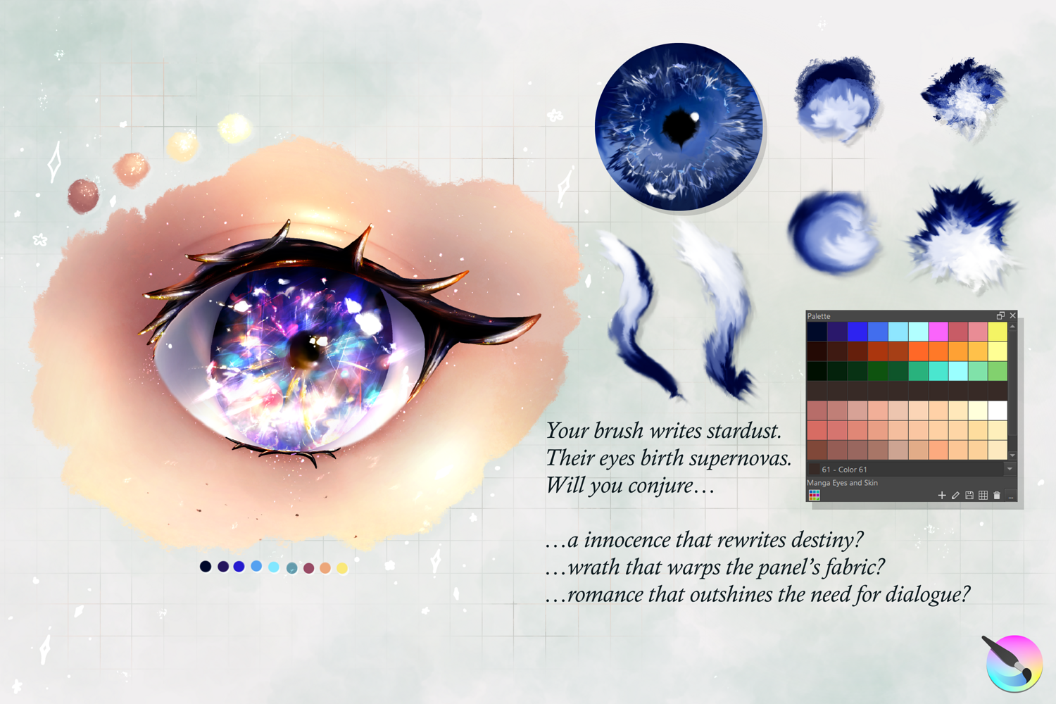 Unleash the soul of your characters with brushes that breathe life into every gaze! Whether you’re crafting heart-wrenching confessions, fierce shonen showdowns, or ethereal fantasy realms, this kit is your key to eyes that captivate, haunt, and define your manga’s legacy.