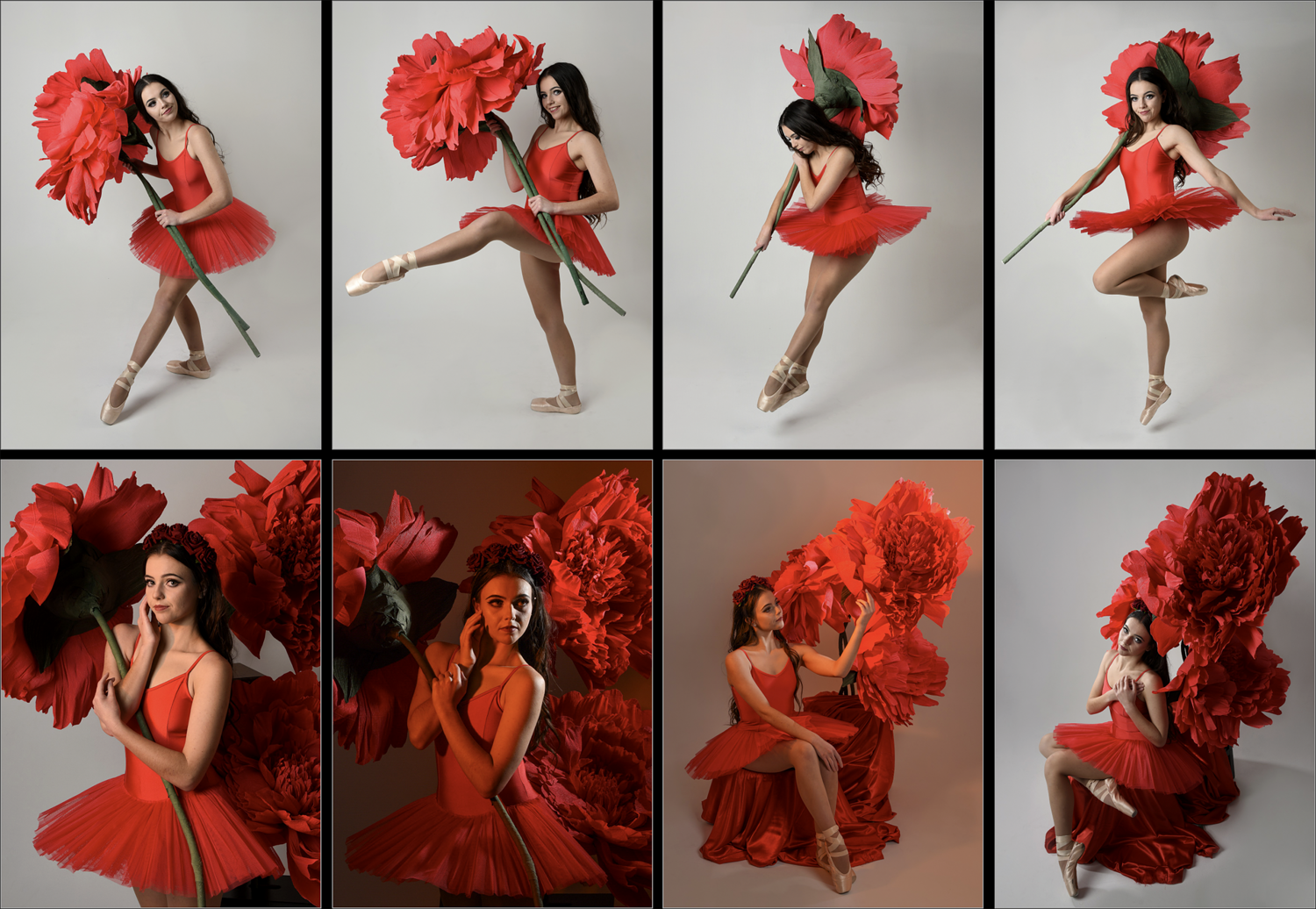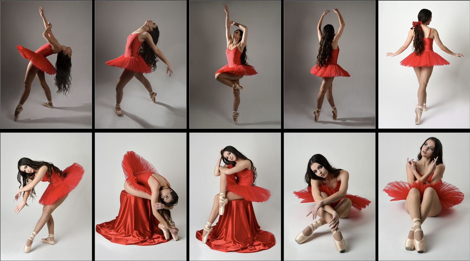 150 high-resolution studio portraits featuring model Olivia in a striking red ballet tutu, captured in a series of graceful, elegant poses. A trained dancer, Olivia performs classic ballerina movements en pointe, showcasing strength, poise, and fluidity.