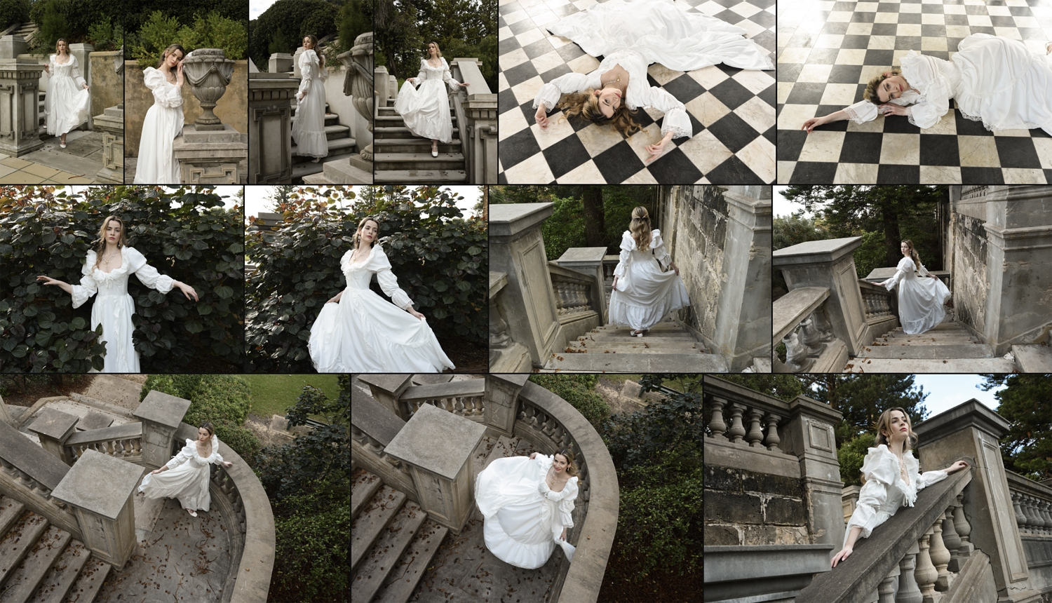 Shot entirely with natural light, the series captures soft textures, graceful movement, and elegant poses that feel like scenes from a fairytale.This magnificent setting is the ideal inspiration for any historical romance novel or gothic masterpiece.