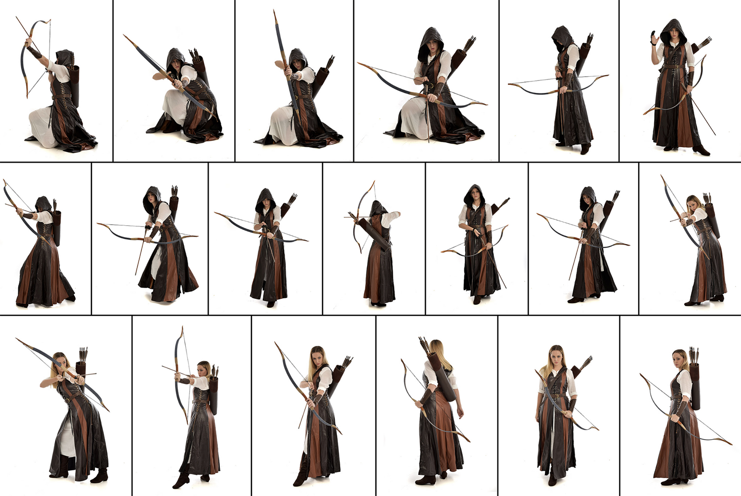 The character is ideal for classic fantasy adventures, D&D-style clerics, rogues, or rangers, and can be used to bring book characters, digital art, or roleplaying visuals to life. The pack includes 50 images with a sword, and 80 images with a bow and arrow, capturing hunting, archery, and action poses, as well as subtle magical or spell-casting gestures.