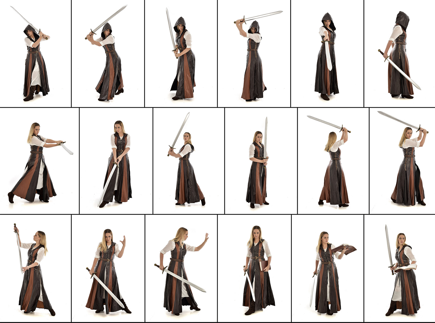 These portraits provide clear reference for artists looking to study costume, weapon handling, and dynamic medieval-style poses.