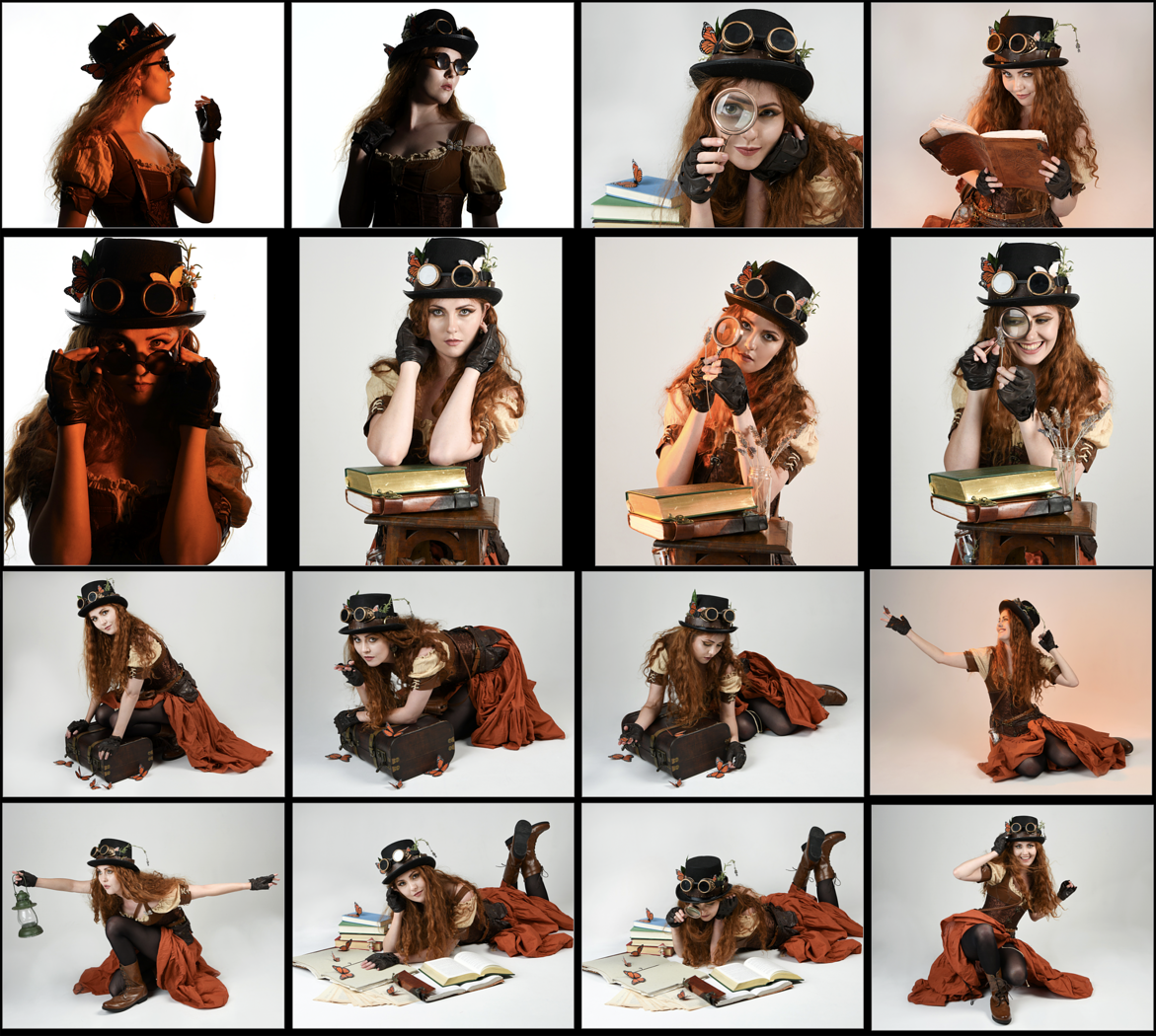 Steampunk Botanist - Fantasy stock model pose reference pack