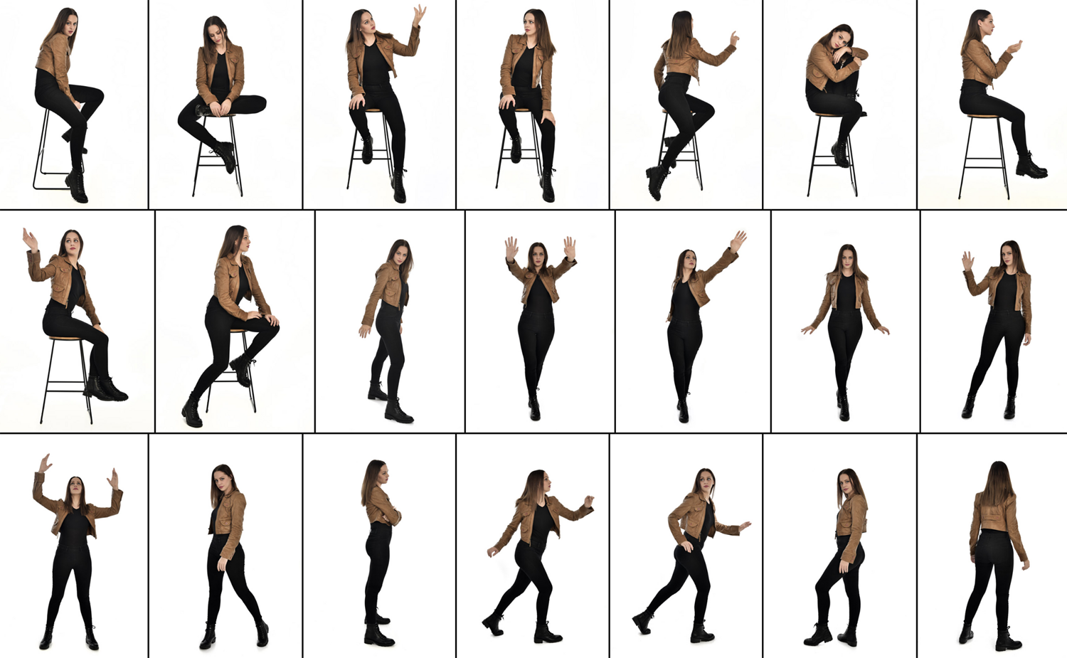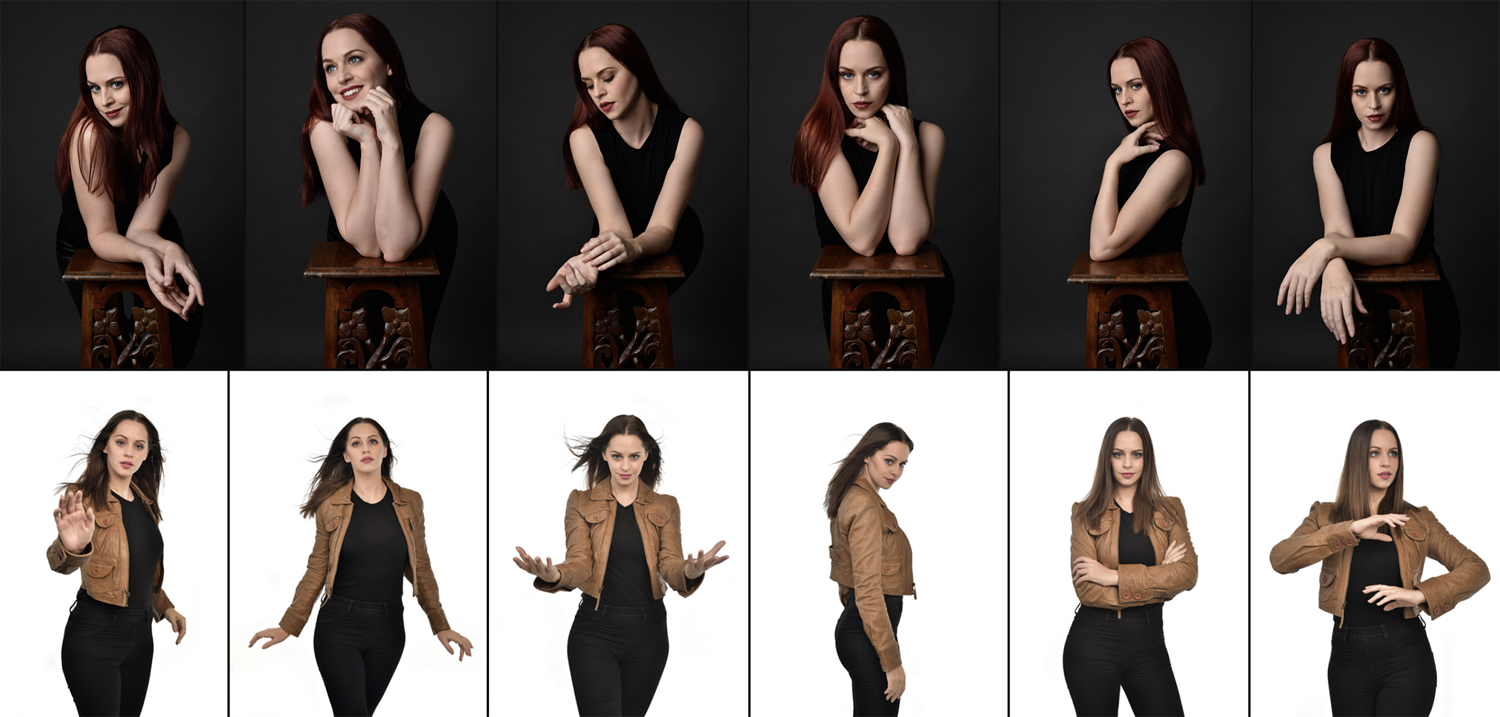 The basic styling allows for adapting versatile characters seamlessly across multiple narrative contexts from dystopian fiction and steampunk settings to contemporary realism, making these an essential reference for artists and designers working across diverse genres and visual aesthetics. With a mix of strong standing poses, natural gestures, and expressive portraits, this pack offers flexible reference material for illustrators, photo manipulators, book cover designers, and visual storytellers looking for a practical, adaptable base character.