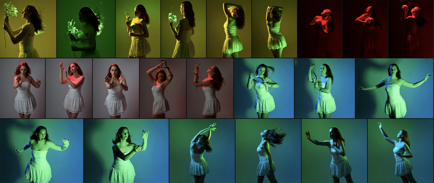 Created as an extension of my earlier Arm Gestures reference pack, this shoot revisits the same idea of dynamic, gestural posing but with a far more dramatic lighting approach. For this session I worked with multiple coloured lights in a range of combinations including blue, red, green and yellow, shifting their placement throughout the shoot to create very different moods and silhouettes.