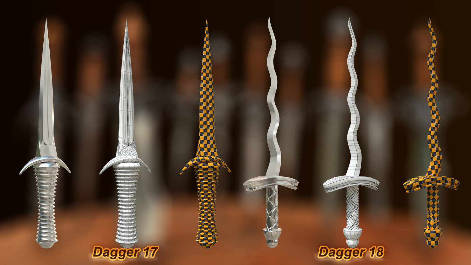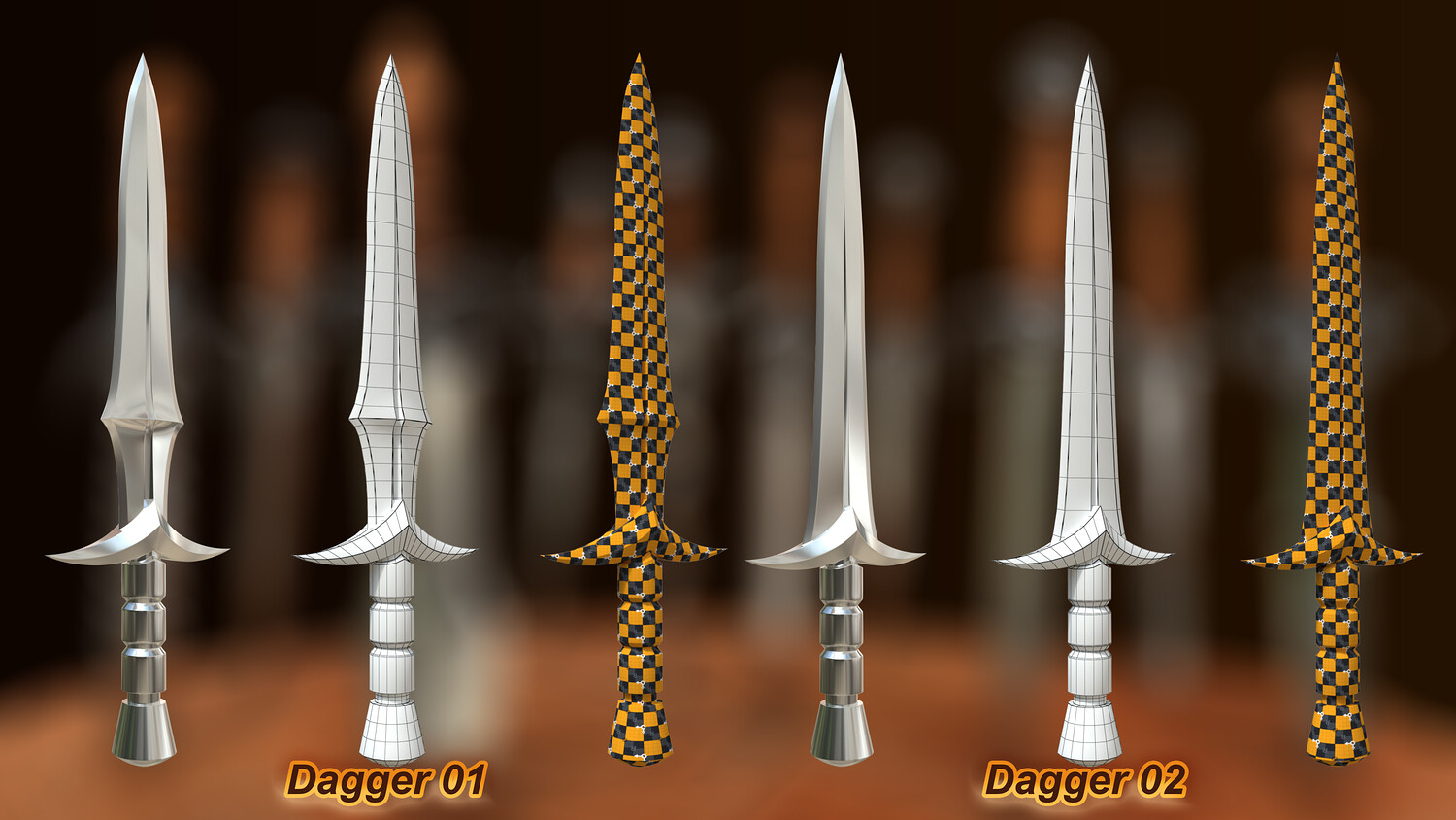 Each dagger is carefully modeled with clean quad topology and minimal triangles, making them highly optimized while maintaining impressive detail. All models are fully UV unwrapped and come without materials or textures β giving you full creative freedom to apply your own shaders, PBR textures, and styles. π¨β¨