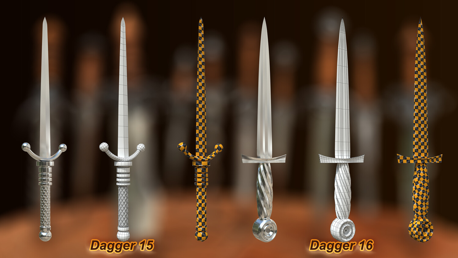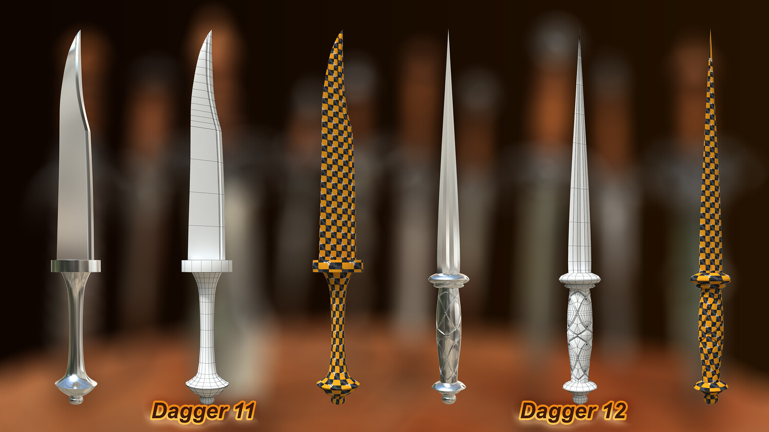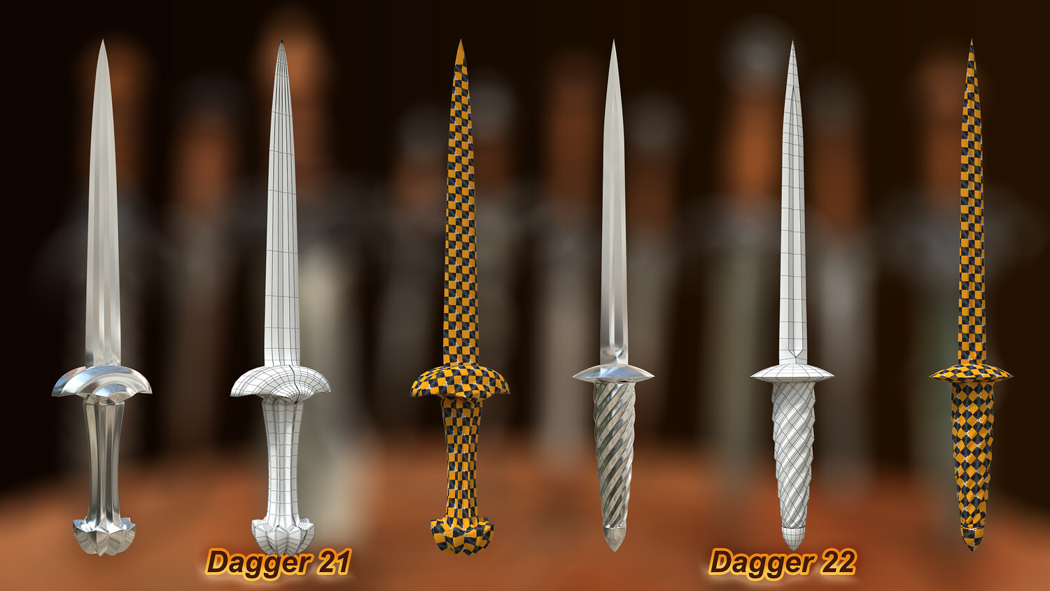 π₯ Why Choose This Pack? This collection saves you countless hours of modeling β³ while giving you game-ready, high-quality medieval weapons. Whether youβre building a medieval RPG, a combat simulation, or a cinematic scene, these daggers are the perfect base meshes to bring your project to life.