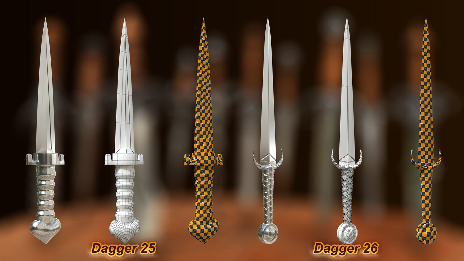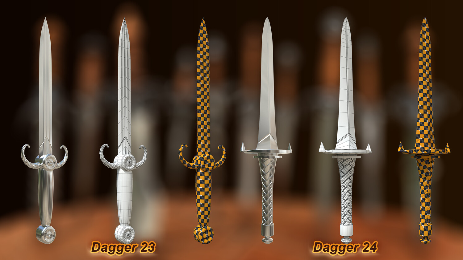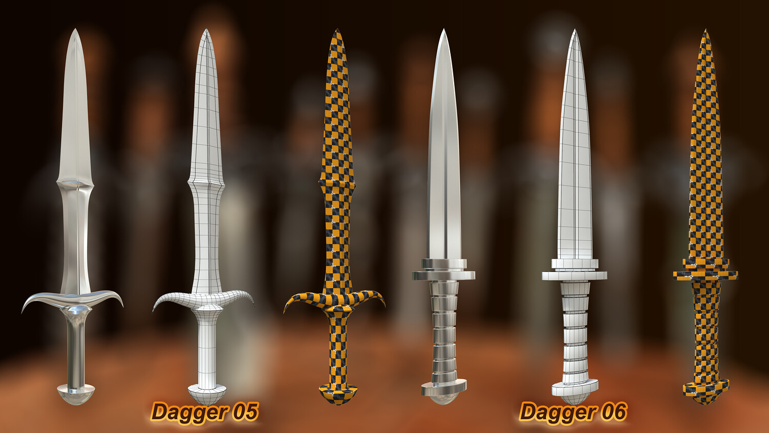 π₯ Why Choose This Pack? This collection saves you countless hours of modeling β³ while giving you game-ready, high-quality medieval weapons. Whether youβre building a medieval RPG, a combat simulation, or a cinematic scene, these daggers are the perfect base meshes to bring your project to life.