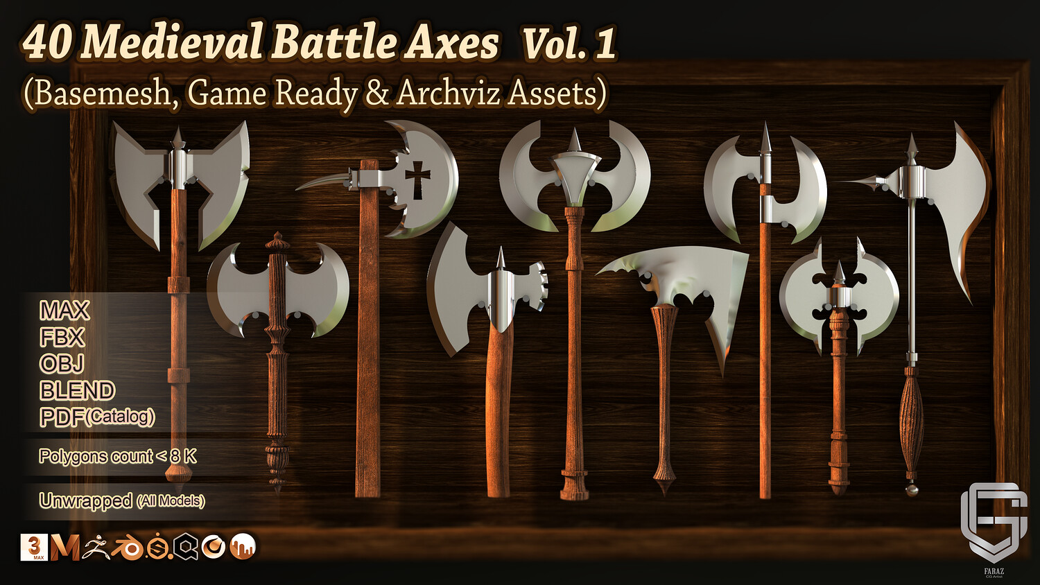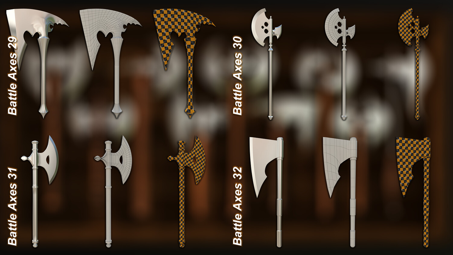 40 Medieval Battle Axes – Vol. 1 (Basemesh, Game ready & Archviz Assets)