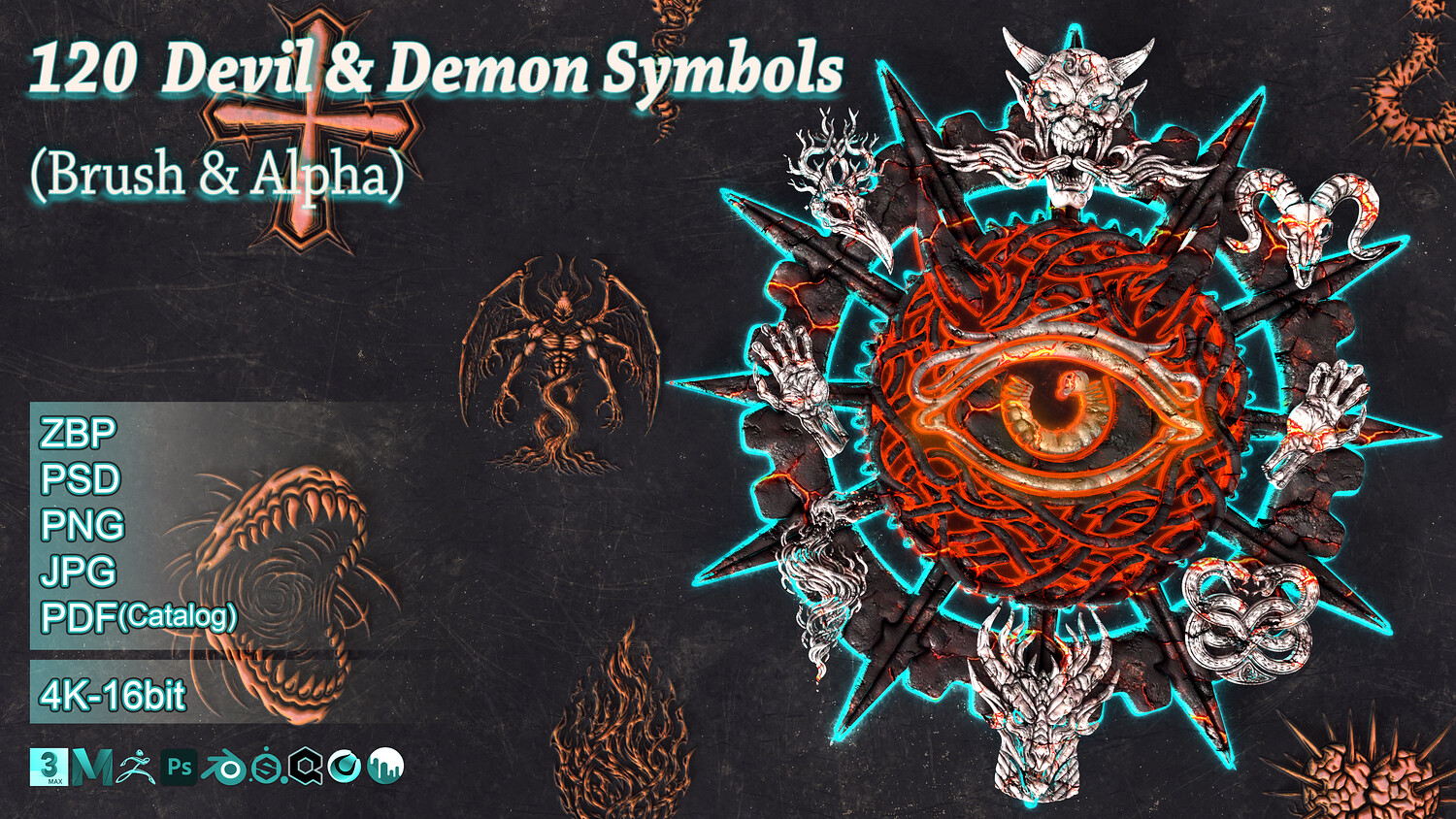 π₯ 120 Devil & Demon Symbols β Alpha & Brush Pack π₯ A high-quality collection of 120 handcrafted demonic and occult symbols, designed for artists who want to add dark, mystical, and supernatural details to their work. This pack delivers clean, sharp, production-ready alphas ideal for ZBrush detailing, texture creation, concept art, VFX, game assets, and UI design.