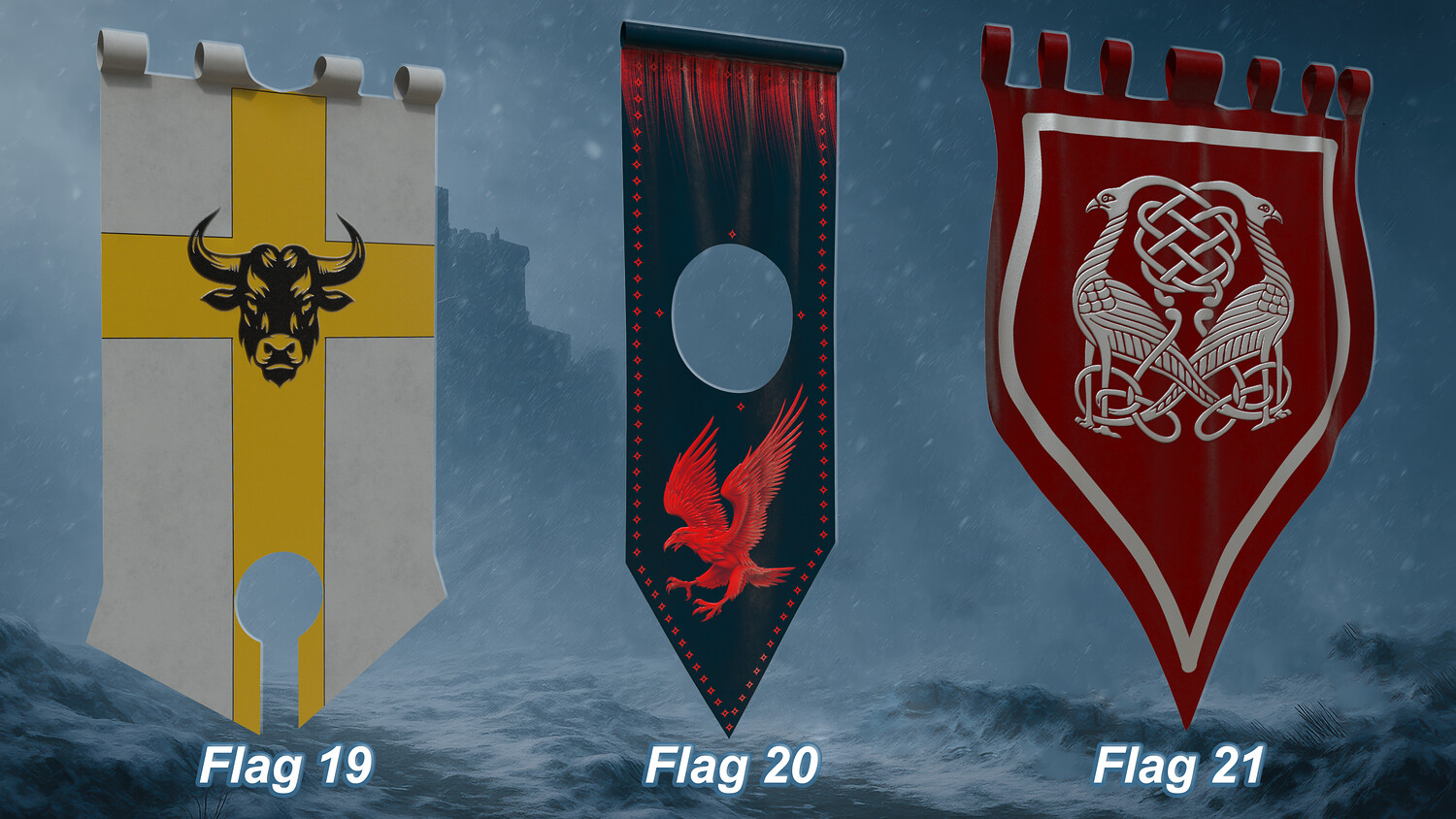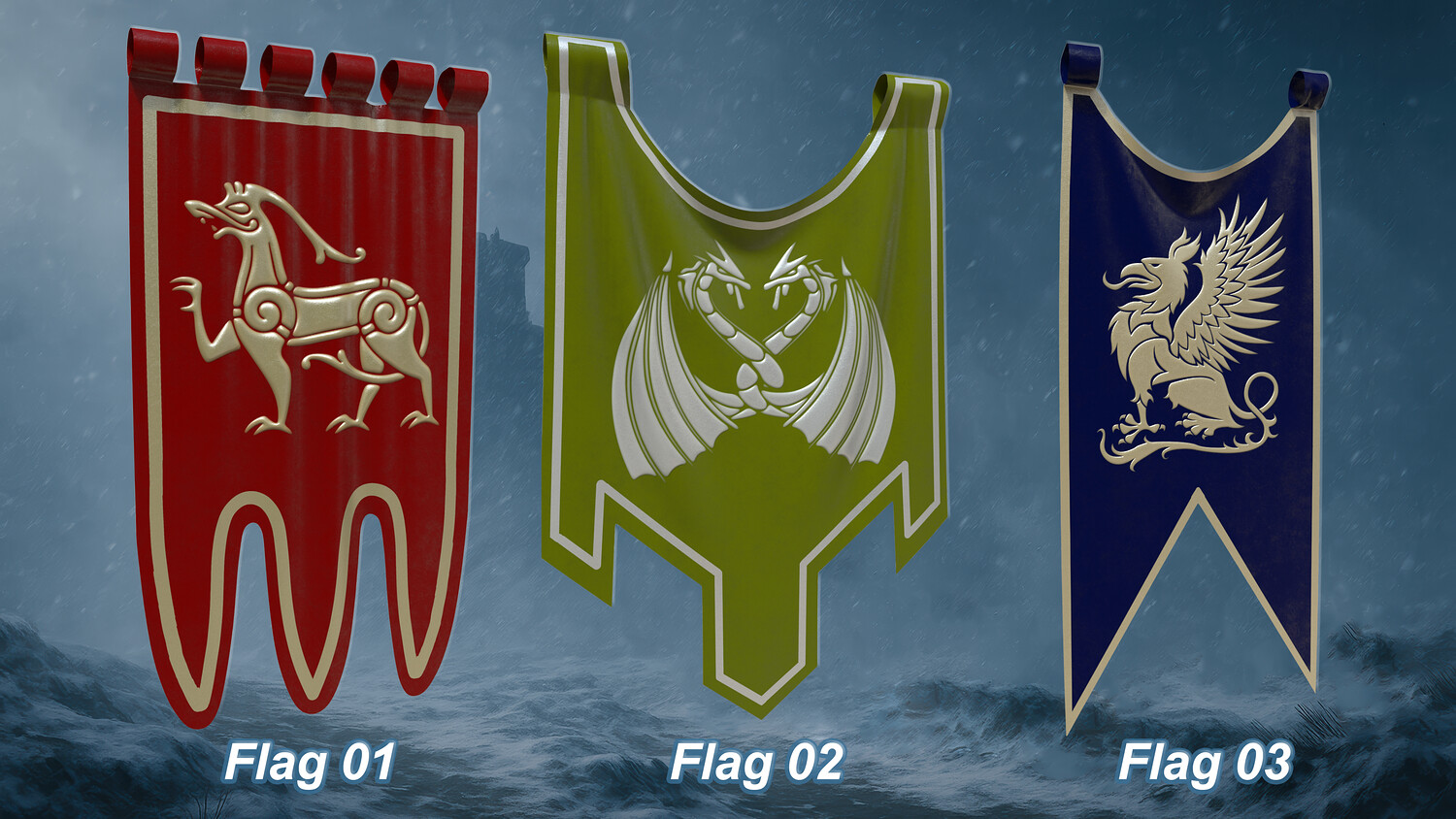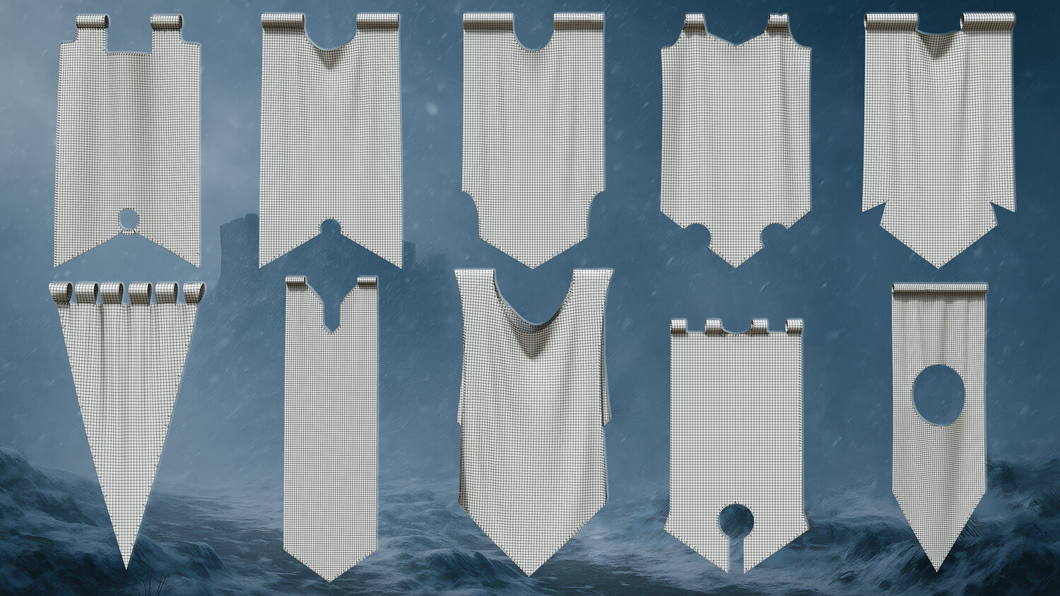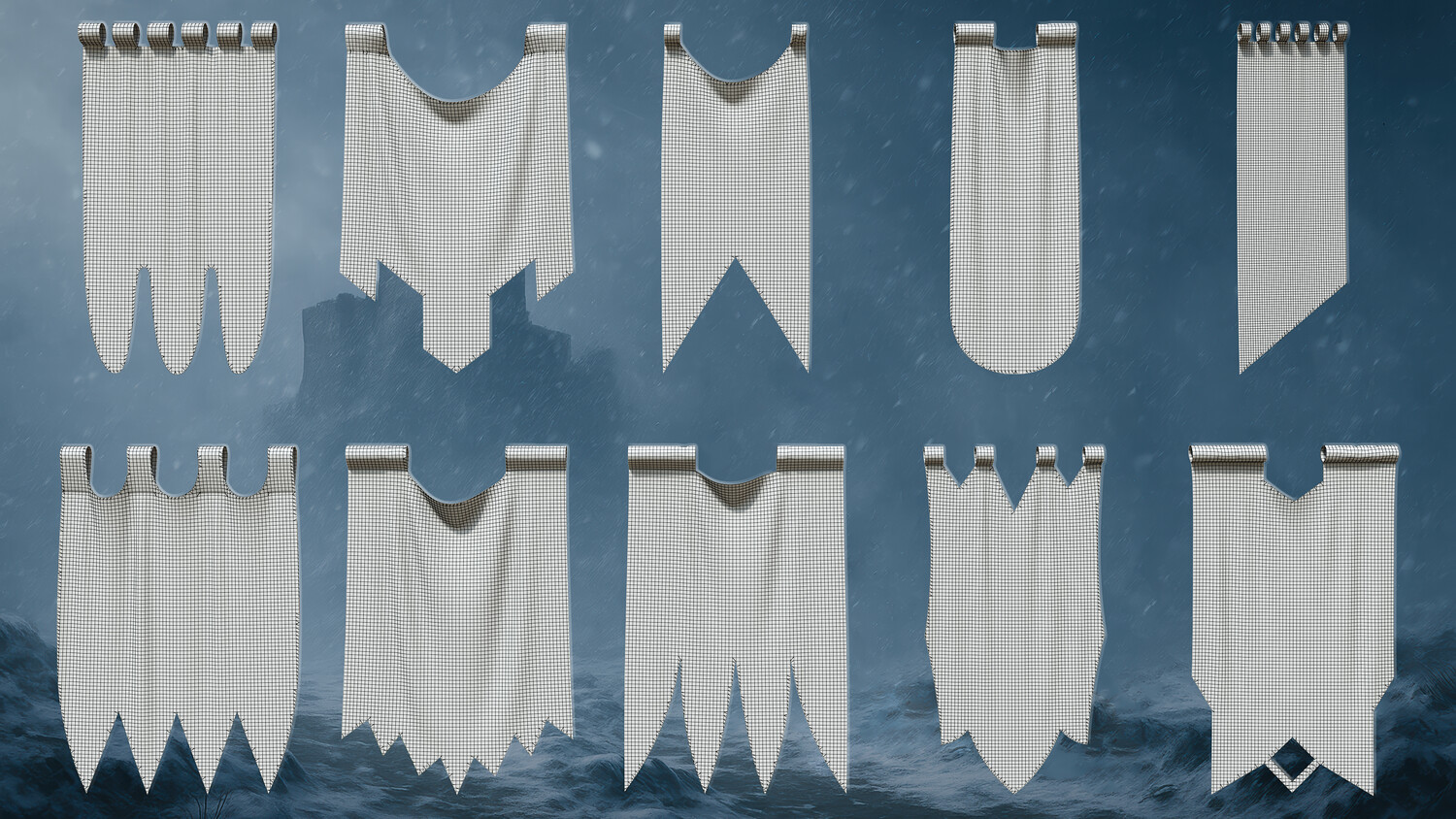 Take your fantasy world to the next level with the second volume of our premium Medieval Flag Collection. These 25 new flags are crafted with precision using Marvelous Designer for realistic cloth simulation and unique medieval shapes.