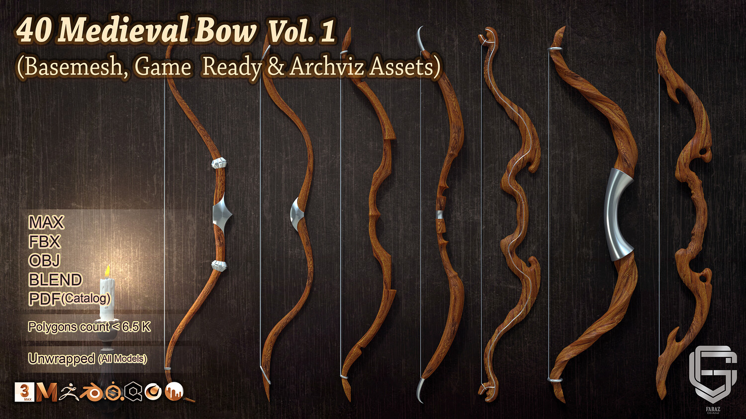 40 Medieval Bows β Vol. 1 (Basemesh, Game ready & Archviz Assets)