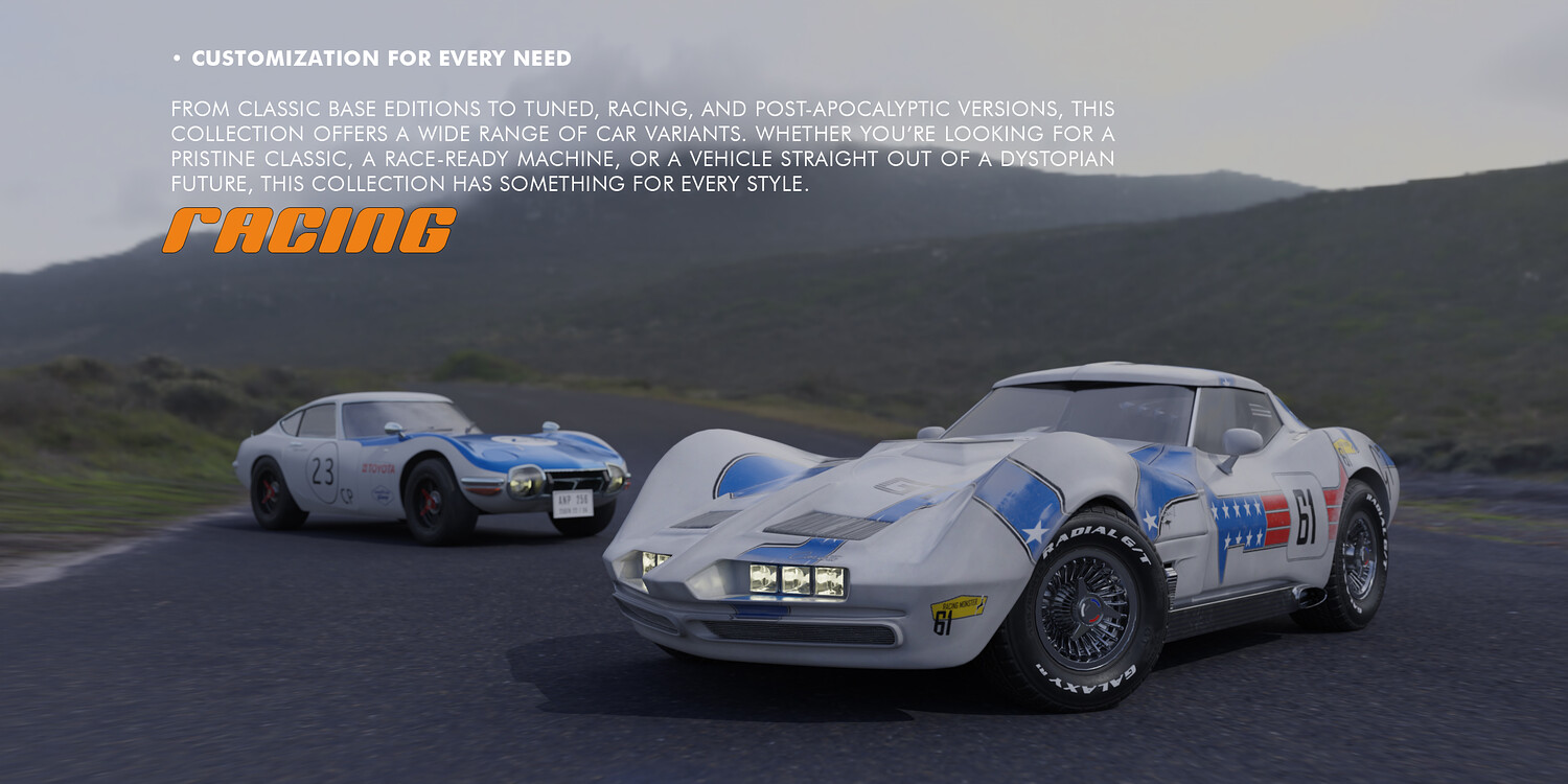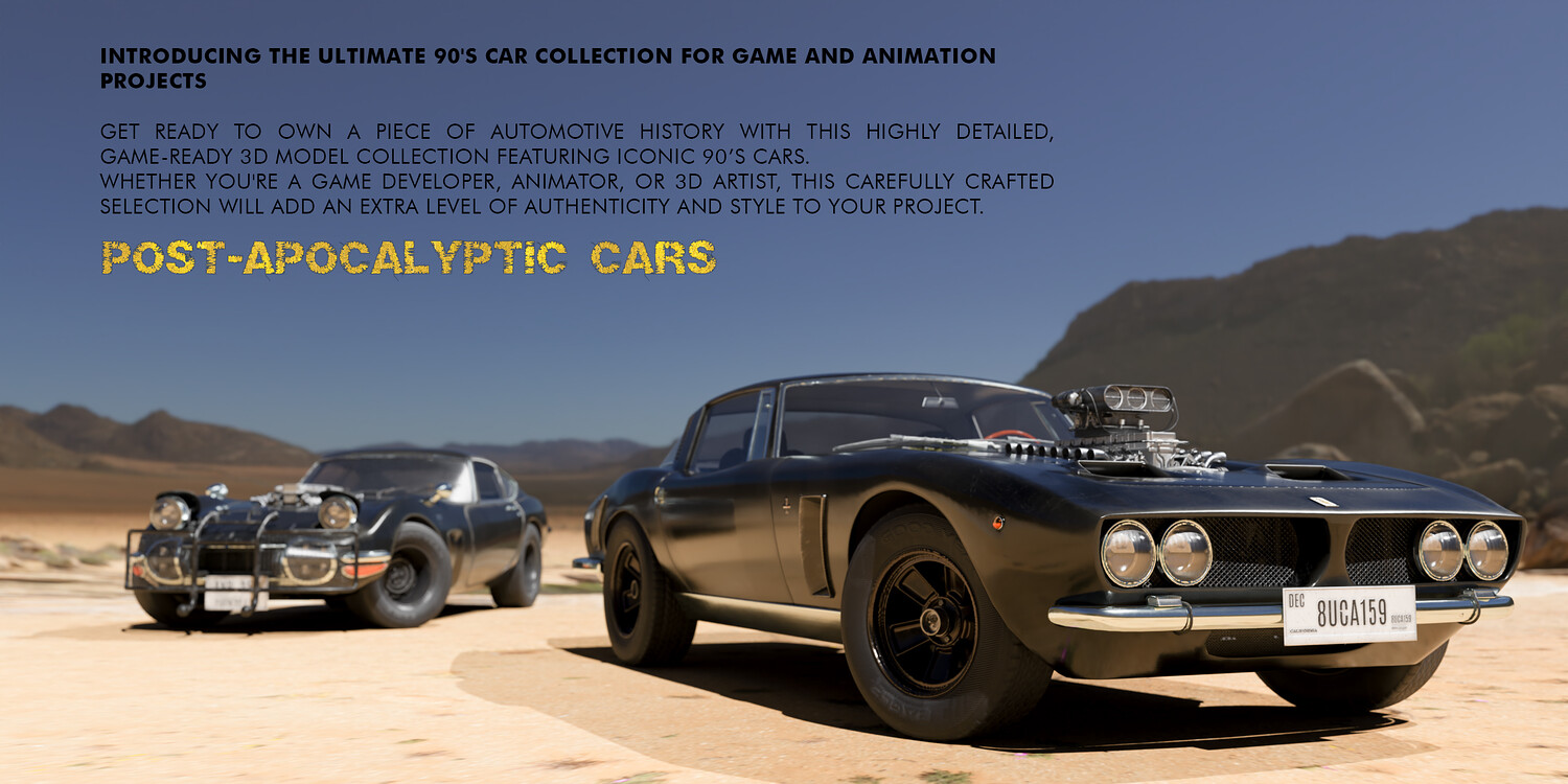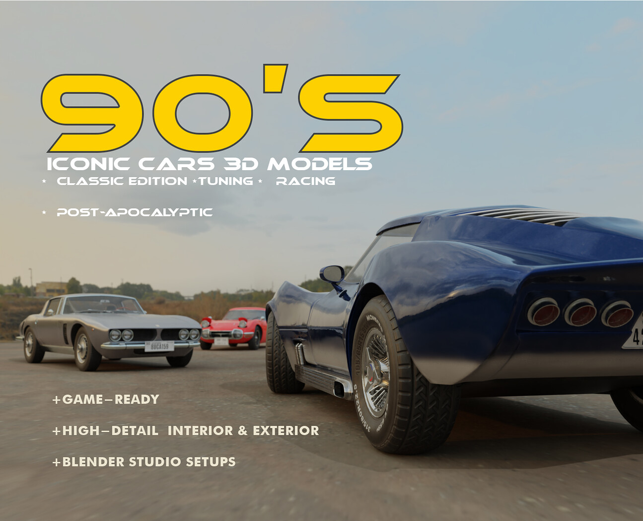 ๐โจ Unlock the Ultimate 90โs Car Collection โ Game-Ready & Fully Customizable! Bring your game or animation project to life with iconic rides like the Grand tourer, Two-door convertible, and more available in 9 epic variants: Classic Tuning Racing Post-apocalyptic-style! ๐ ๏ธ 4K PBR textures ๐ฎ Game-engine ready (Unity, Unreal) ๐ฆ Blender setup included ๐ Royalty-free for all your projects Perfect for devs, animators, and 3D artists who want realism, style, and speed. ๐ฅ โก๏ธ Donโt miss out โ elevate your project now!