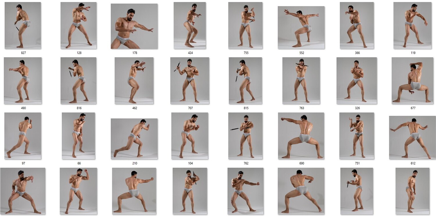 Unleash dynamic energy into your artwork with this high-impact male fighter reference pack. Featuring a fit, athletic male model, this pack delivers over [X] high-resolution images capturing a wide range of combat stances, punches, kicks, defensive moves, and intense action poses.