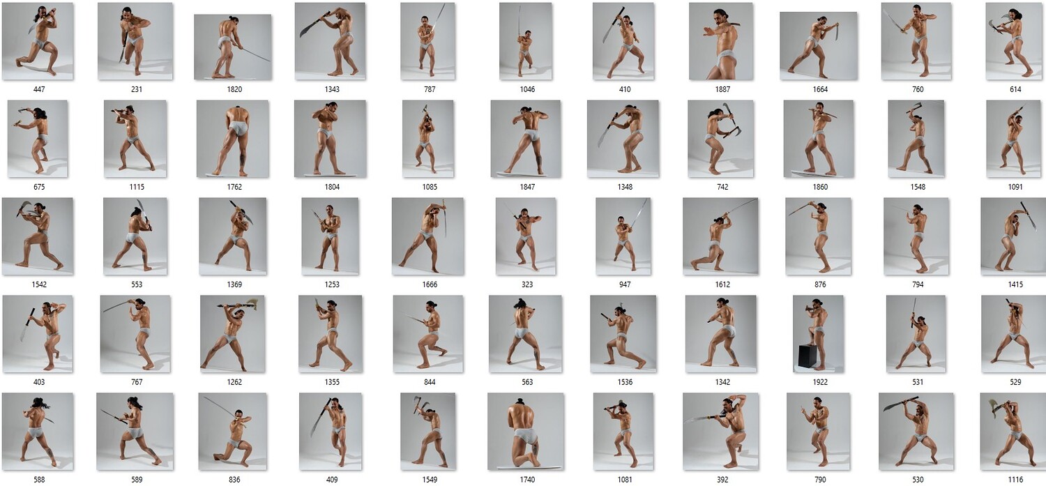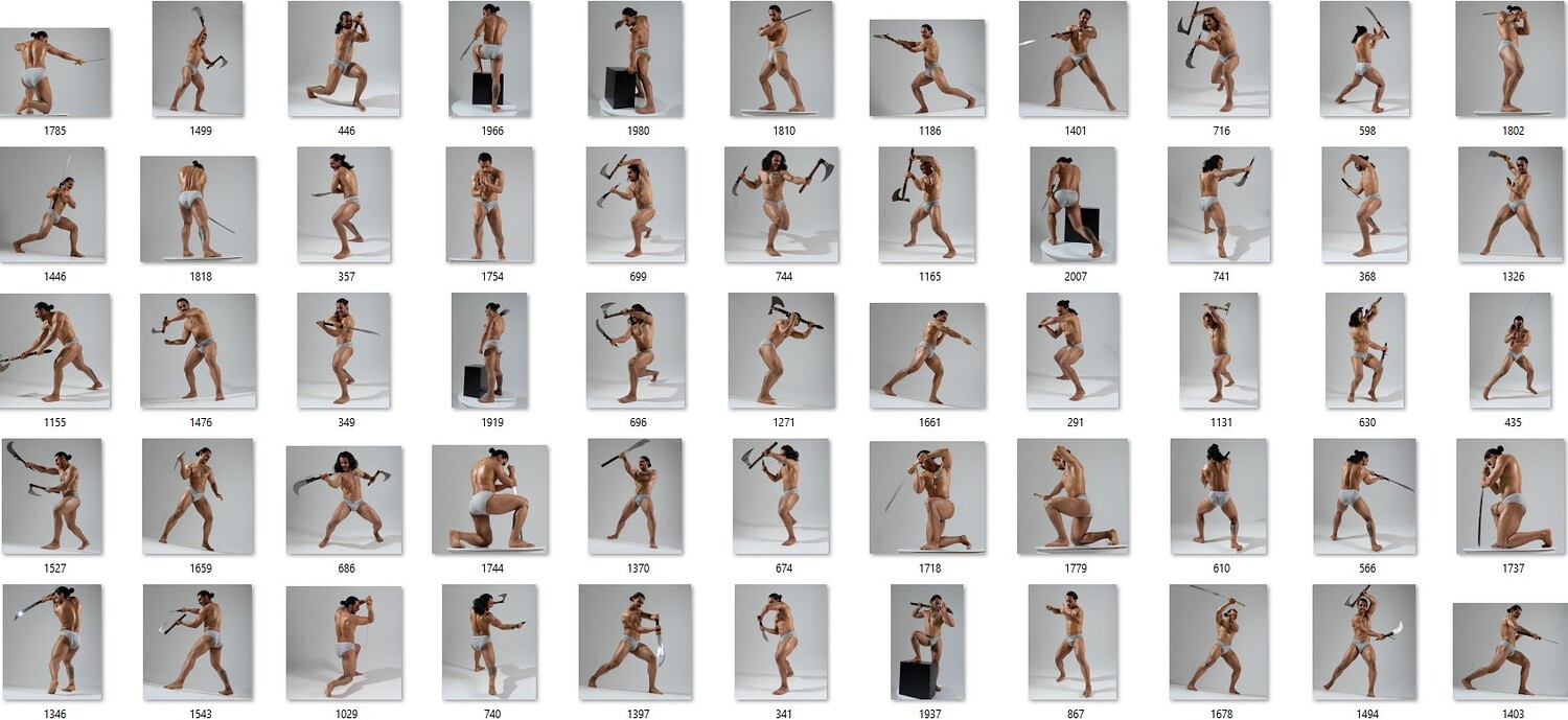 Unleash the full force of your creativity with this massive 2000+ image warrior reference pack, crafted for artists who crave power, motion, and cinematic intensity in their work. Every shot captures a fierce, battle-ready male figure in explosive action—slashes, strikes, lunges, and raw moments of warrior energy that feel pulled straight from an epic fantasy film. The clean studio lighting reveals every muscle, twist, and shift of weight, giving you perfect clarity for anatomy, gesture, and character design.