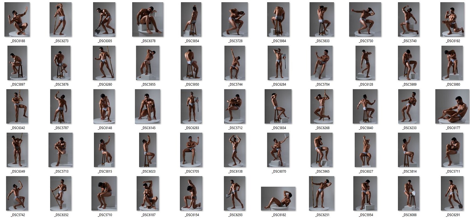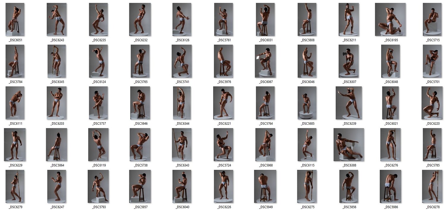 This collection features a stunning array of sculpturesque male poses, that capture the beauty, strength and grace of the male form. This pack includes a variety of poses that range from relaxed and contemplative to dynamic and powerful. These images are perfect for practicing anatomy, improving your gesture drawing and exploring the nuances of male musculature.Classical sculptures have long been celebrated for their idealized anatomy and graceful representation of the human body. With this pack, I wanted to bring that timeless aesthetic to a modern audience, helping artists focus on the complexities of muscle structure, proportion and light