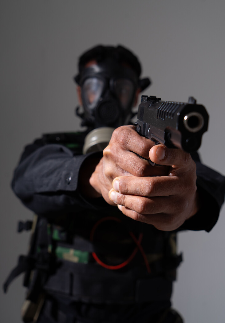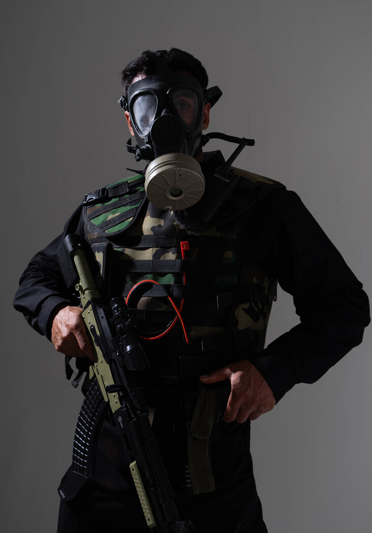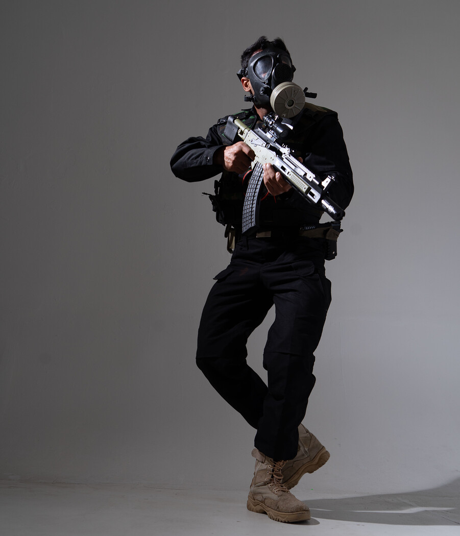 Various prop weapons (assault rifle, handgun – non-functional replicas)