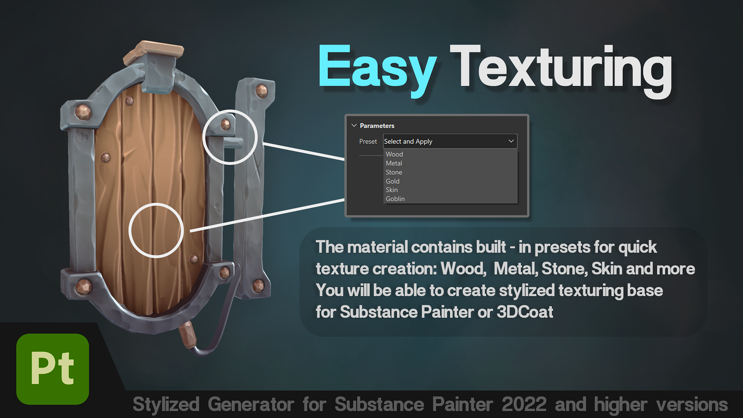 There are also 6 presets for quick texture creation: Skin, Wood, Metal, Stone, Gold, Goblin
