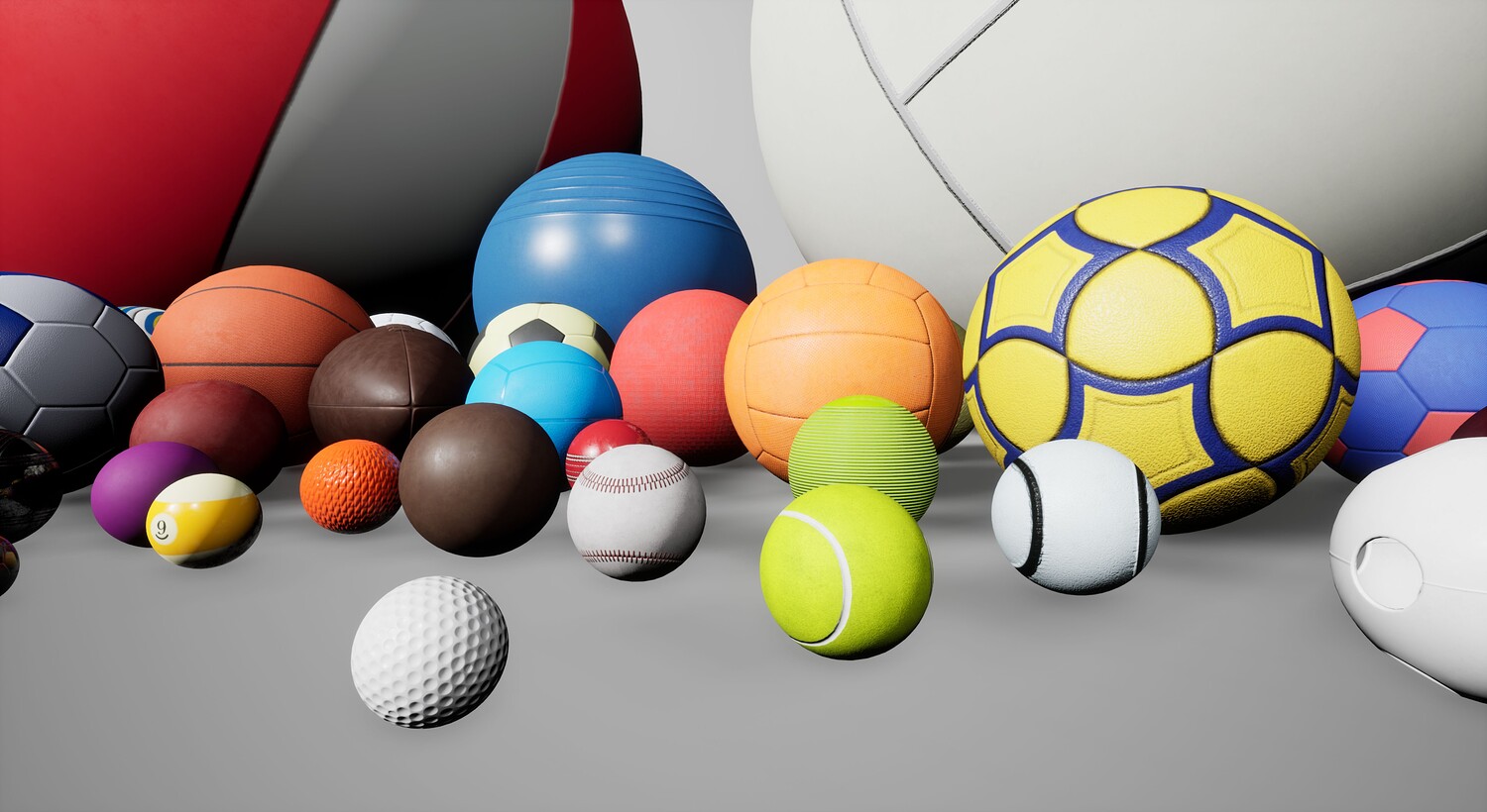 All assets are inspired by real-world sports equipment and scaled accurately. We’ve paid close attention to every detail — from the textured leather of the basketball to the fine stitching on the football.