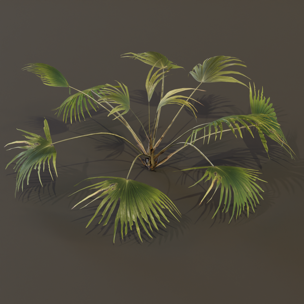 Tags: chinese palm bush, tropical plant, palm foliage, bush, greenery, vegetation, realistic plant, outdoor nature, 3d foliage