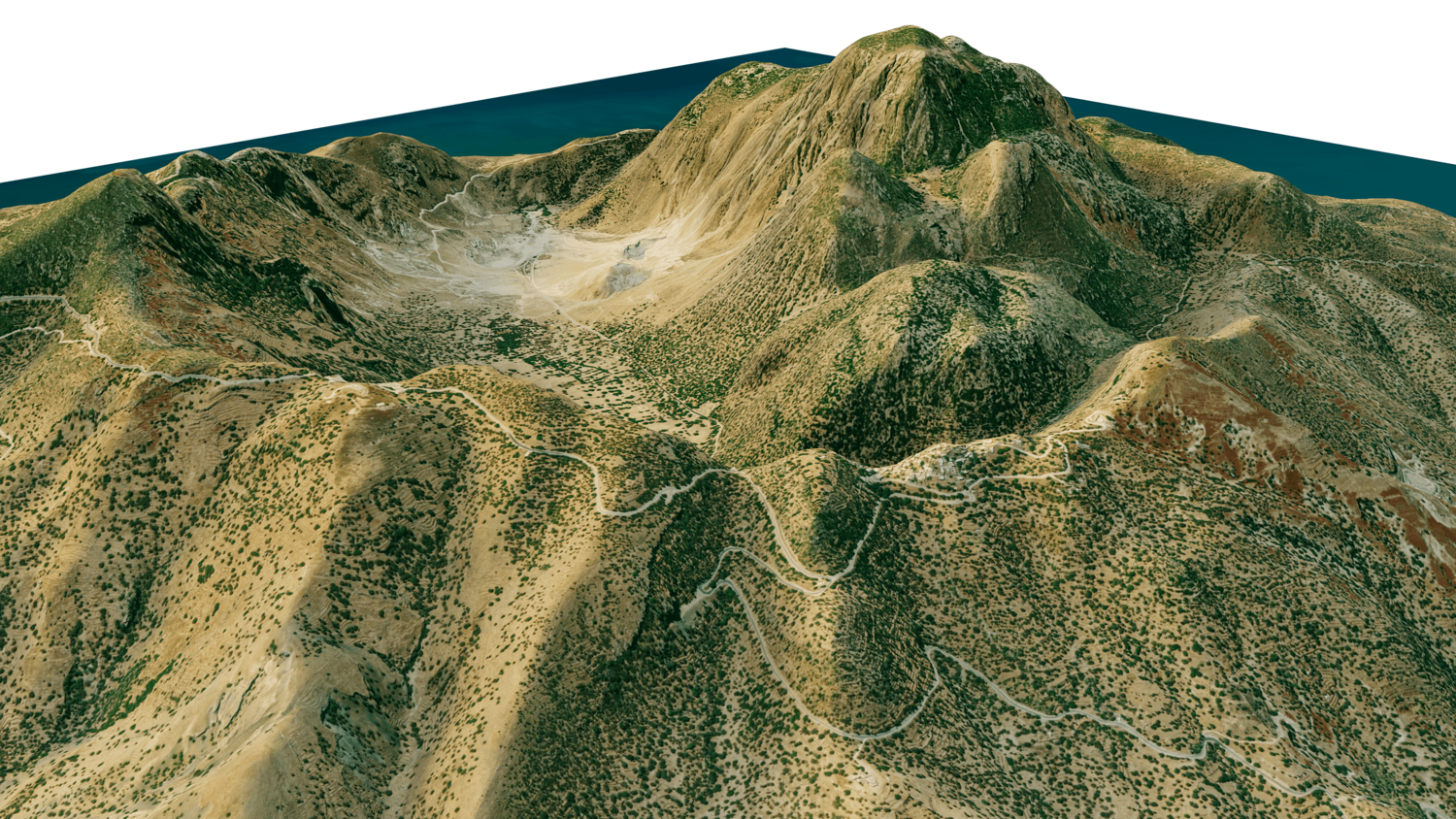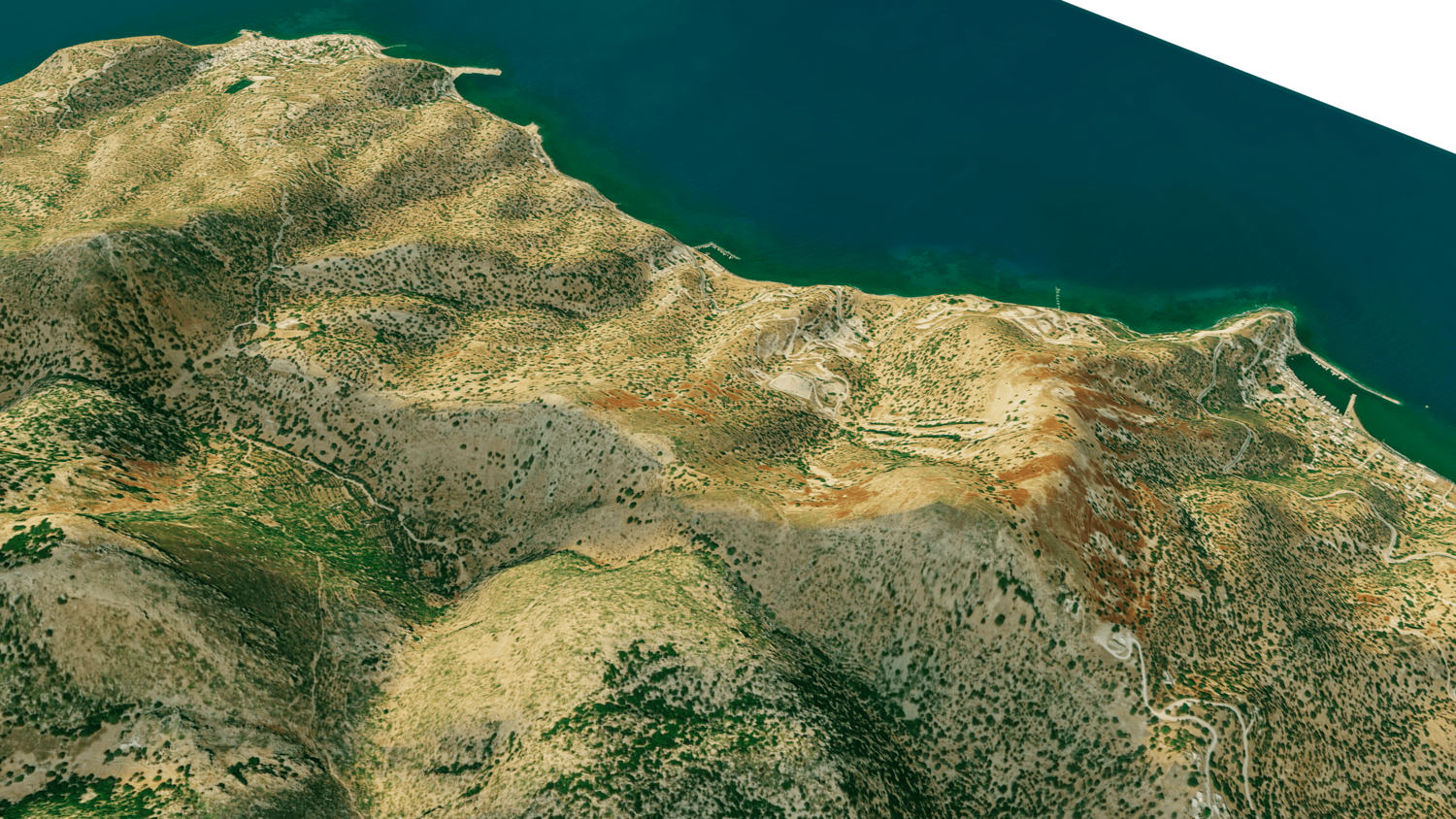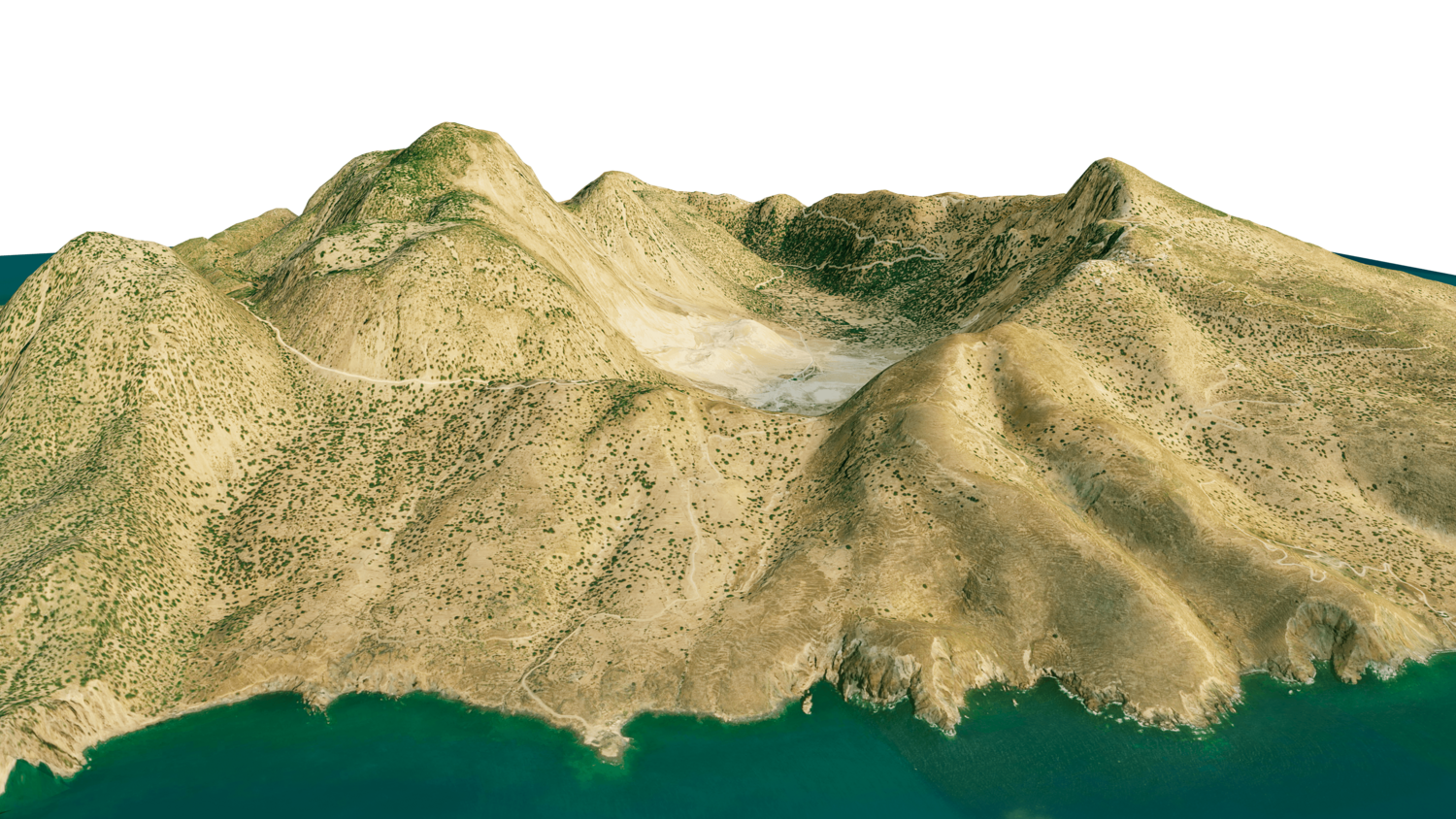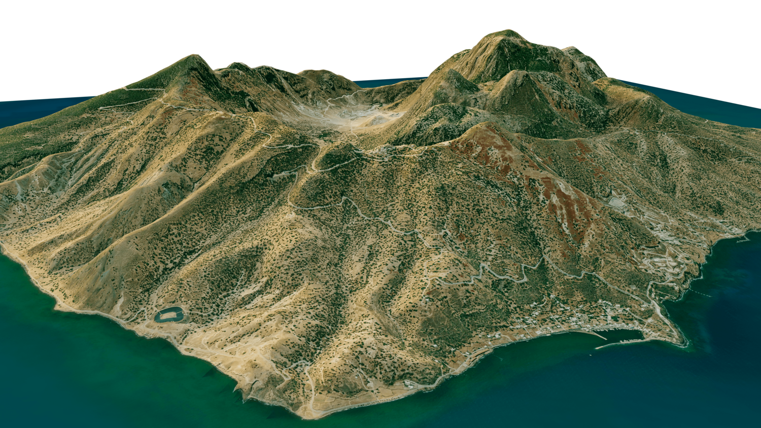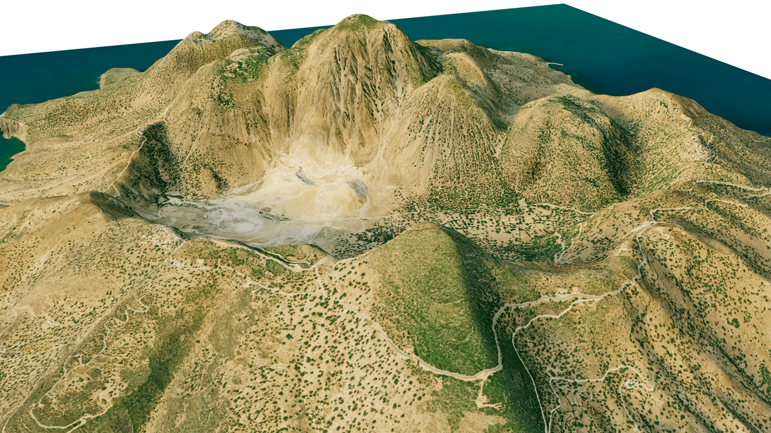 Nisyros Island 3D model terrain. 3d model island of Nisiros, Greece with its landscape of mountains, beaches and forests.