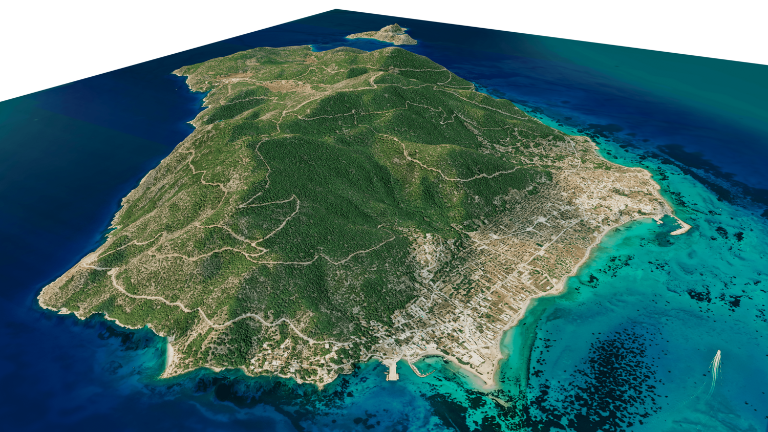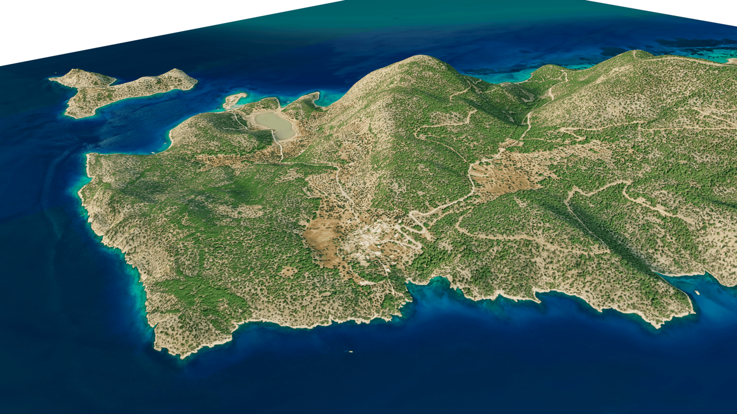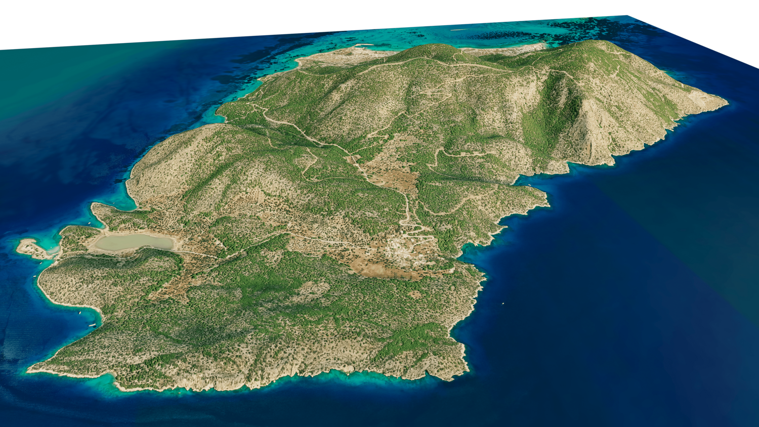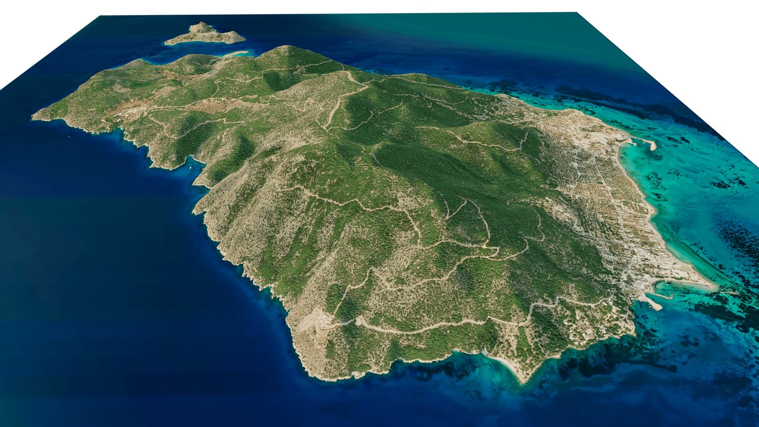 Agistri Island 3D model terrain. 3d model island of Agistri, Greece with its landscape of mountains, beaches and forests.