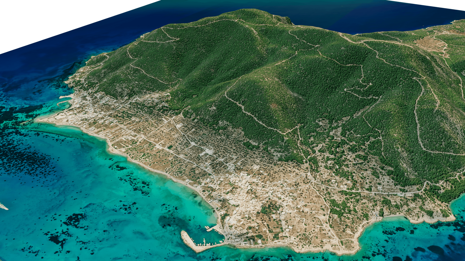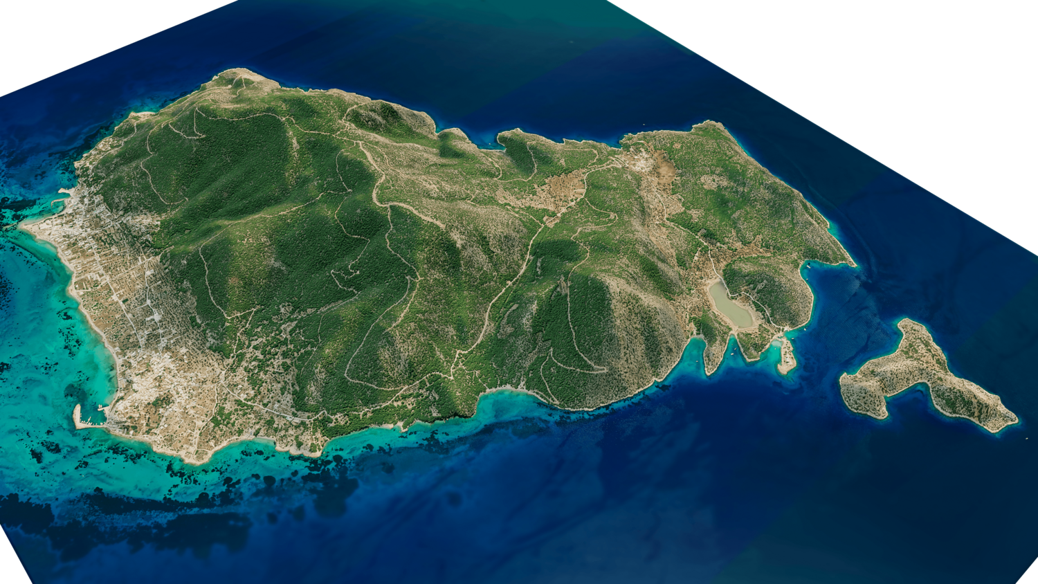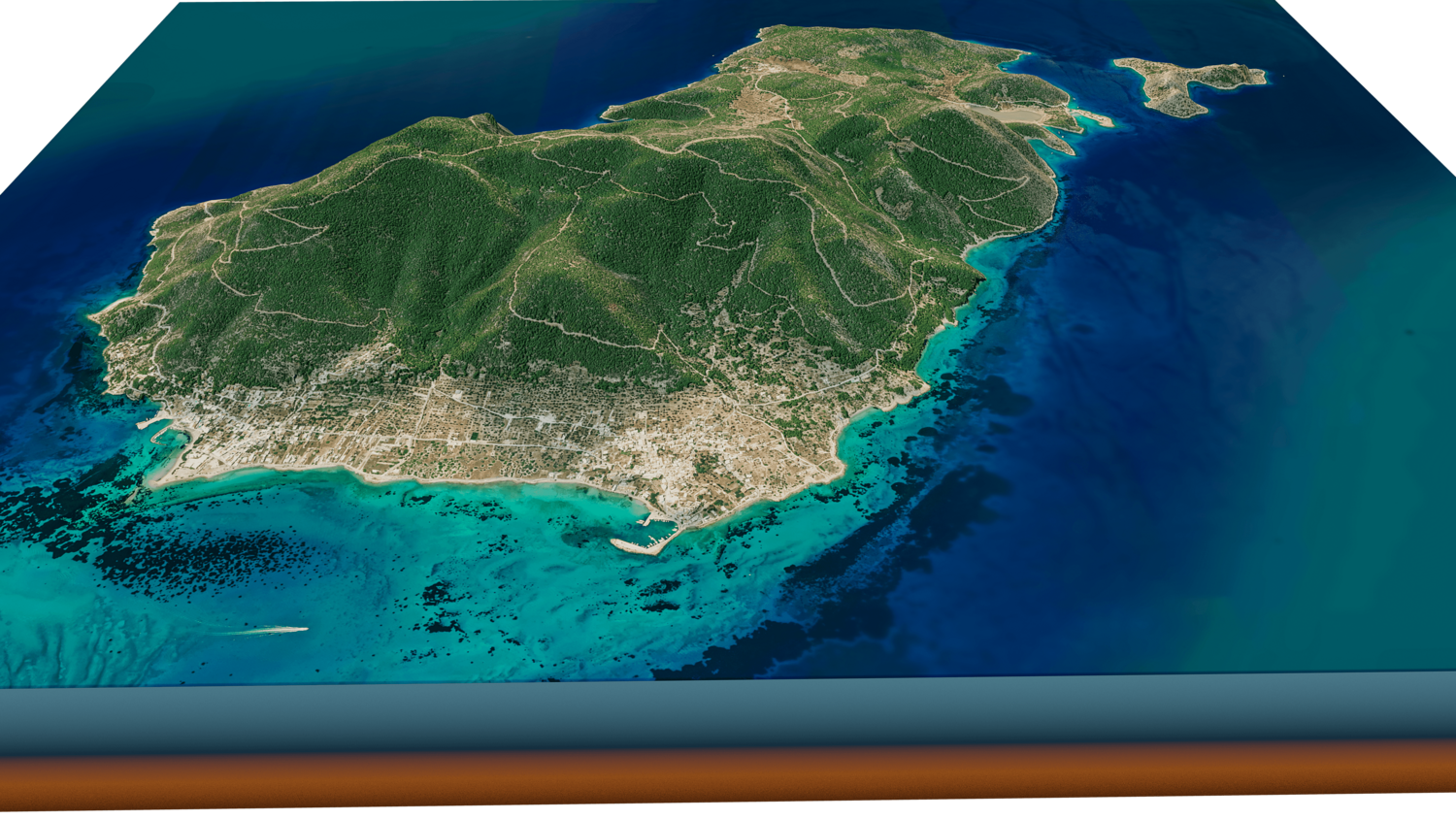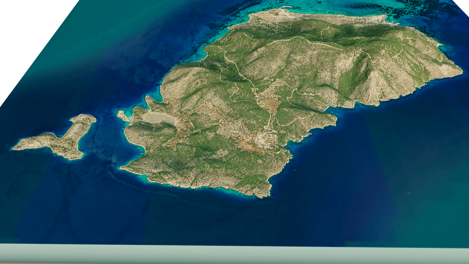 Agistri Island 3D model terrain. 3d model island of Agistri, Greece with its landscape of mountains, beaches and forests.