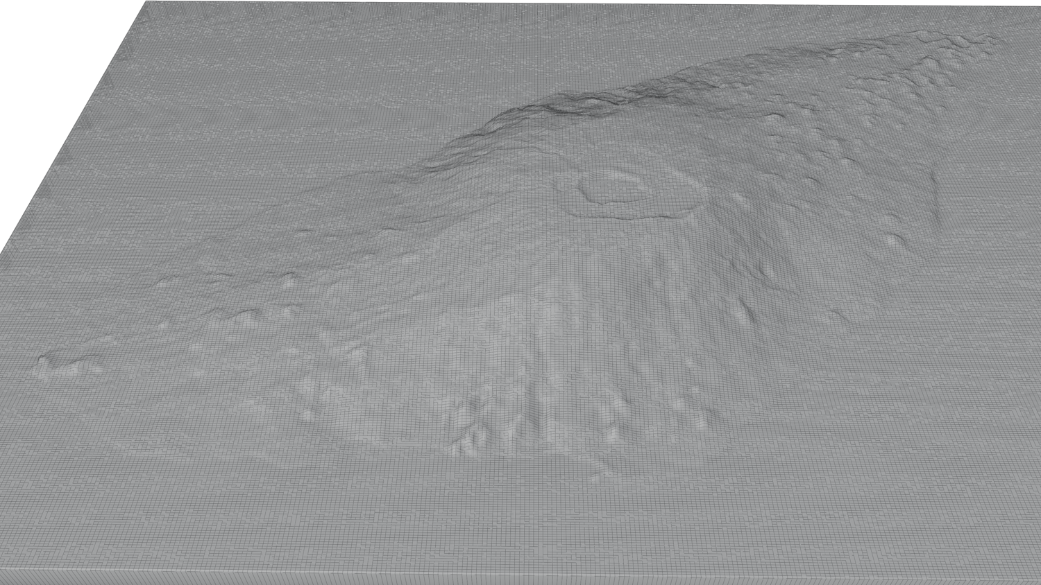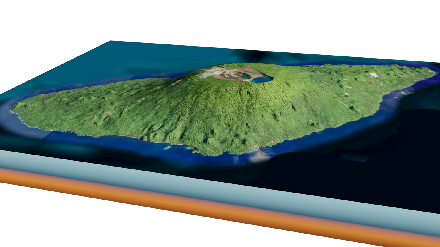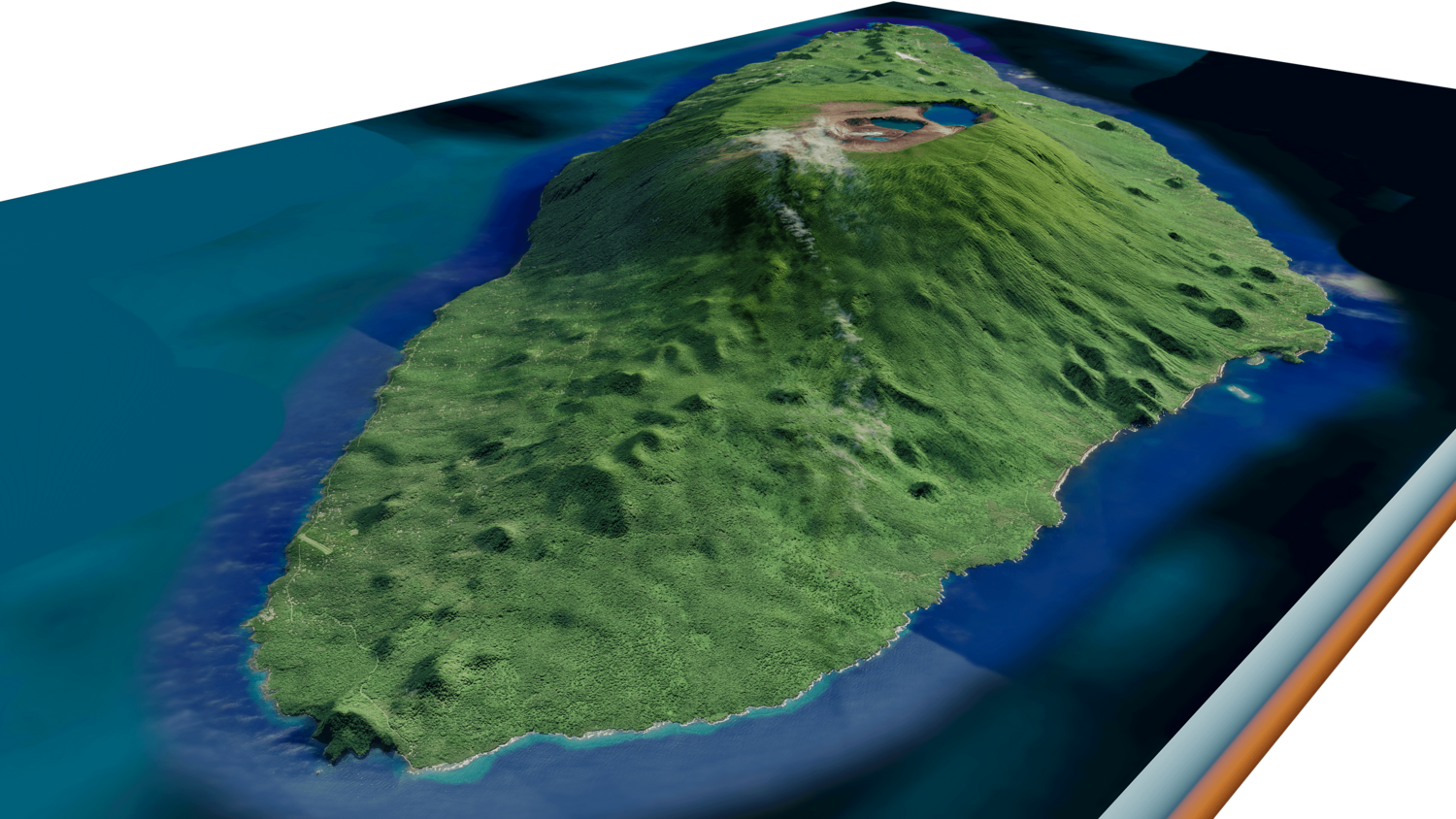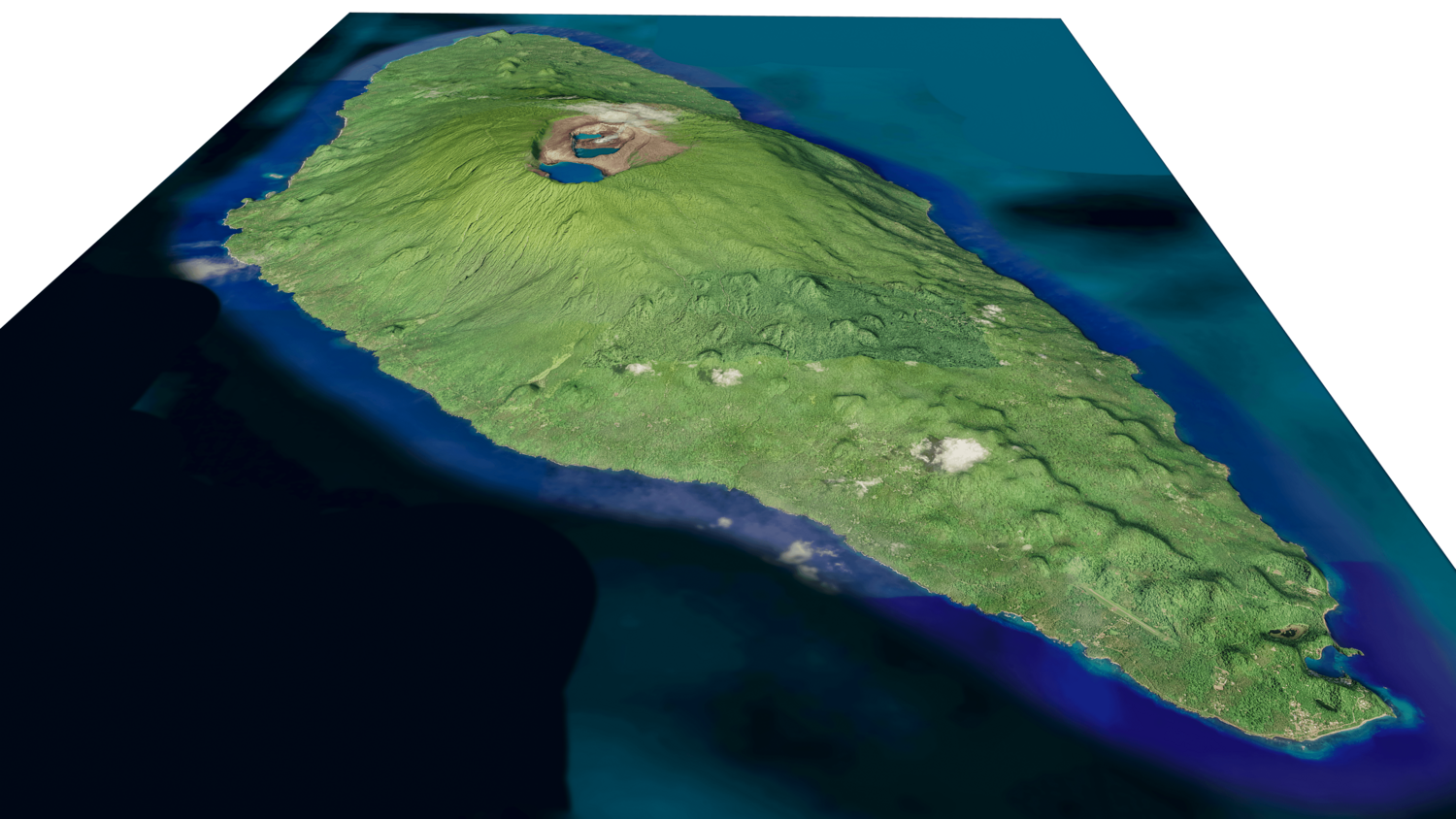 Ambae volcanic island 3D model terrain. 3d model island of Ambae, Vanuatu with its landscape of creater, beaches and forests.