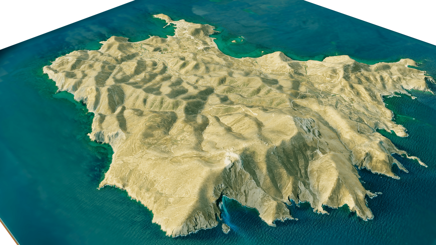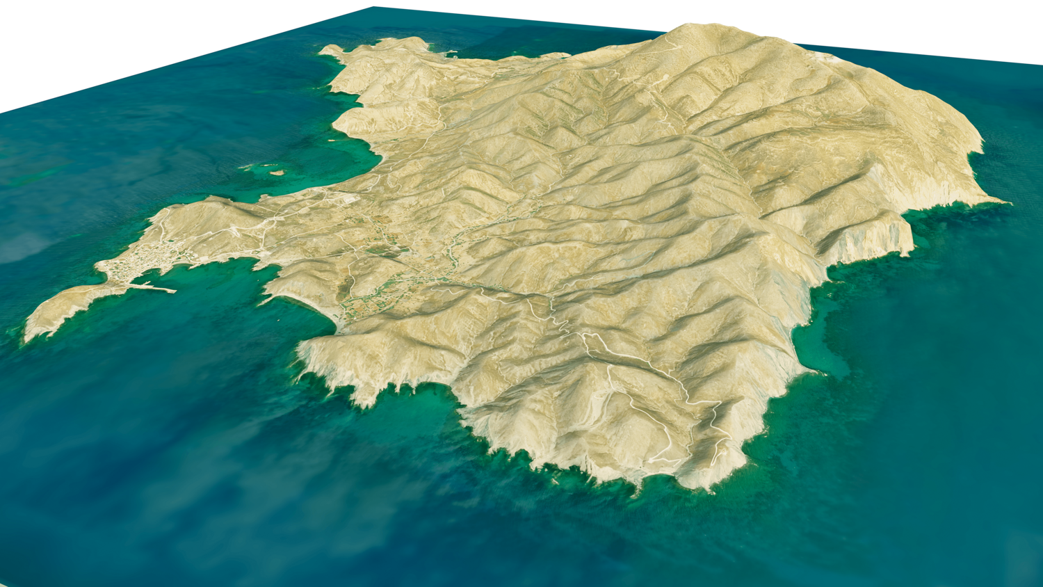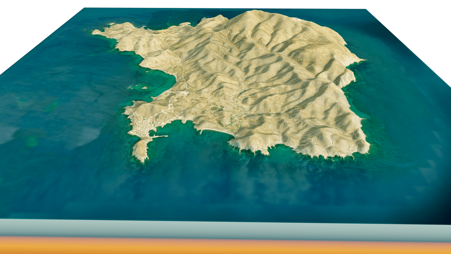 Psara Island 3D model terrain. 3d model island of Psara, Greece with its landscape of mountains, beaches and forests.