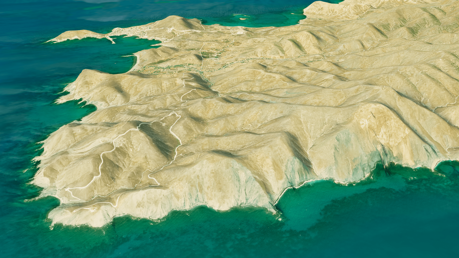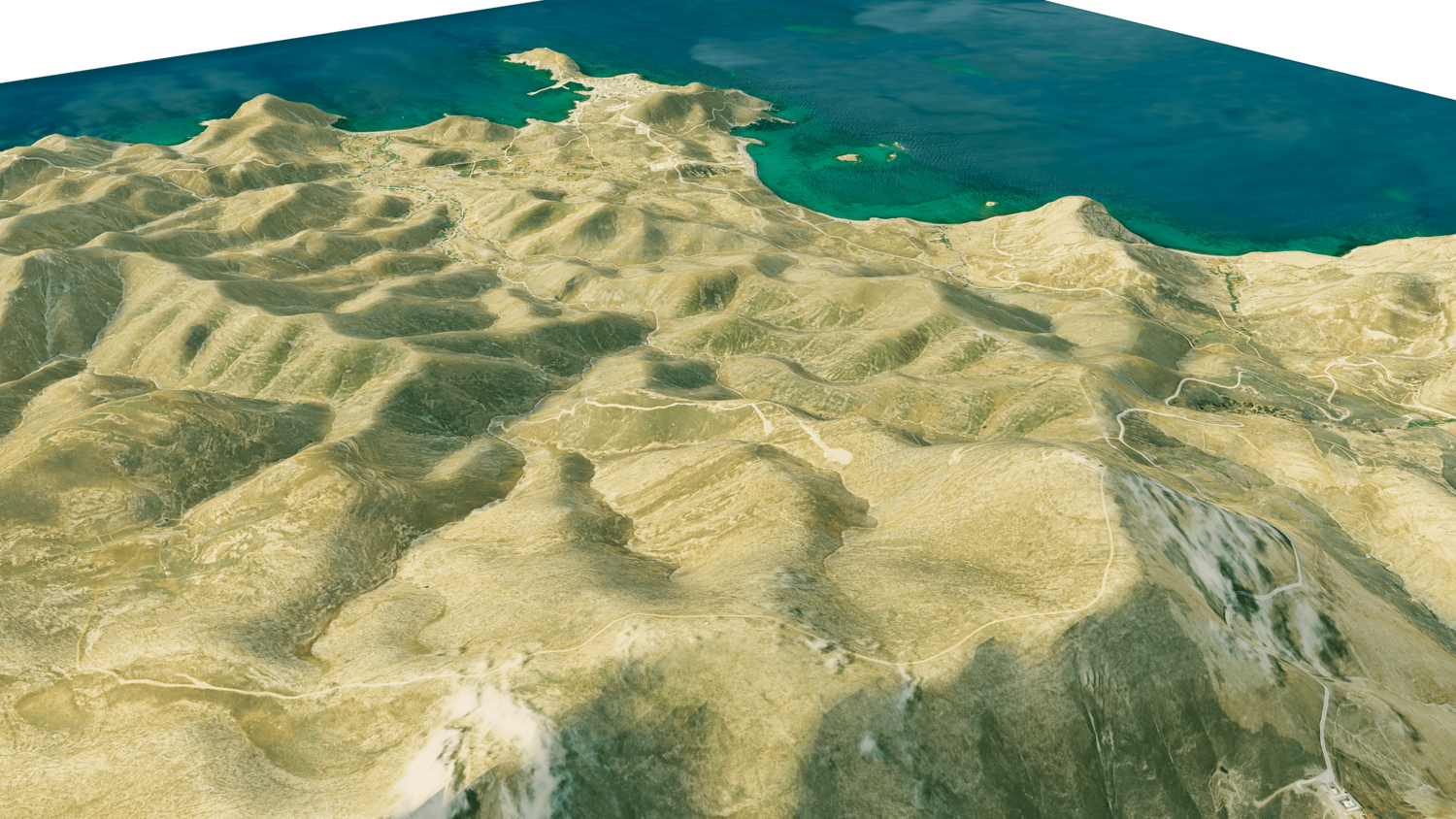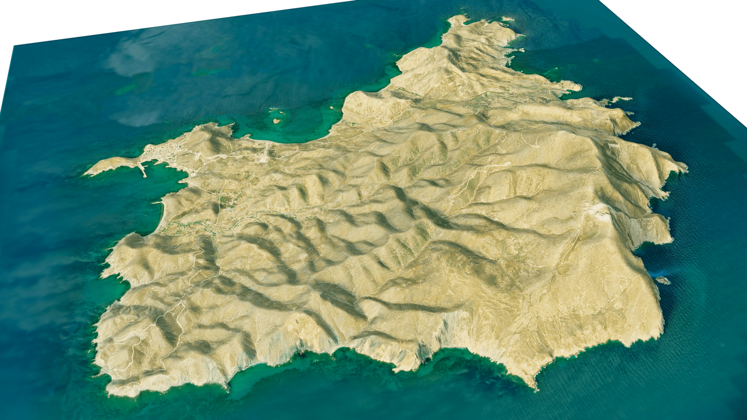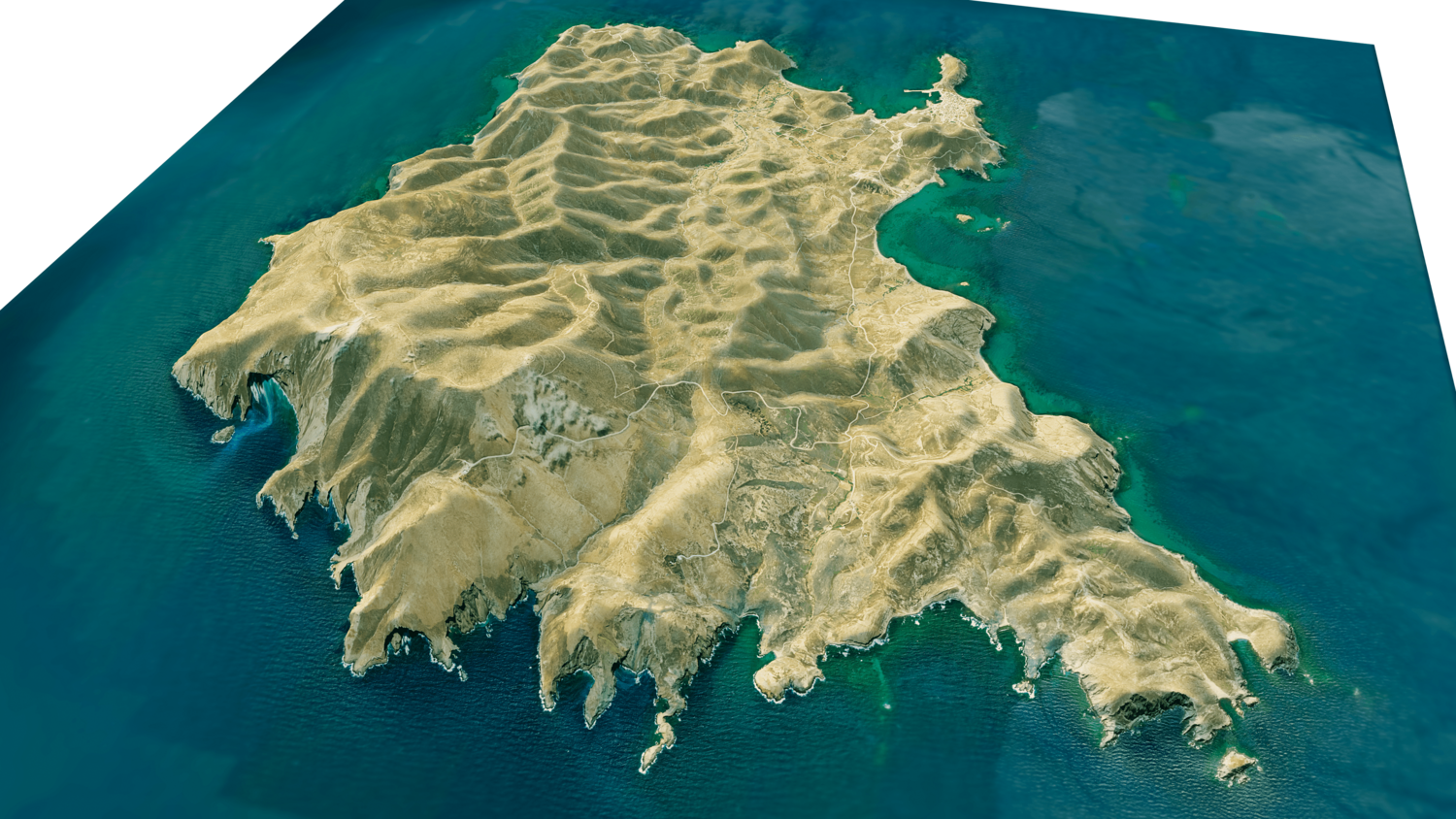 Psara Island 3D model terrain. 3d model island of Psara, Greece with its landscape of mountains, beaches and forests.