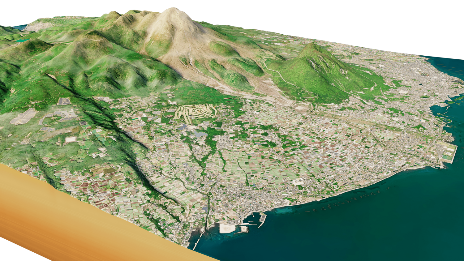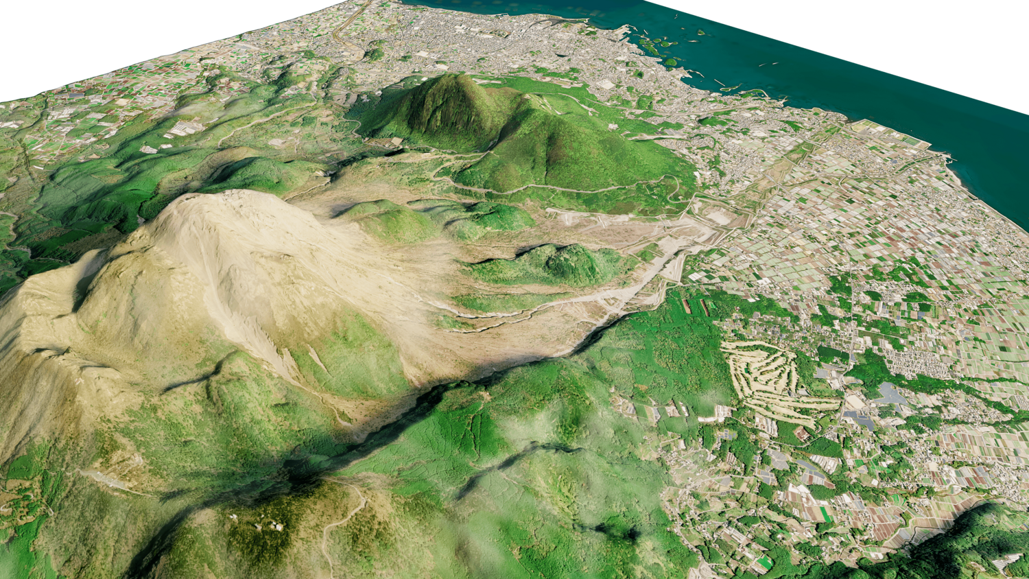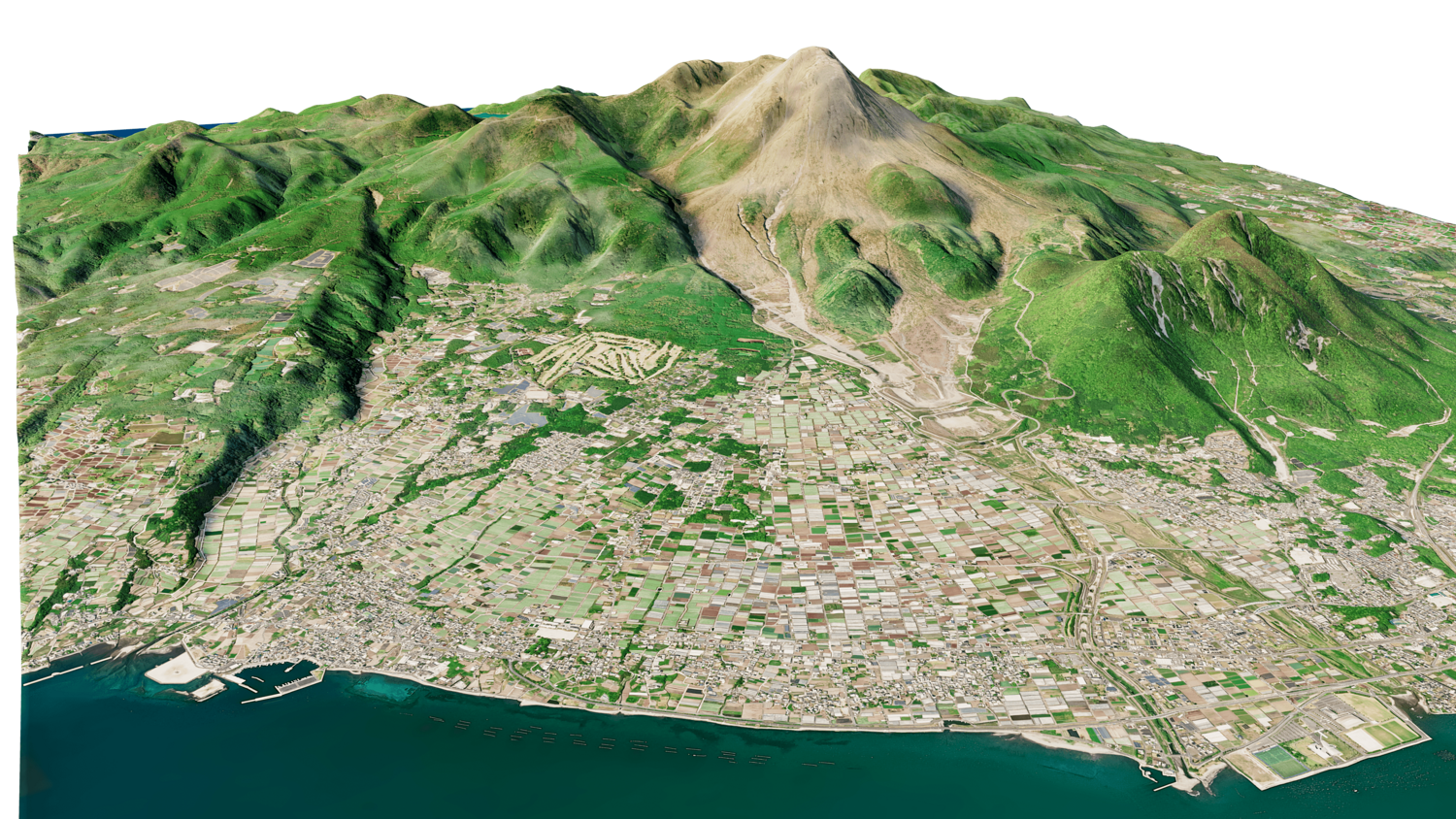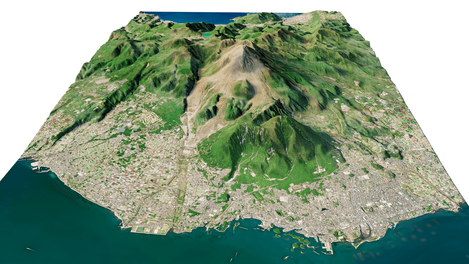 Mount Unzen, Japan 3D model terrain . 3d model landscape of the Unzen volcanic group