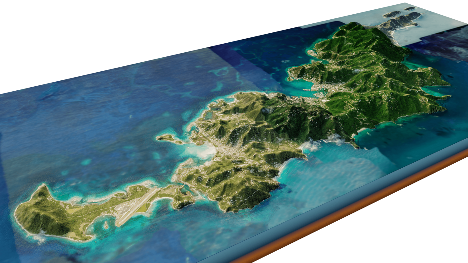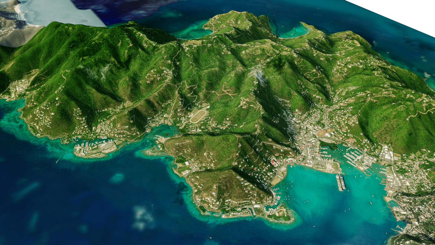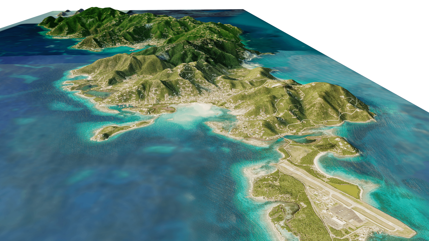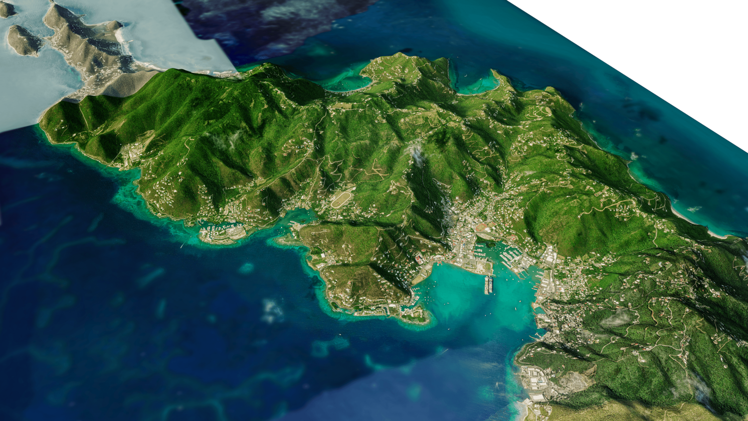 Tortola and Beef Island Full 3D model terrain. 3d model island of Tortola and with its landscape of mountains, beaches and forests.